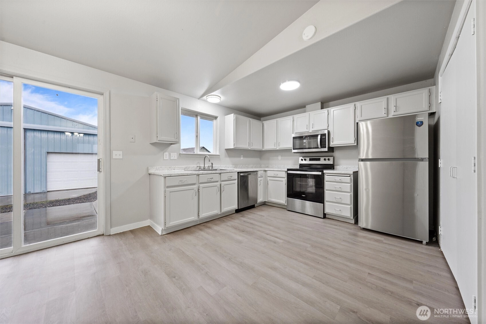 Discover this stunning newly remodeled 4-bedroom, 2-bathroom home featuring soaring vaulted ceilings that create an open, airy feel perfect for comfortable living! Prime location – just a few blocks from parks and schools! The star of the show? A MASSIVE 30x24 detached shop with a tall door, ideal for all your toys, projects, or workshop dreams! Plus, convenient RV parking on the side for your adventures.