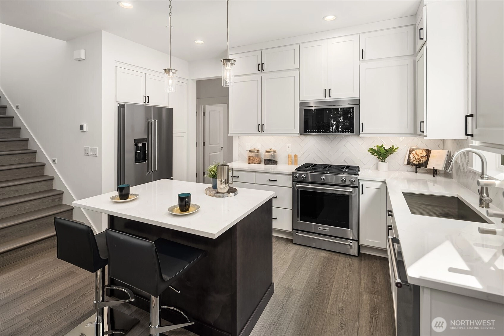Canopy Cottages by Toll Brothers is nestled in a serene, forested setting just minutes from downtown Kirkland. Enjoy green space views from the front and peaceful forest views behind this charming yet modern cottage. A spacious front porch invites you to relax and take in the tranquil surroundings. Inside, the open-concept kitchen flows seamlessly into the cozy living room and an adjacent flex room with French doors—ideal as a 3rd bedroom, office, or dining room. A full appliance package is included. The impressive primary bedroom retreat features vaulted ceilings and a well-appointed bath with separate vanities. A beautiful clubhouse completes this unique community. Enjoy a convenient lock-and-leave lifestyle close to all major centers.