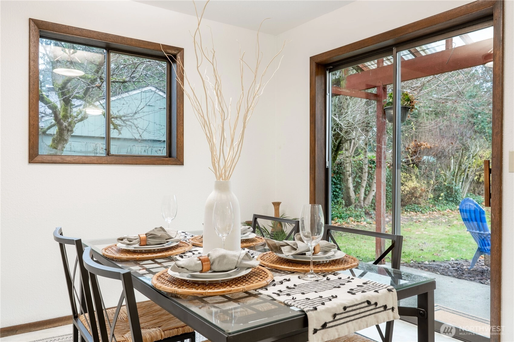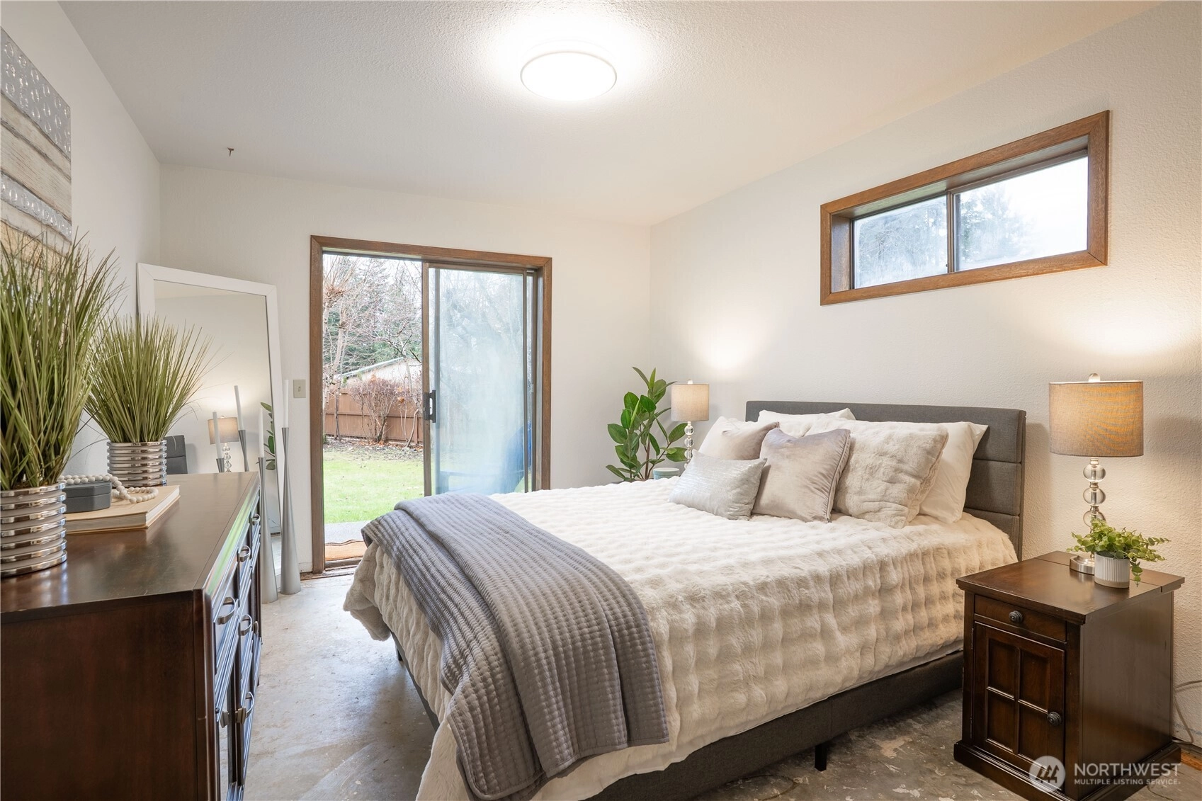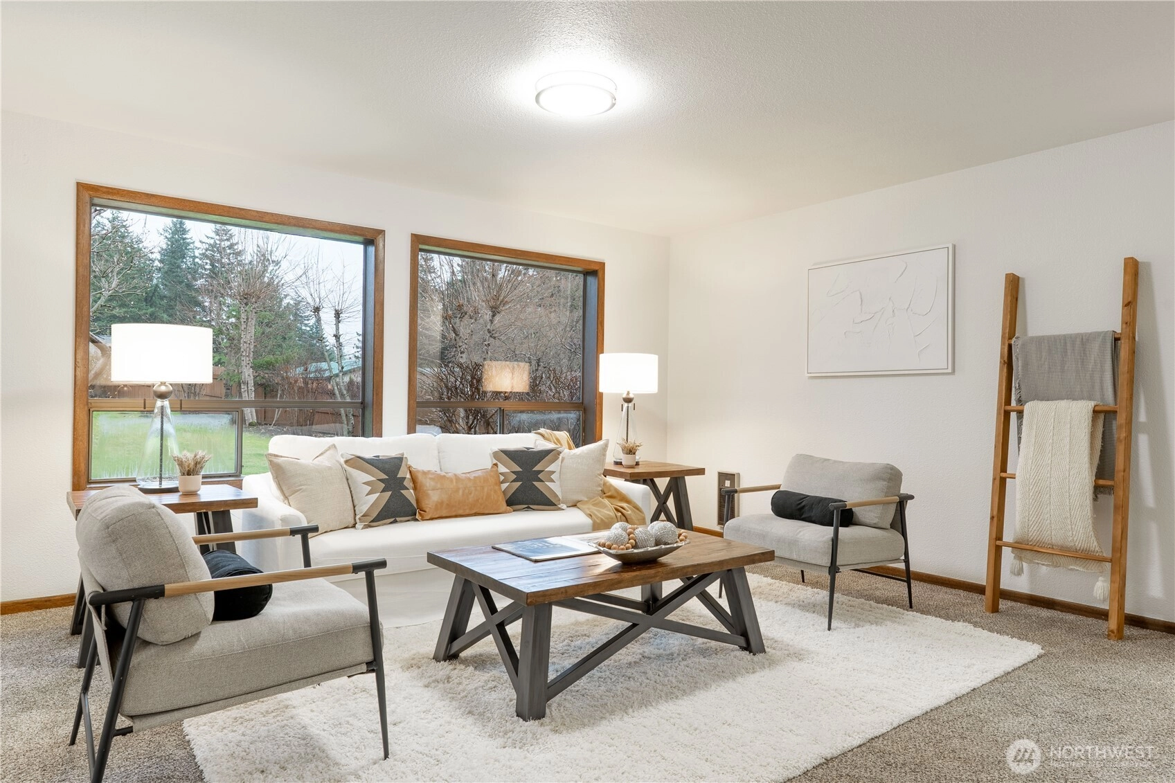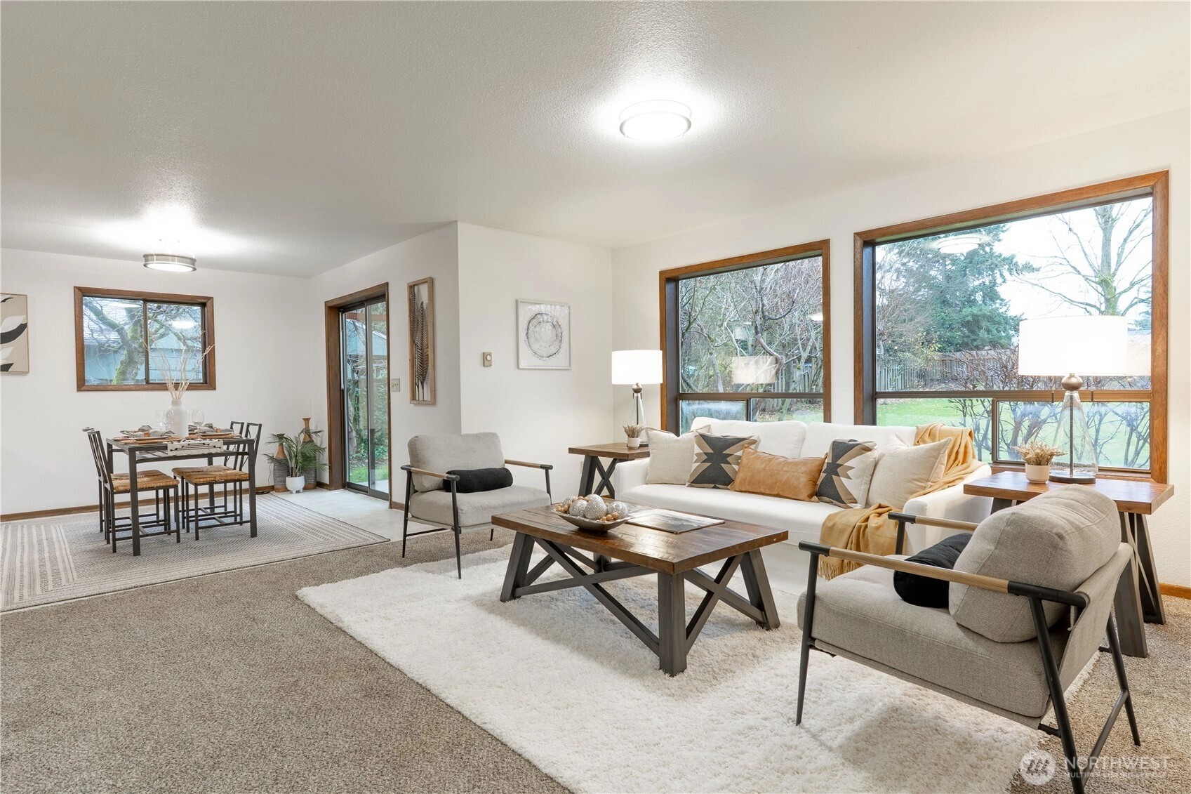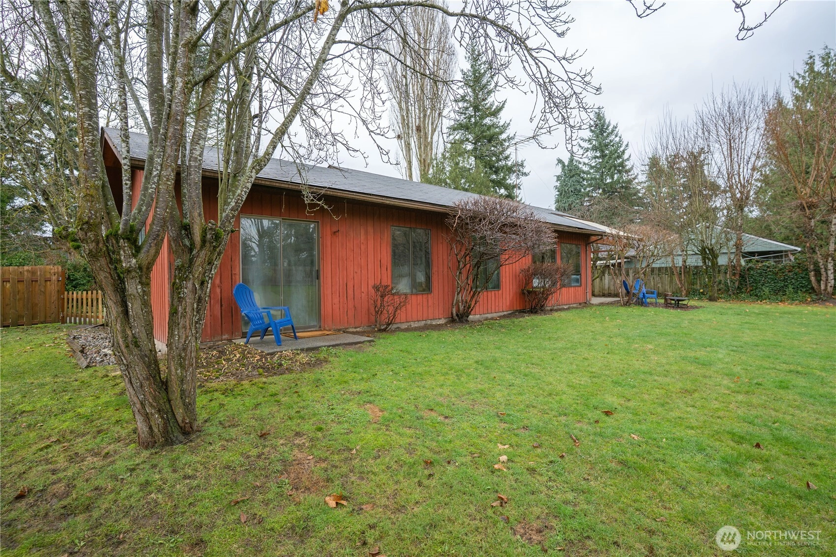 Nestled at the end of a cul-de-sac, this inviting one-level/no steps late Mi-Century Modern home welcomes you with a south-facing larger, fully fenced backyard. 3 BR, .75 BA home offers comfort, privacy, & potential for customization. Built in 1982 on a .35-acre lot, the property features 1,257 SF of living space & a beautiful yard. New interior paint, lighting, & flooring. Outdoor space has a fireplace & mature fruit trees - pear, cherry & apple. Home has never flooded. Roof is only 10 years old w/ one layer. Located one mile from Riverside Park, easy access to a playground, picnic areas, & the Nooksack River. Small neighborhood park w/ playground additionally. Everson Elementary School across the street from the Aspen Drive entry.