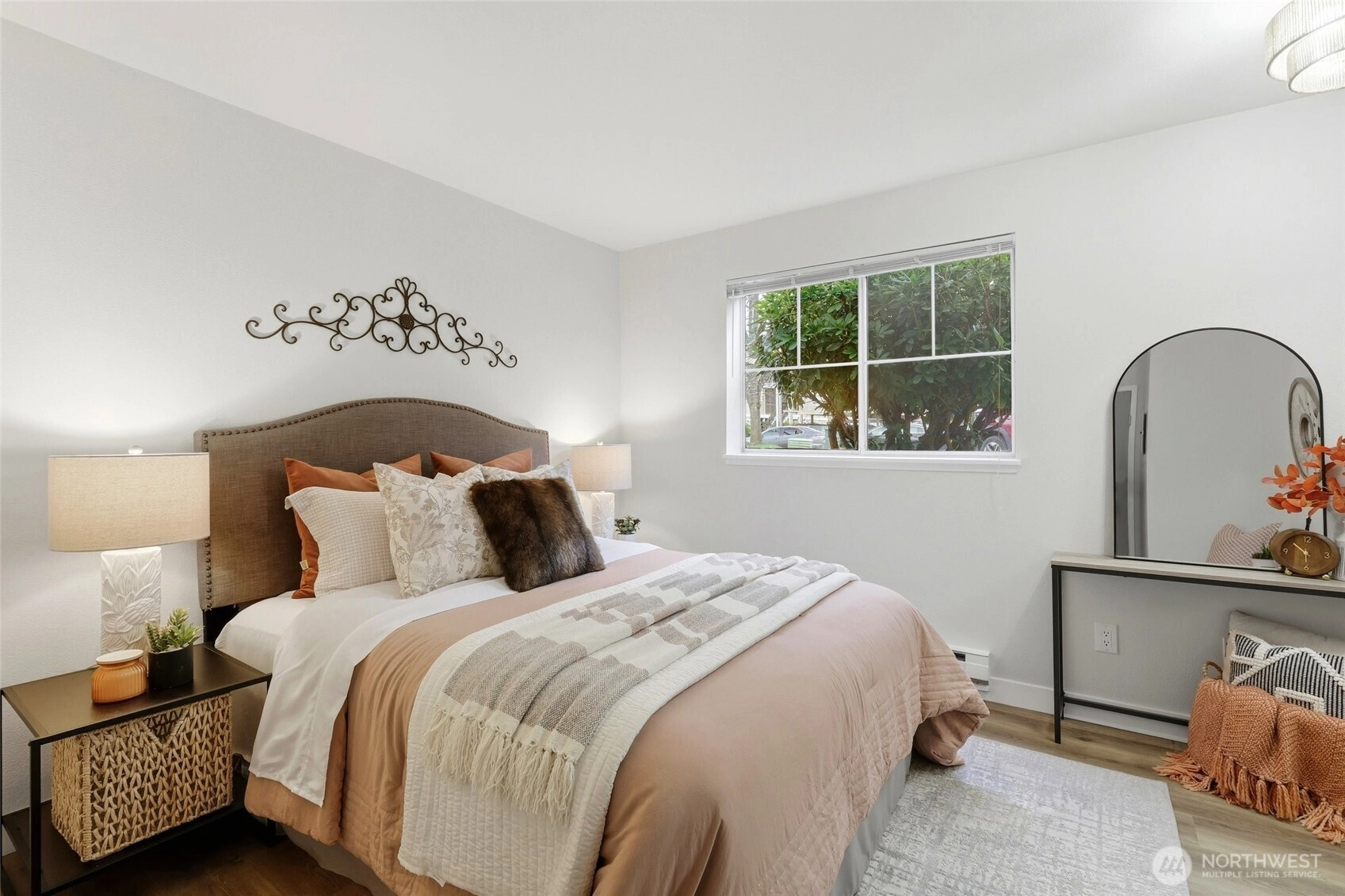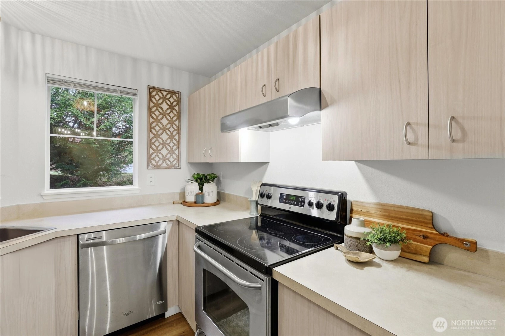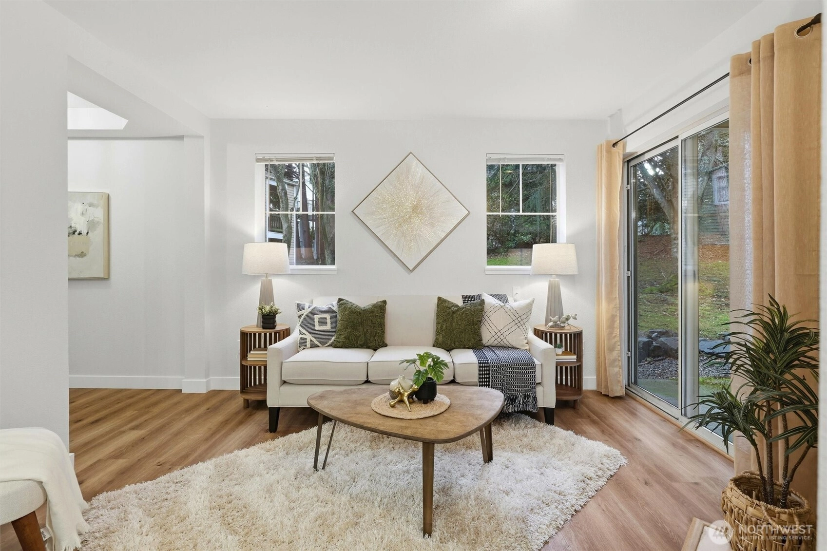 Start the New Year in style with this beautifully updated, end-unit condo! Enjoy brand-new LVP flooring throughout (no carpet), fresh paint, and designer lighting – it’s truly move-in ready! The inviting living room features a cozy wood-burning fireplace, sliding doors to a covered patio, and serene views of lush outdoor trees. Your bright kitchen offers stainless steel appliances, ample counter space, and flows seamlessly into the dining area. Down the hall, discover a full-size laundry area, storage closet, spacious bedroom, and bathroom. Additional perks include two parking spaces, an outdoor pool, and a prime location near shopping, dining, and Mukilteo Beach Park. So don't wait! Come experience the charm of the Hamptons today!