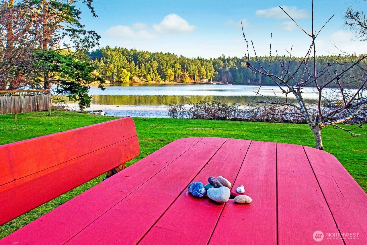 Peaceful waterfront retreat on Mitchell Bay with no-bank access for clamming, crabbing, or launching your kayak. Picture windows frame enchanting bay views, while a wood-burning stove adds cozy charm. The home offers both a living room and family room, plus a dining area with easy flow to the deck and patio. The primary suite features French doors opening to a private deck and an updated en-suite bath with oversized shower. Additional updates include new flooring and refreshed main bath. Relax in the new hot tub after a day of hiking, biking, or kayaking. Nestled in a quiet neighborhood, yet minutes to Roche Harbor Resort, marina, spa, Mount Young trails, and British camp National Park.