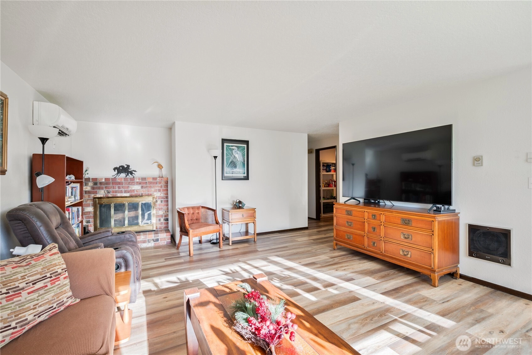 Beautifully updated home in a desirable area of Longview! Pristine home boasting 3 bdrms, 2 bthrms, impressive covered entry porch with double doors and inviting foyer, large frml living rm w/cozy brick fireplace, frml dining rm, spacious kitchen w/eating area and slider to private covered patio, primary bdrm w/ 3/4 bthrm, large utility rm w/door to patio, luxury vinyl plank flooring throughout, newer interior and exterior paint, 2 newer Mitsubishi ductless heat pumps, oversized 2 car attached garage w/opener, newer 30 year architectural roof, private fully fenced back yard and a beautifully landscaped front yard with an azalea hedge & side fencing. The home is conveniently located near shopping, restaurants and down town Longview.