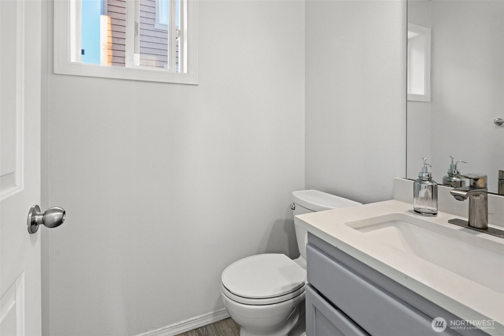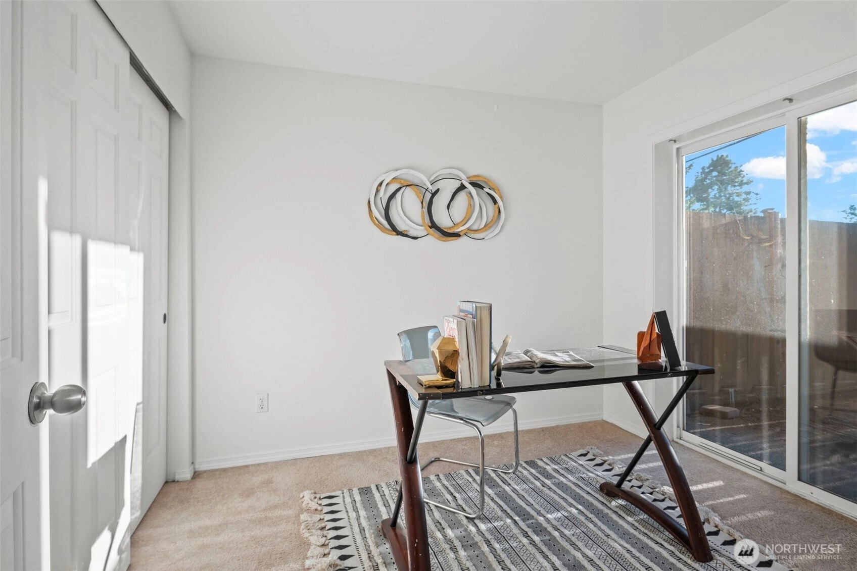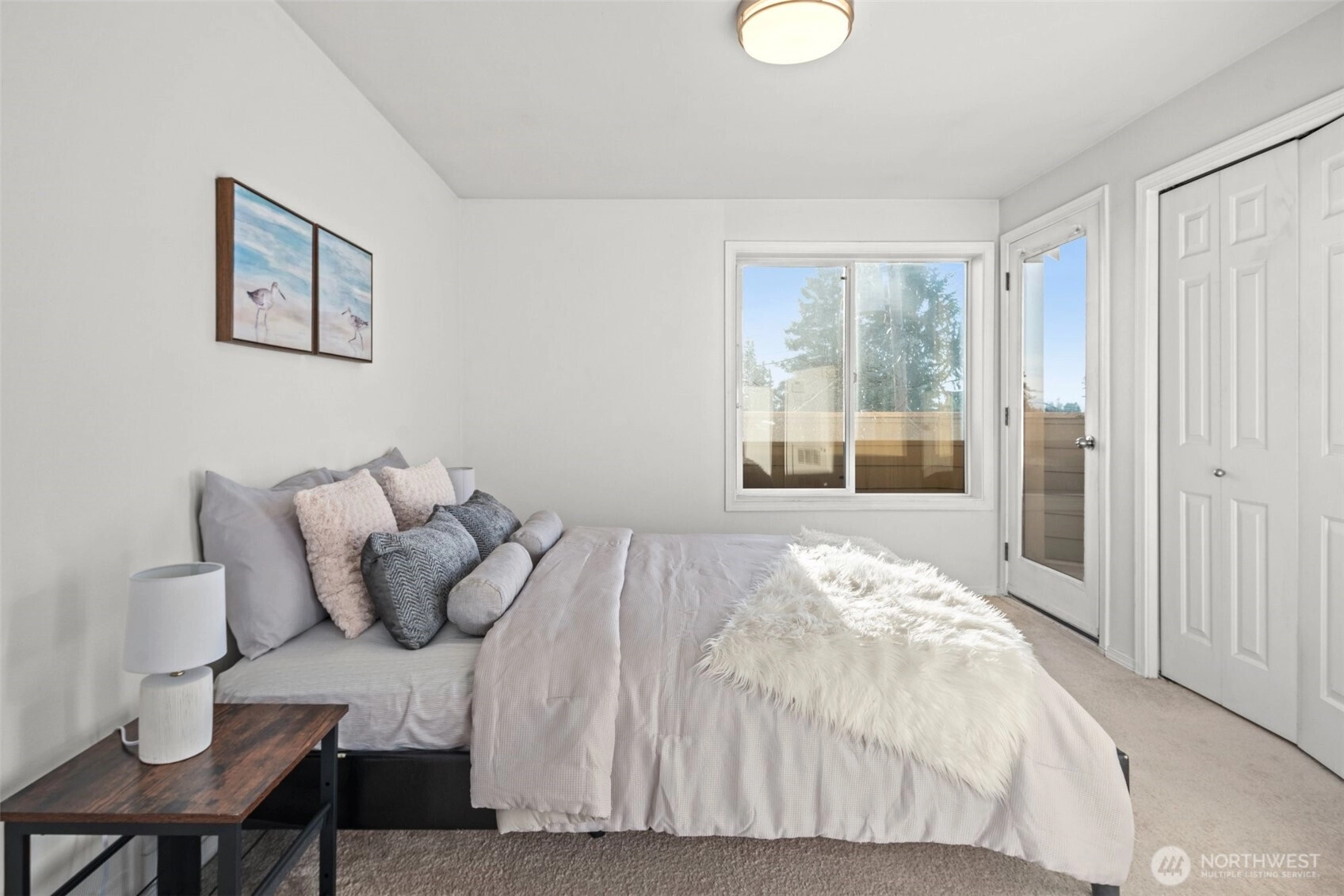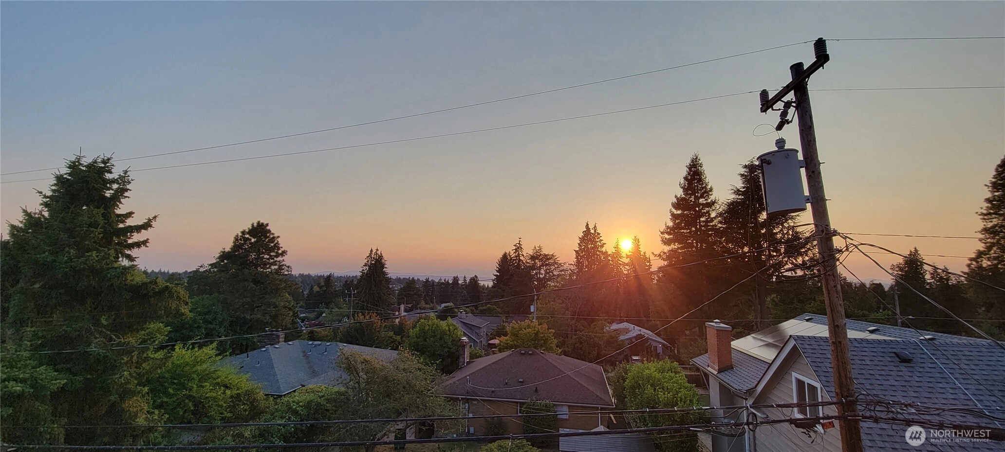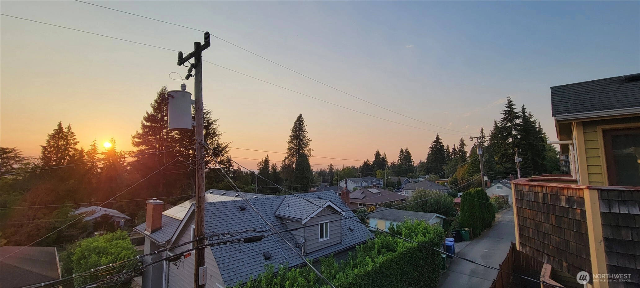 NEW PRICE, NEEDS A LITTLE TLC! Zero lot line end unit townhome (not a condo and no HOA) with an attached garage. We're tucked in, not right on Greenwood. Top floor views of Puget Sound and the Olympic Mountains. Modern kitchen with white quartz countertops, grey cabinets, and newer stainless appliances. All bathrooms have custom quartz vanities. Bedroom and ensuite bathroom on the ground floor with slider to the private fenced back patio. Main floor consists of living, dining, kitchen, guest bathroom and deck. Top floor consists of 2 bedrooms, 1 bathroom, newer stackable washer/dryer. Garage can be used for parking, storage, or as a flex space. Very Walkable with Walkscore of 72. Easy access to shops, restaurants and parks. NO HOA dues.