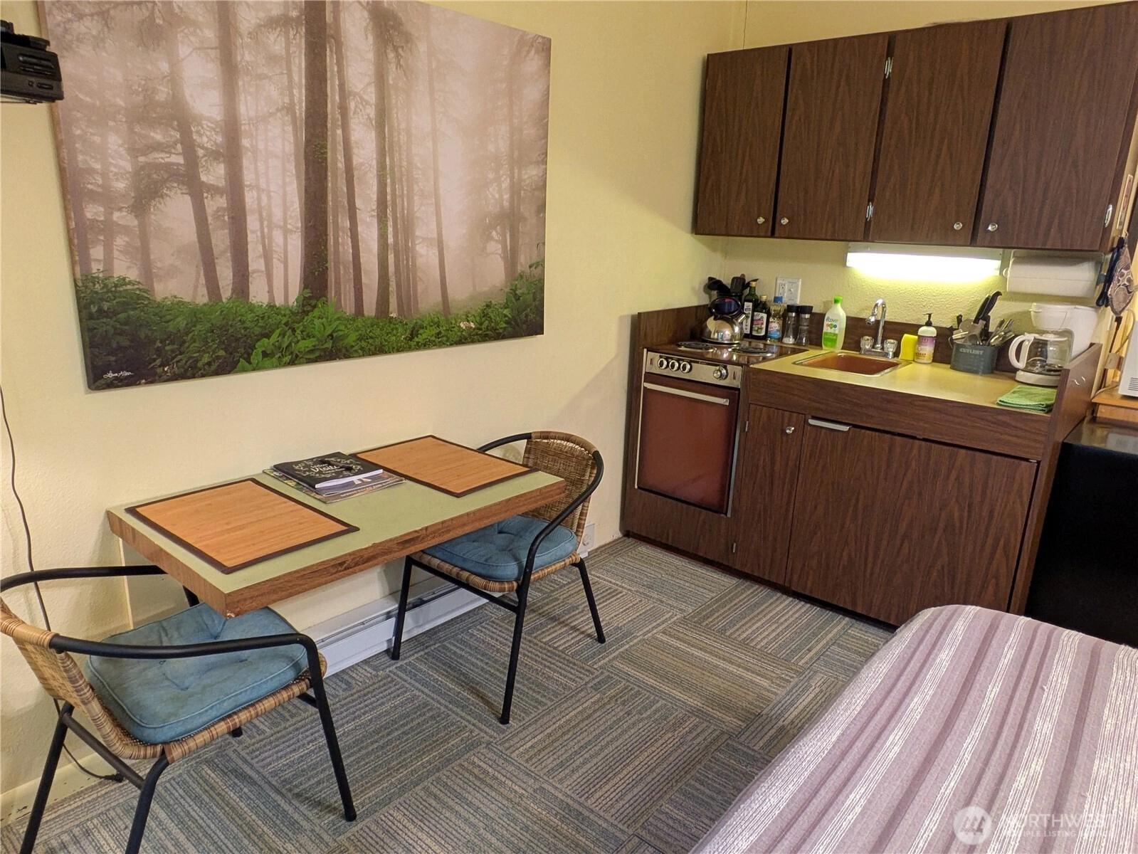 Dreaming of a get away in the mountains? Your dream can come true with this cozy and affordable, studio condo at the edge of the Mount Baker-Snoqualimie Forest. It's a popular short-term rental with world class hiking and mountaineering, Mount Baker Ski area, white water rafting, camping and more, right outside the door! It's less than an hour to Bellingham WA and 35 minutes to the Canadian border. This cute, funky, fully furnished retreat is part of a well run condo association. It's a first floor unit over looking a little woodland area and tucked away in a quiet spot in the building. It includes a big storage locker and the building boasts a huge, game/party room and a large equipment room with workbench to store and repair your gear.