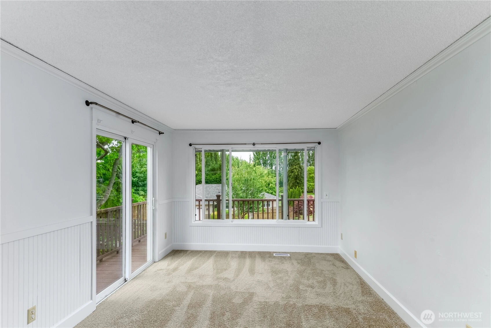 MOTIVATED SELLER! Beautiful move-in ready Sunland home overlooking the 12th fairway. Cedar paneled living room with hardwood flooring, fireplace and vaulted ceilings. Updated kitchen and formal dining room. Newly updated bathrooms with custom tile. Private sunroom with Southern exposure extends the living space. New interior paint and flooring. Extra room in basement for office, Costco storage, craft room or whatever works best for you. Large wrap around deck for entertaining. Mature landscaping. Sunland property owners have access to tennis and pickle ball courts, swimming pool/spa, greenspaces/walking trails, as well as gathering places and beach cabana. Sunland Golf Club offers both social and golf memberships for an additional fee.