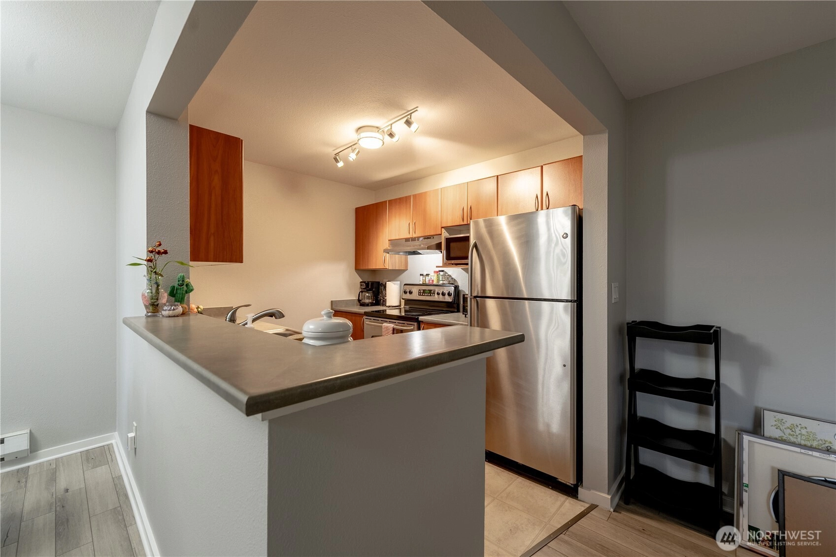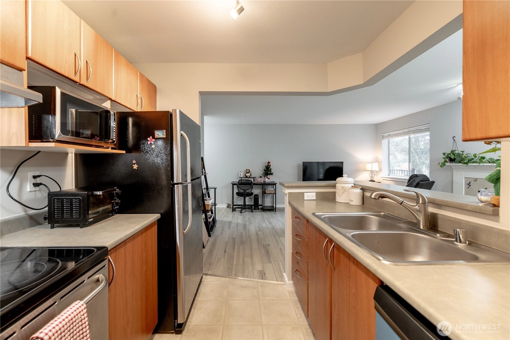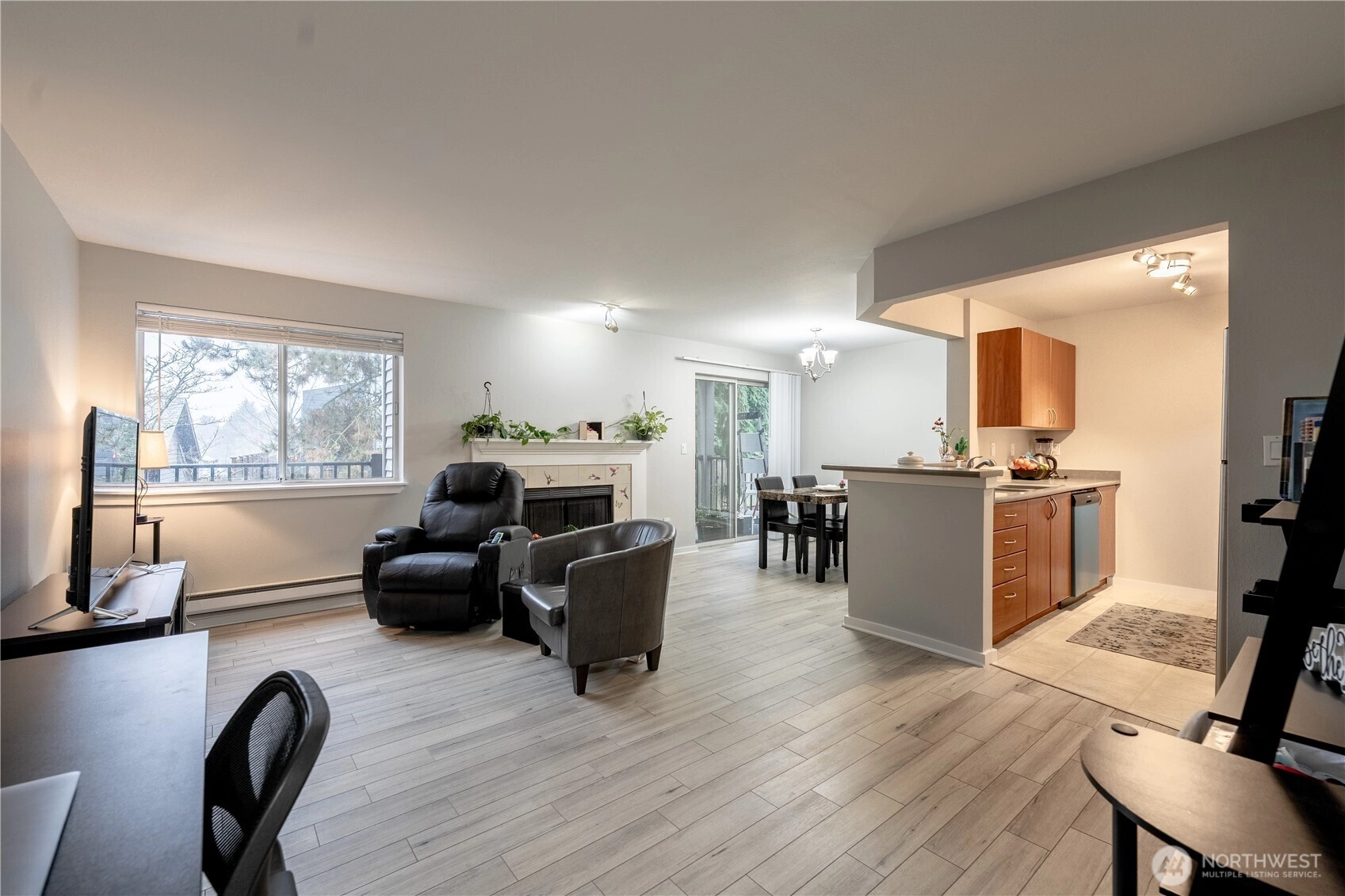 Cash Out! Welcome to this charming 1BR, 1BA condo, offering a generous 740 sqft of delightful living space in the heart of Lynnwood. Freshly updated w/new flooring & paint, this inviting home features an elegant dining & living room, complemented by a cozy fireplace. The primary BR promises tranquility, while a full BA ensures relaxation. Step outside to a private back patio—perfect for enjoying morning coffee. Modern conveniences include a new dishwasher, washer & dryer. Ideally situated near shopping, freeway access, & Highway 99, this condo harmonizes comfort & convenience for an enriching lifestyle.