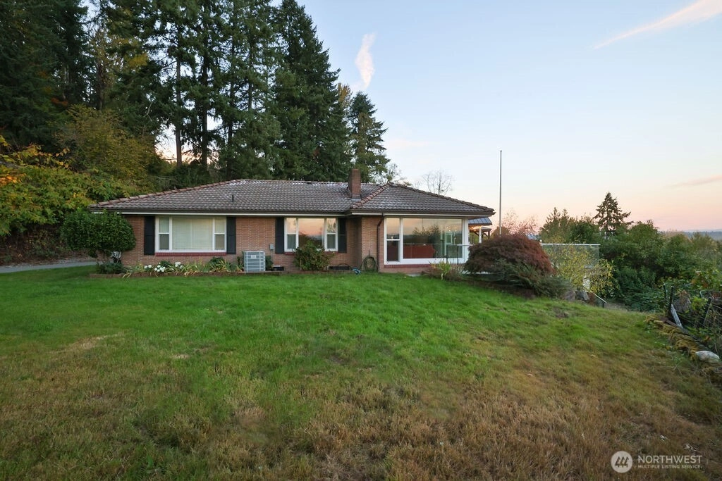 Escape to a private, mid-century oasis on a secluded road and enjoy unobstructed, breathtaking Mt. Rainier and city views from the wall of windows in this unique charmer. Inside, find gleaming hardwood floors, an open plan, and a spacious kitchen with a farm sink. The lower level offers a large living area/guest suite with a fireplace. Tons of Storage space and work area. Peace of mind is paramount: This beauty features brand-new electrical and HVAC systems! The ultimate outdoor entertainer's paradise awaits: a glass-railed Trex deck, outdoor living area, greenhouse, and Gardener's dream! RV parking! Lots of character, views, and big ticket updates. True Paradise in the PNW.