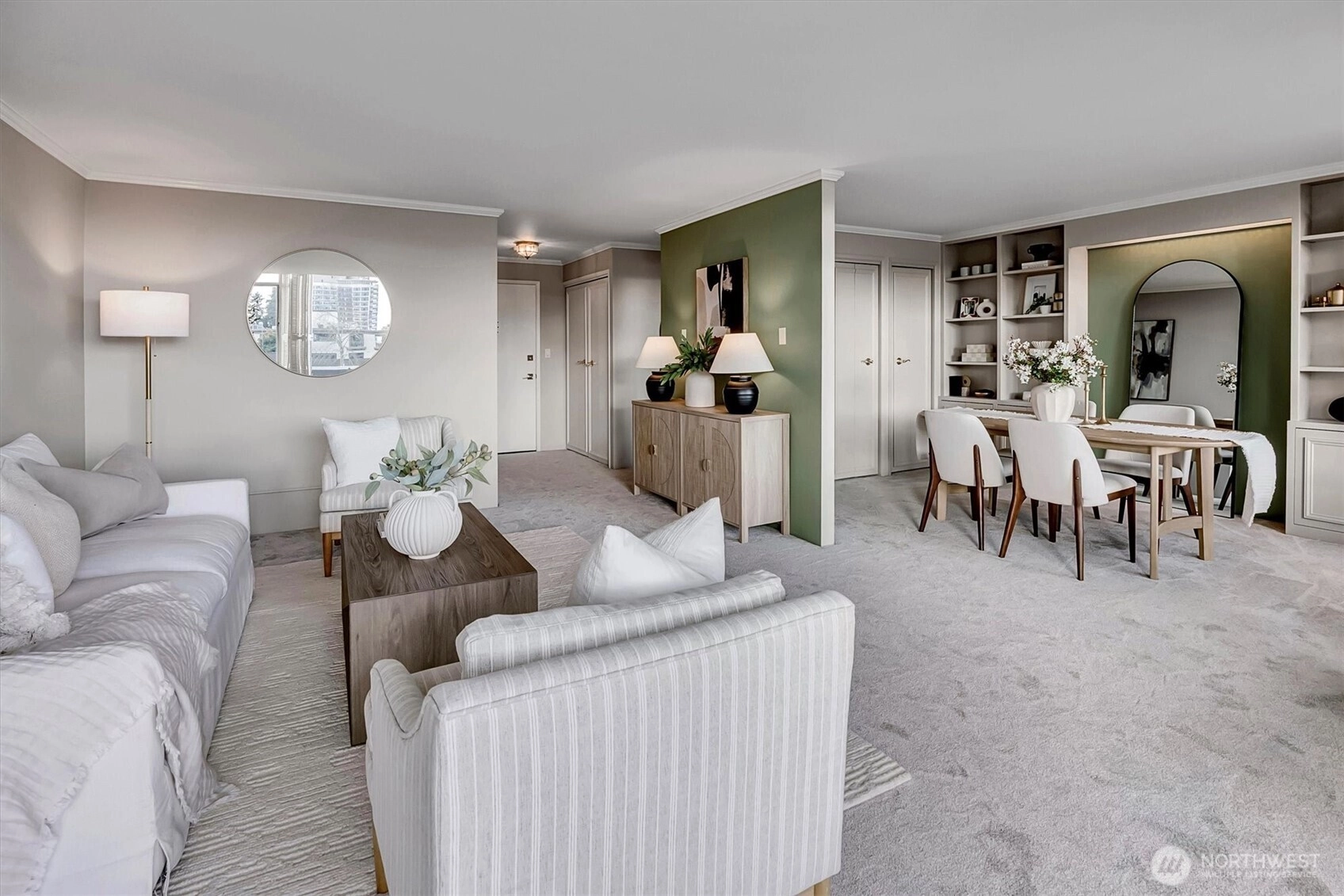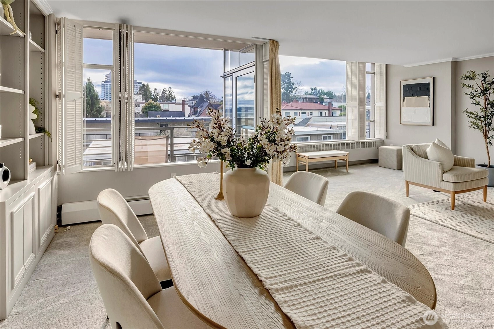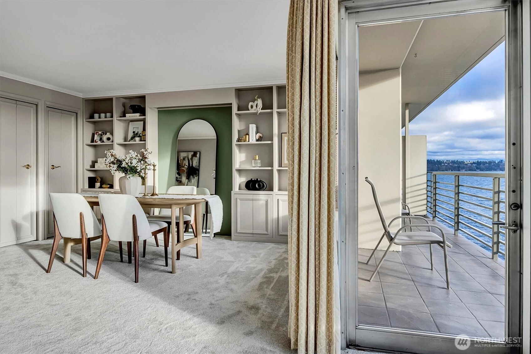 Seldom available, this elegant light and spacious one bedroom plus den waterfront condominium has an impressive view south towards Mt. Rainier. In a security building this immaculate newly painted and newly carpeted property also has a large outdoor covered deck perfect for indoor and outdoor entertaining. In move in condition, here you enjoy a prime location within walking distance to Madison Park dining and shopping. Truly a great lifestyle!