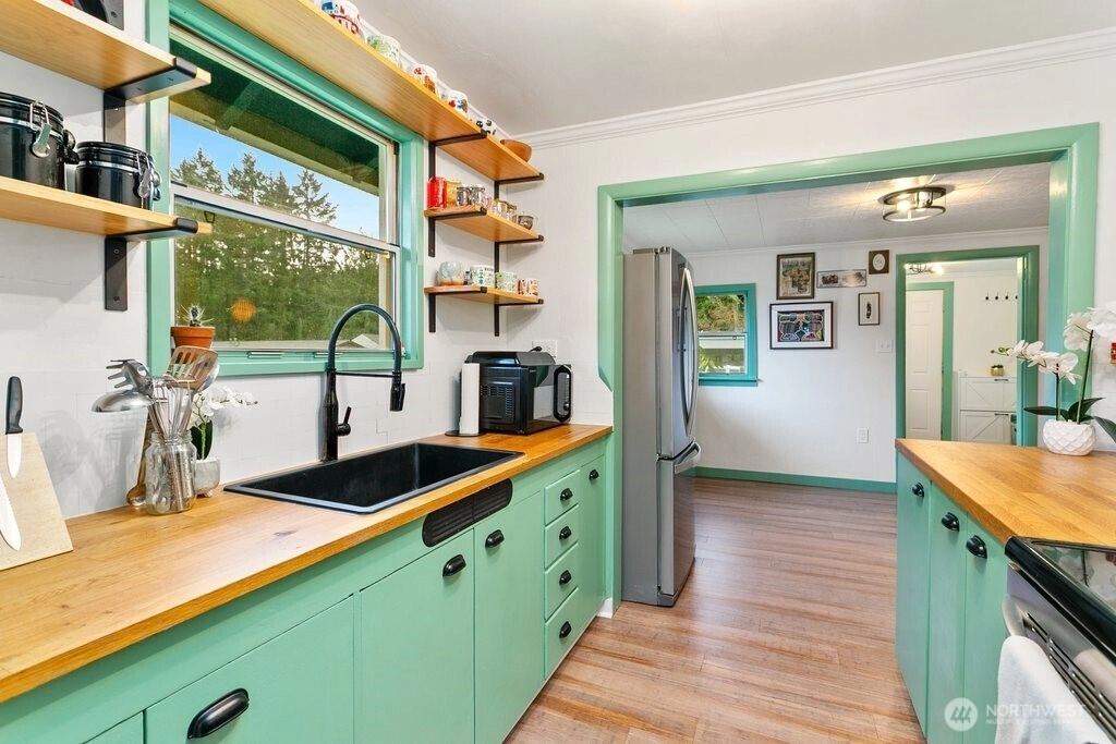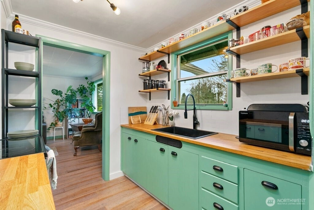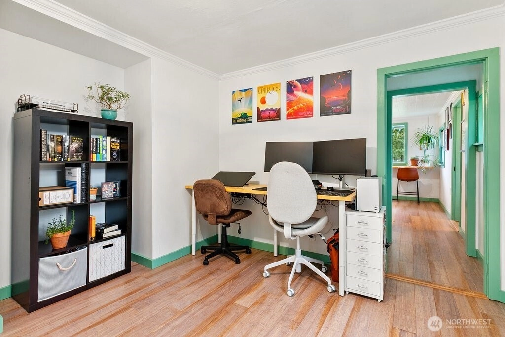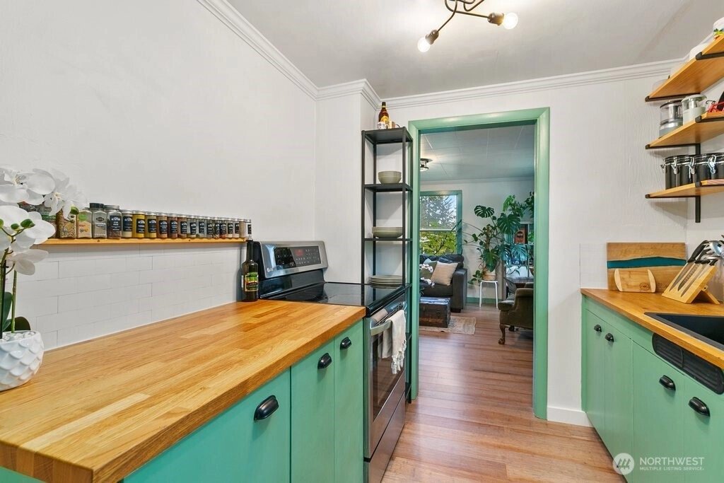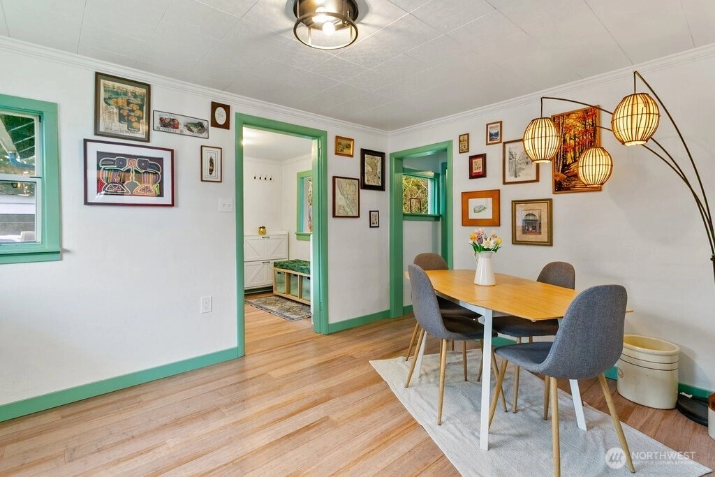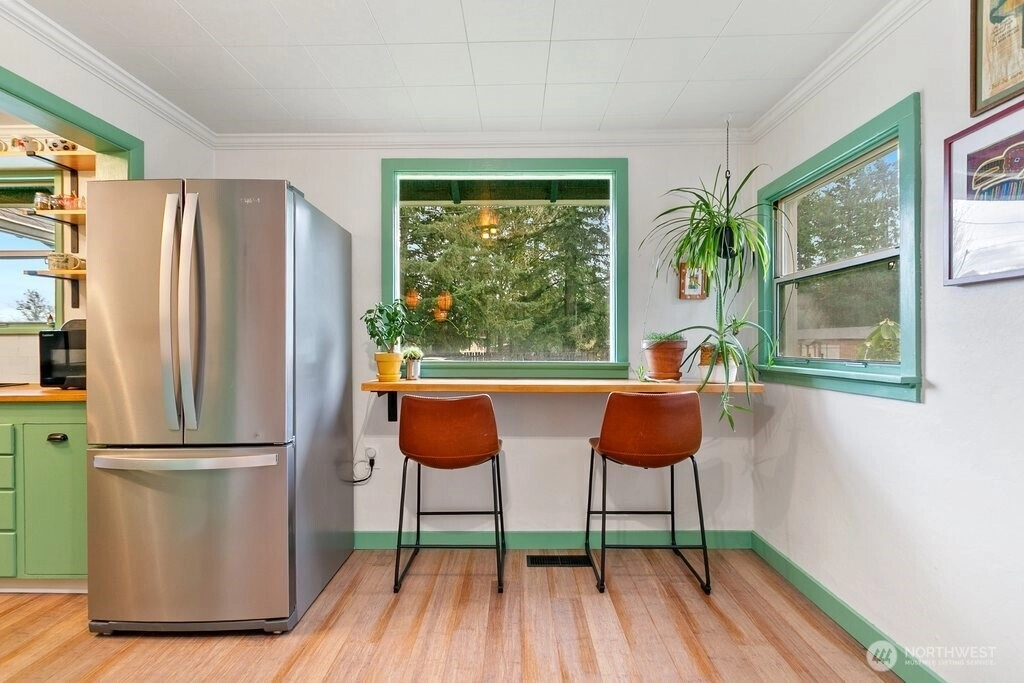 Welcoming your 2026 new year with a fully updated move-in ready home in a quiet neighborhood! Exquisitely updated, new floors throughout, a fully remodeled upstairs, fully updated kitchen and bathroom, an art room, new trims, new paint, all exquisitely chosen ready for your enjoyment. Bright big windows all around. Enjoy daily breakfast in the bar dining area or in the dining room. Outdoor features include a fully fenced front yard, partially in the backyard with apple, pear, and plum trees, a shed, and a carport. Home is also adjacent to the greenspace in the backyard and just minutes to Pendergast Park and all the pacific northwest amenities and adventures!
