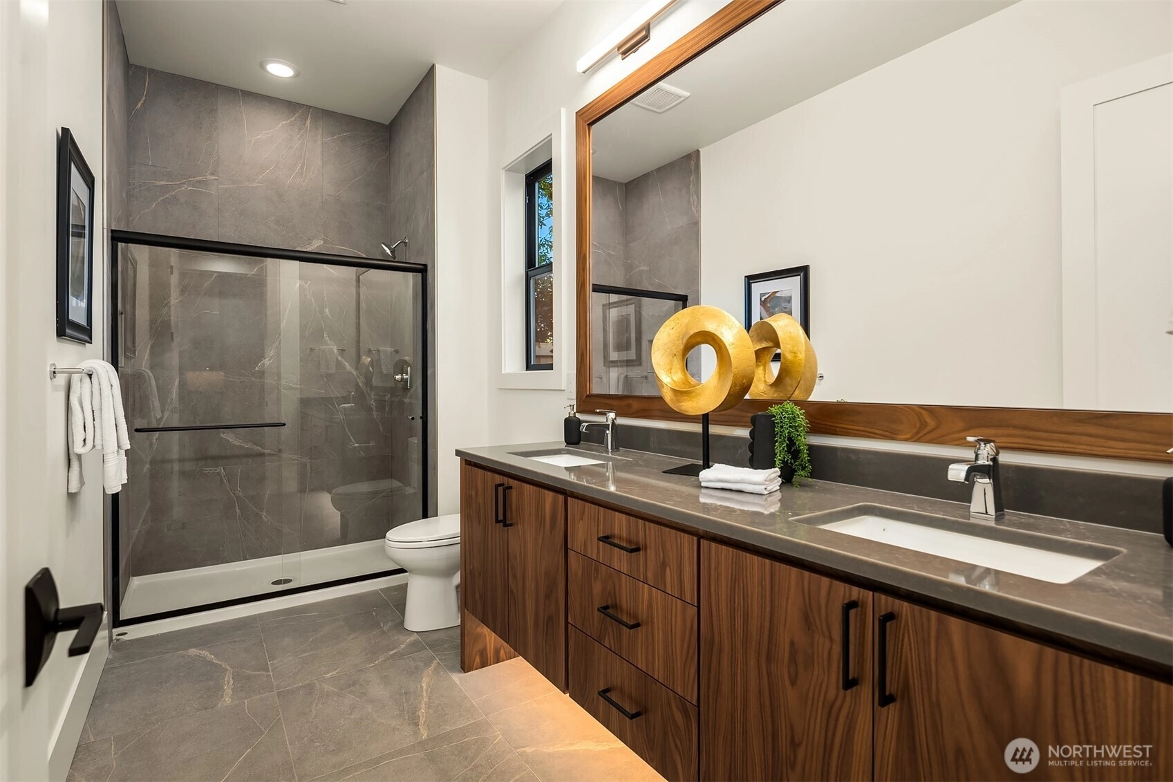 MN Custom Homes releases a contemporary design in the convenient Lake Hills neighborhood. Spacious, two story great room. Chef's kitchen with high-end appliances and entertaining island with waterfall edge. Secluded upstairs bonus room & covered outdoor living area are ideal for entertaining fun. Primary suite with heated bathroom floors & stunning 5-piece bath. Private main floor en suite. Dedicated work from home office. Abundant natural light. Private backyard. Smart Home and green features throughout, including solar panels. Nationally ranked Bellevue Schools. Located just minutes from MSFT, shopping, and parks.