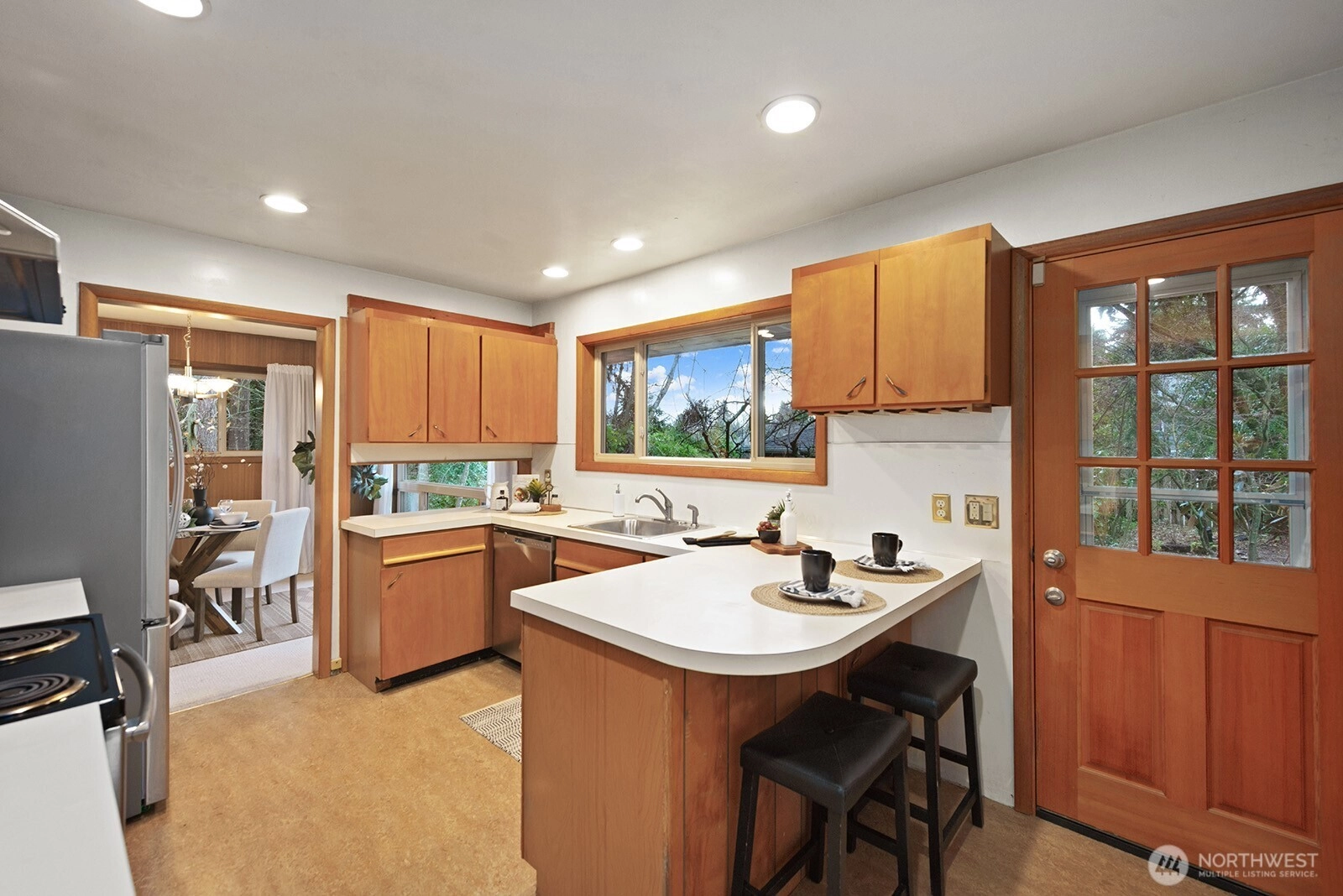 Offered for the first time since 1951, this charming mid-century home invites you to enjoy timeless design and a peaceful setting in Seattle’s Haller Lake neighborhood. With 5 bedrooms and 1¾ baths, the one-level layout with a daylight basement offers comfortable, flexible living. Stunning original mahogany paneling enriches the living and dining rooms, while lush landscaping and rare specimen plants create a private, garden-like retreat. Basement ceiling height is tall with potential for an ADU. Enjoy easy access to I-5, Hwy 99, and the new light rail stations at 130th and 145th. Close to Lakeside schools and the newly built James Baldwin Elementary. The adjacent 7200 sq. ft. vacant lot (MLS 2451343) adds opportunity for development.