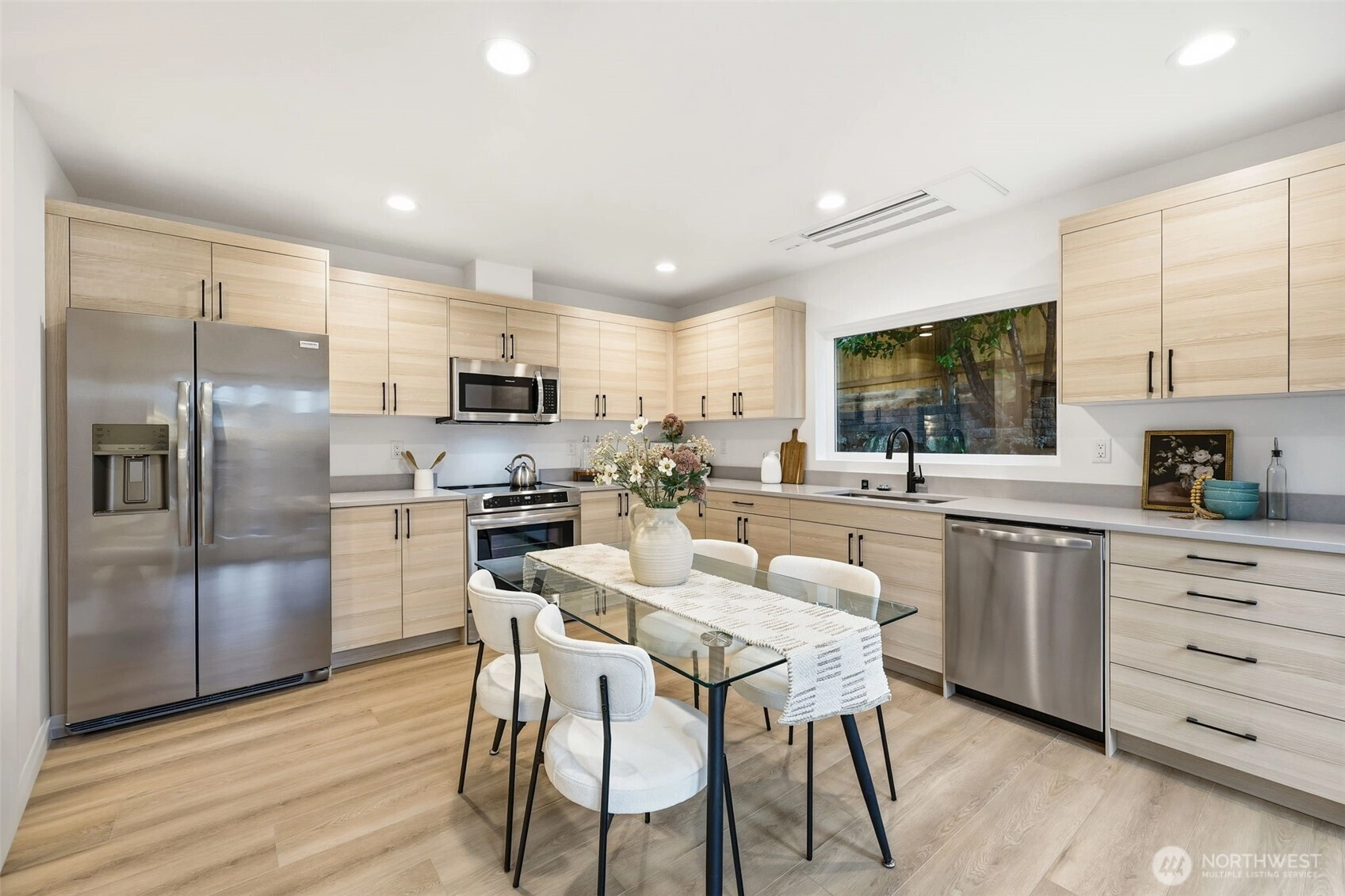Brand new construction in a quiet, secluded Seattle subdivision in the Broadview neighborhood. This 2 bed, 2 bath home offers efficient modern living with rare privacy and usable outdoor space. Features include a large driveway, private patio, and uncommon Seattle yard area. Spacious kitchen with ample cabinetry and counter space opens to a large living room ideal for daily living and entertaining. Built to 4-Star Built Green standards for energy efficiency and long-term savings. Open, functional floor plan with contemporary finishes throughout. Seller may offer a credit toward closing costs or interest rate buy-down when using a preferred lender.