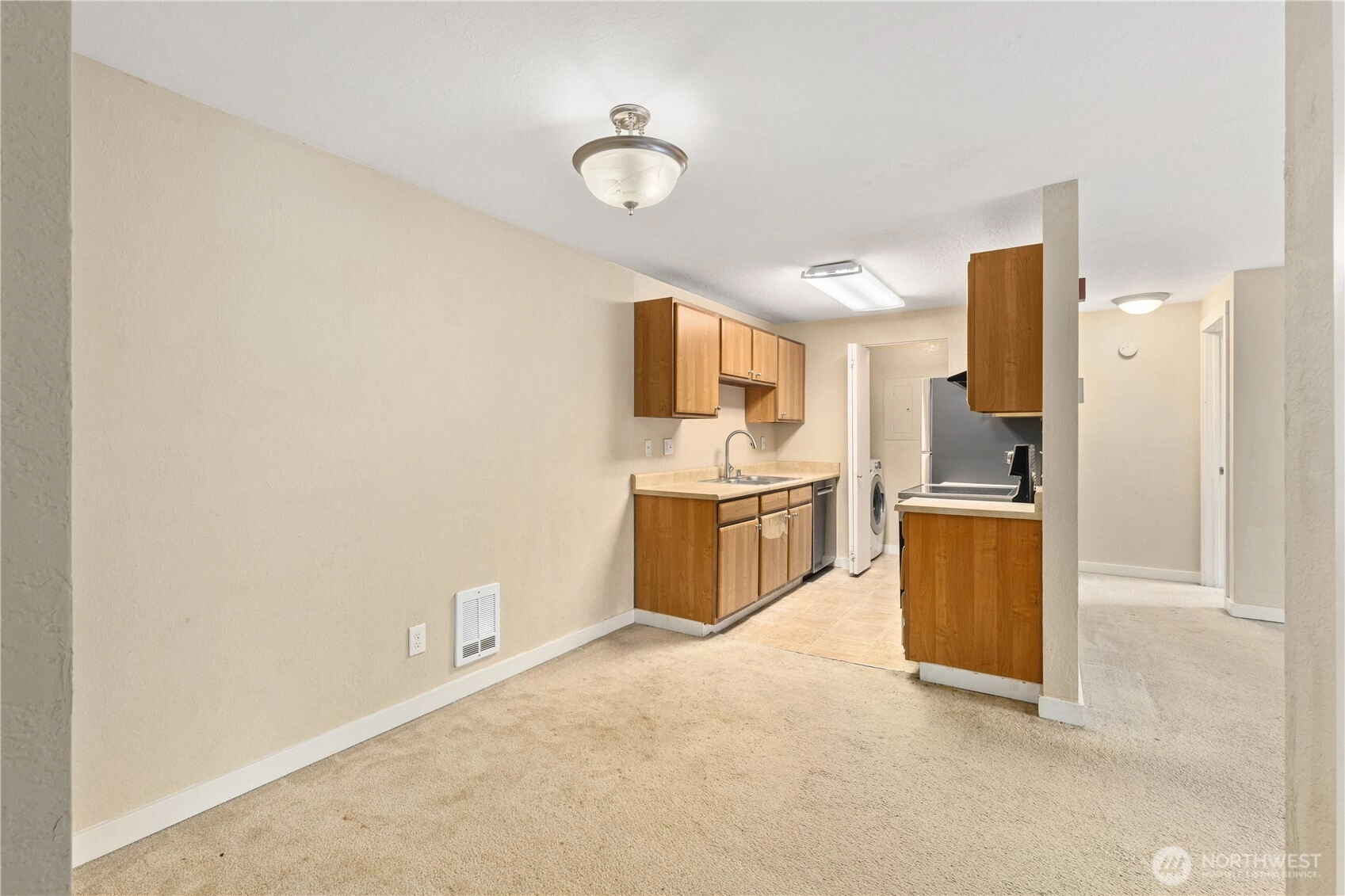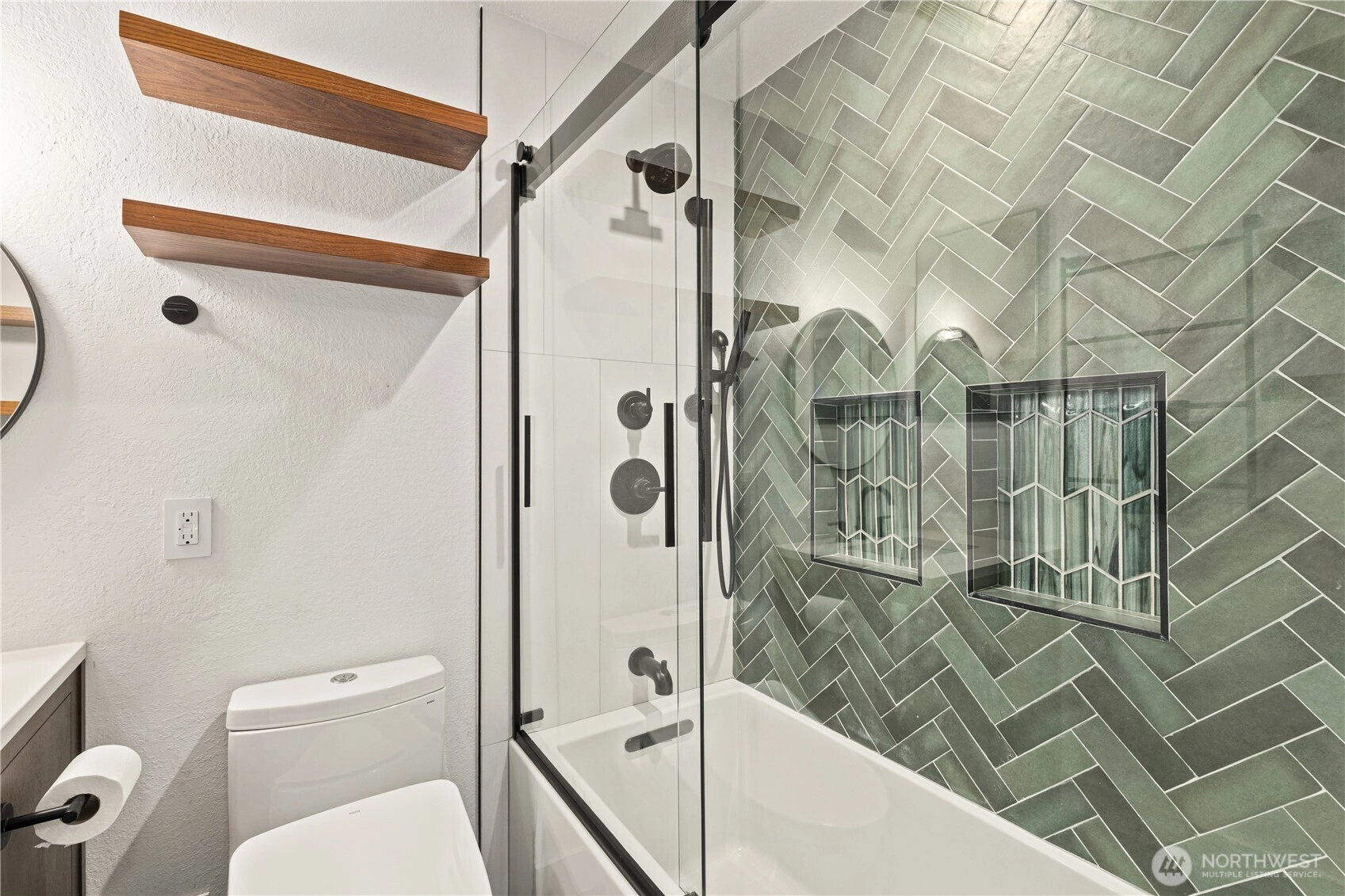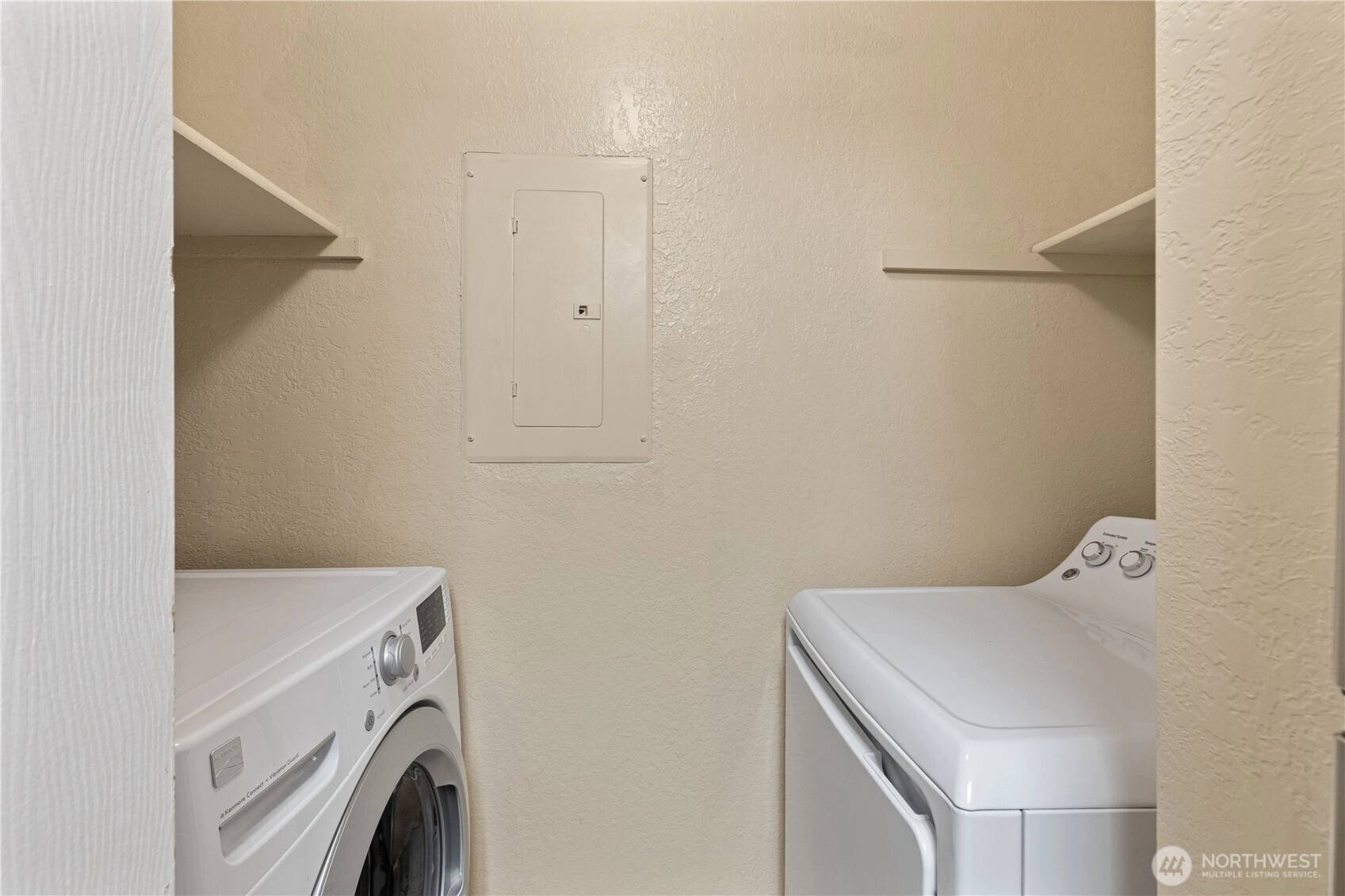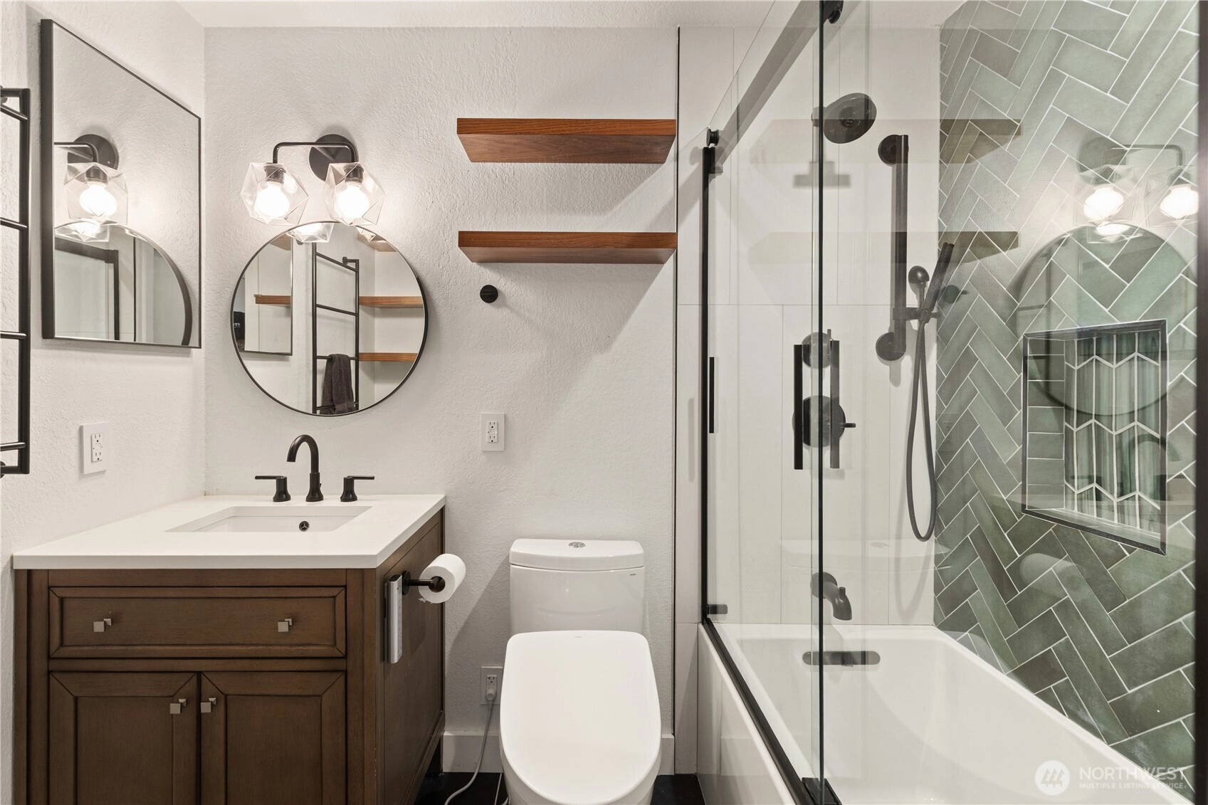 Opportunity Knocks in Lynnwood! Re-introduced at a refreshed price, this top-floor 2 bedroom, 2 bath condo offers a great chance to add value in a highly convenient location. The updated primary bath features heated floors, modern lighting, and a beautifully tiled tub/shower with a glass enclosure, while the rest of the home is primed to build sweat equity with your vision and renovations. Enjoy easy access to Mill Creek Town Center, the Alderwood Mall, and major freeways for an easy commute. Great public transportation options are just a short walk away. The community offers many amenities including a clubhouse, indoor pool, spa, sauna, exercise room, and more—making this an ideal opportunity to build equity in a prime area.