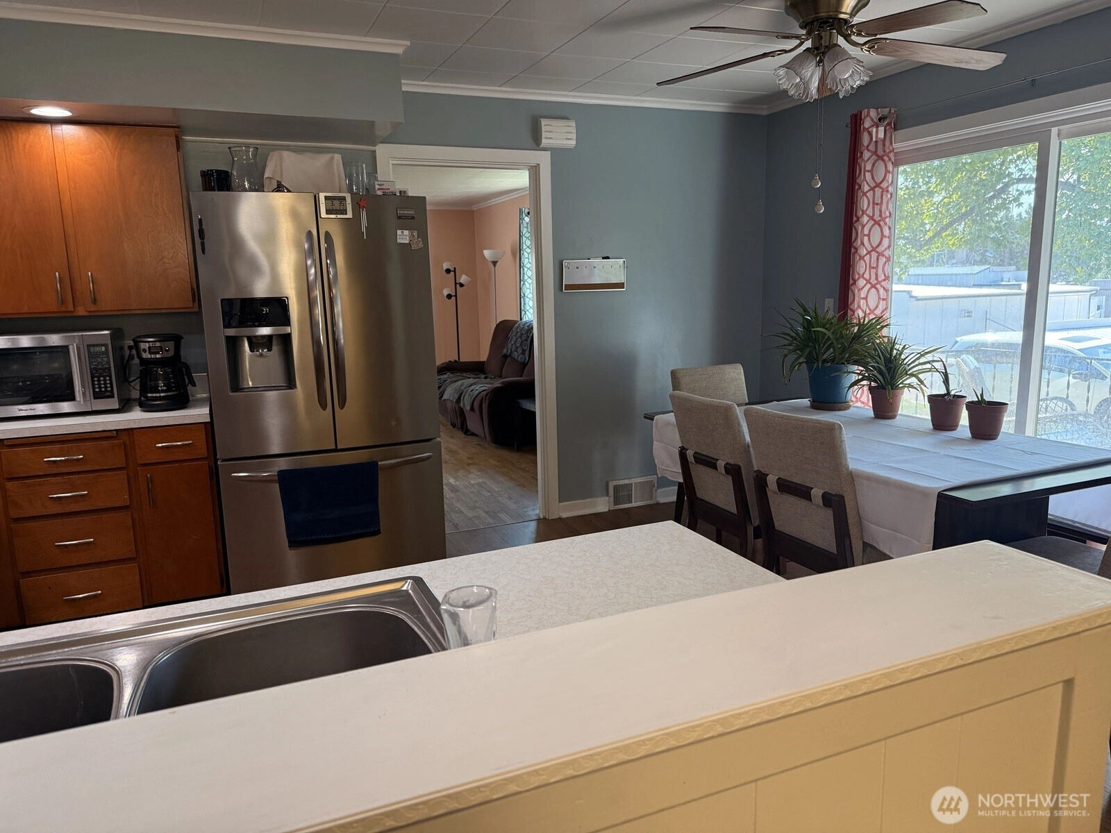 Discover this beautiful charming 3-bed, 1.75-bath home in Omak with recent upgrades. Features hardwood living room, kitchen with appliances, dining with slider to deck, utility room with W/D, pantry/office, and built-ins. Basement offers a family room, rec room with workshop and outside access, additional bedroom, and ¾ bath. Upgrades include a heat pump, new paint, flooring, fixtures, windows, electrical, plumbing, and water heater. Outside, enjoy a detached 2-car garage with wall heat pump, covered patio, front deck, and a landscaped, terraced yard with trees and garden space. A perfect blend of comfort and upgrades! Don’t miss the opportunity to make this move-in-ready home yours!