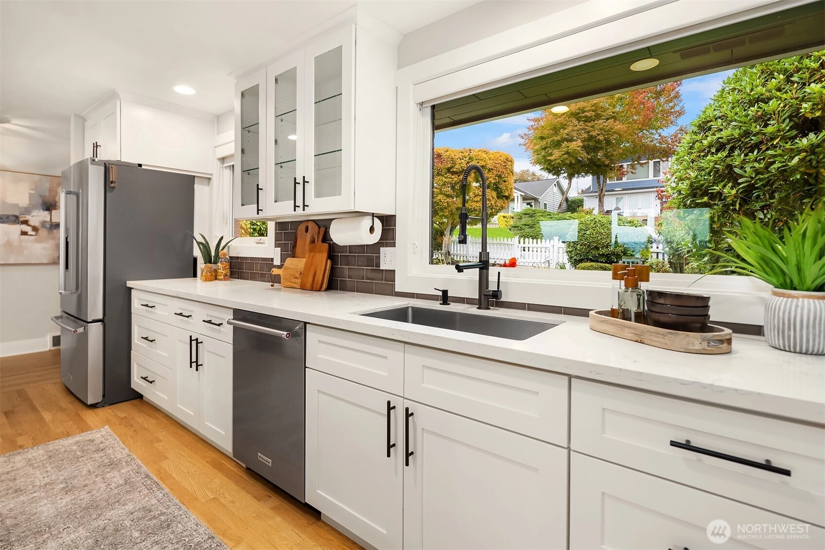 Your ideal Kirkland Home Experience unparalleled luxury in this fully remodeled residence nestled in the vibrant East of Market neighborhood, Revel in breathtaking lake, city, and mountain view that transform every sunset into a masterpiece. The open concept design seamlessly connects the main floor to a stunning view deck perfect for entertaining and taking in scenery. The main level also features a spacious primary suite plus an additional bedroom bath ideal for a 2nd primary suite; The lower level is thoughtfully designed with a bedroom, flex room, laundry and bathroom. Highly regarded Lake Washington School District. Schedule your tour today and step into your dream home!