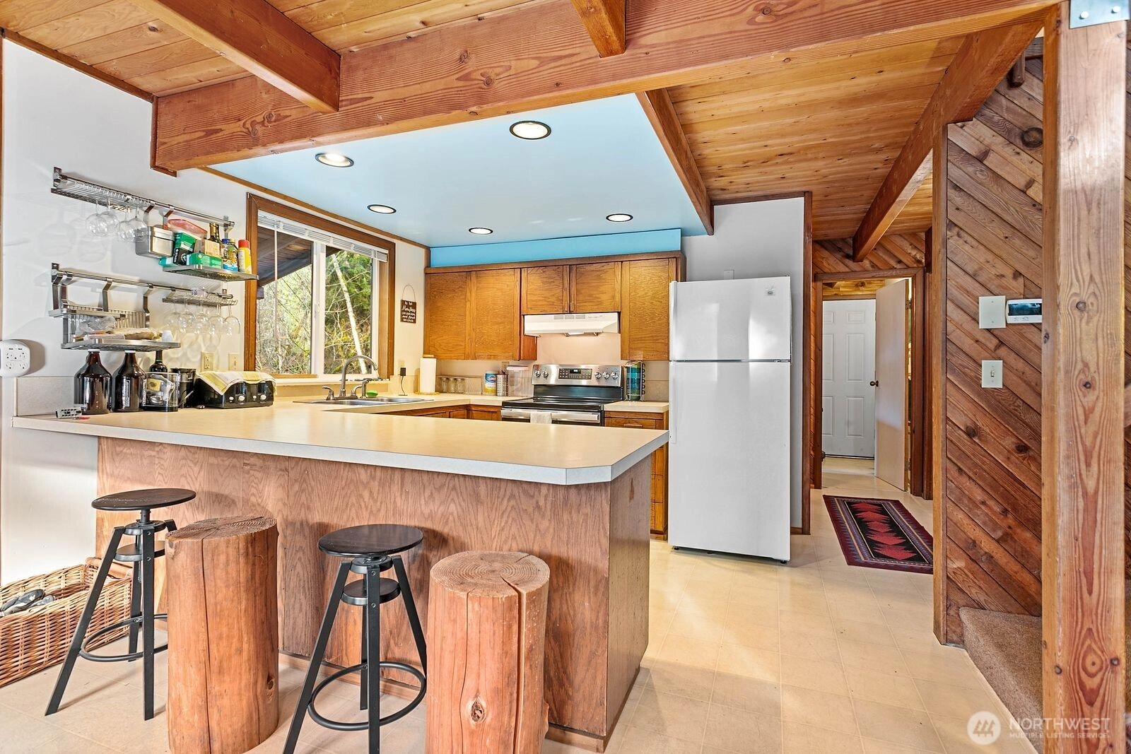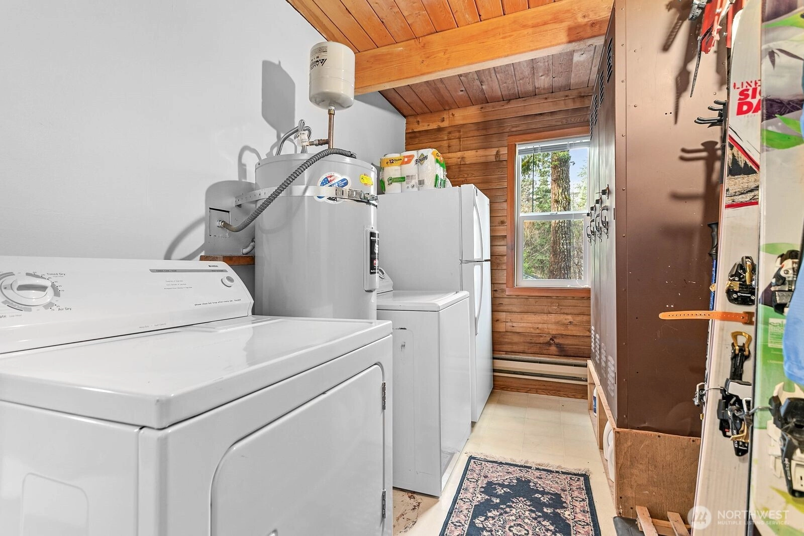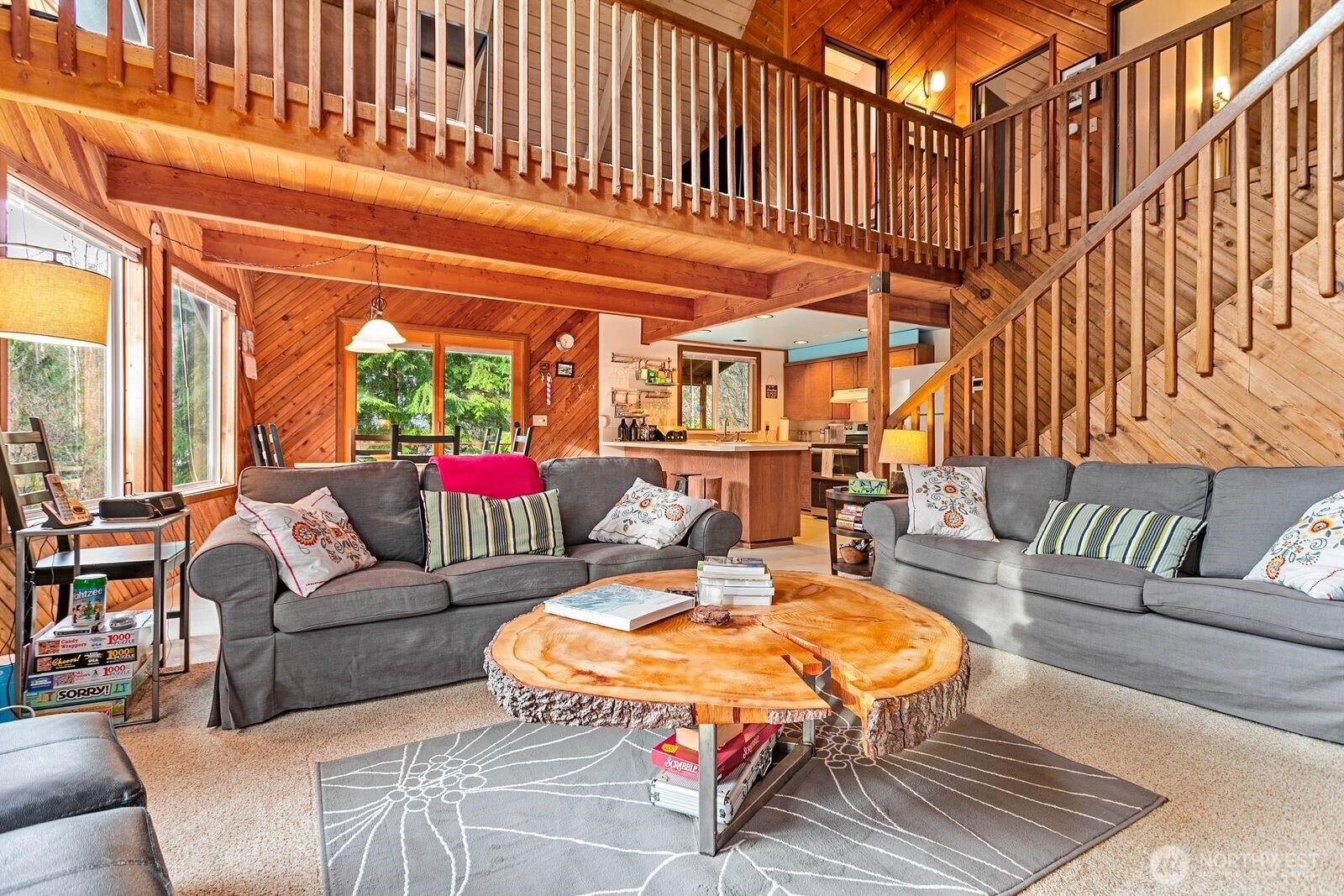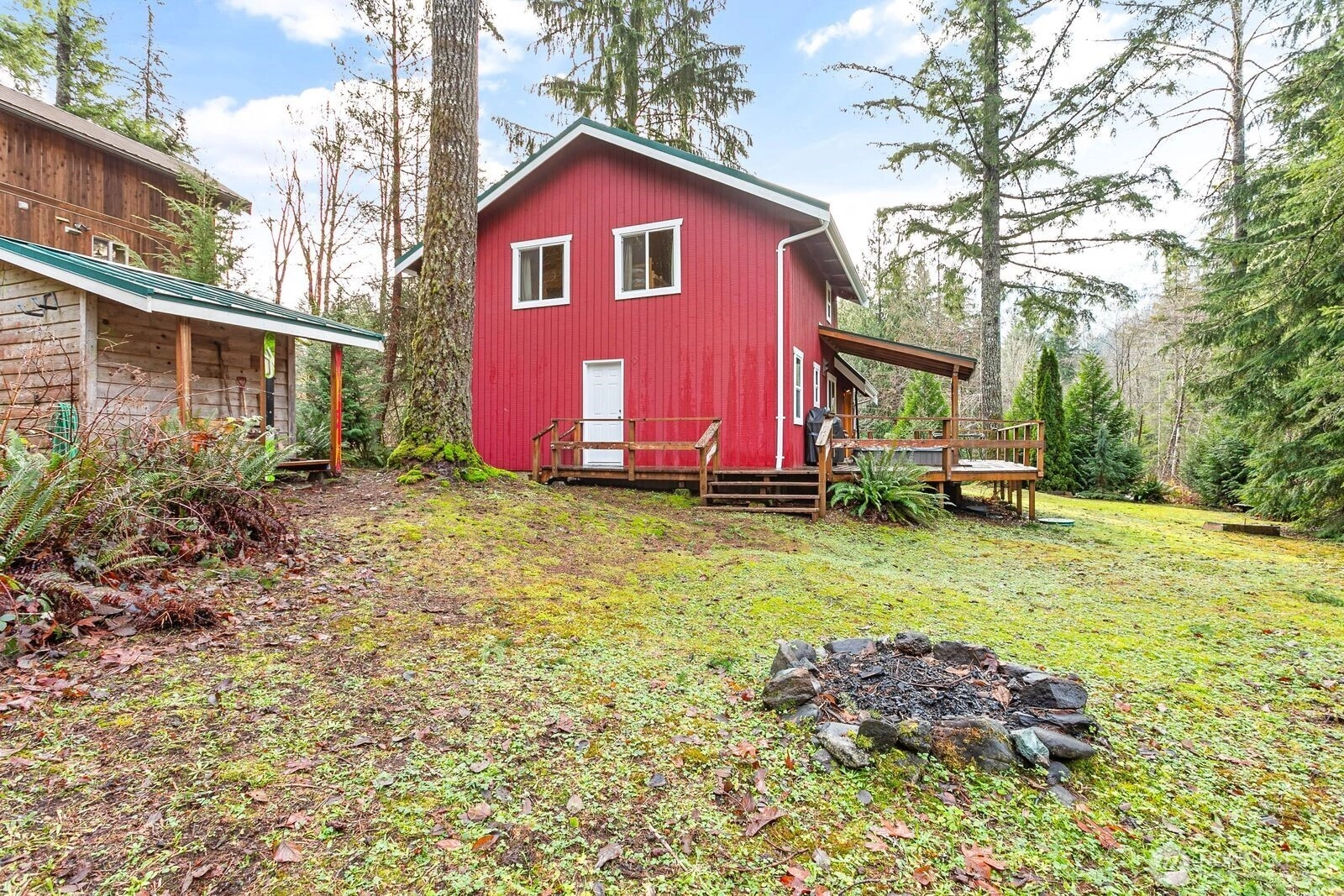Welcome to your PNW retreat! This classic cedar chalet offers rustic charm and modern upgrades on a sunny south-facing lot. Featuring 3 bedrooms, 2 baths, vaulted ceilings with exposed beams, and a spacious deck with covered hot tub. Recent improvements include a new metal roof and whole-house generator. The main level boasts an open kitchen, dining, and living area, the primary bedroom, full bath, and utility room with washer/dryer and gear storage. Upstairs, find two bedrooms, a 3/4 bath, and a versatile loft. Backing to State land at the quiet end of the neighborhood, enjoy direct access to trails leading to the Nooksack River.