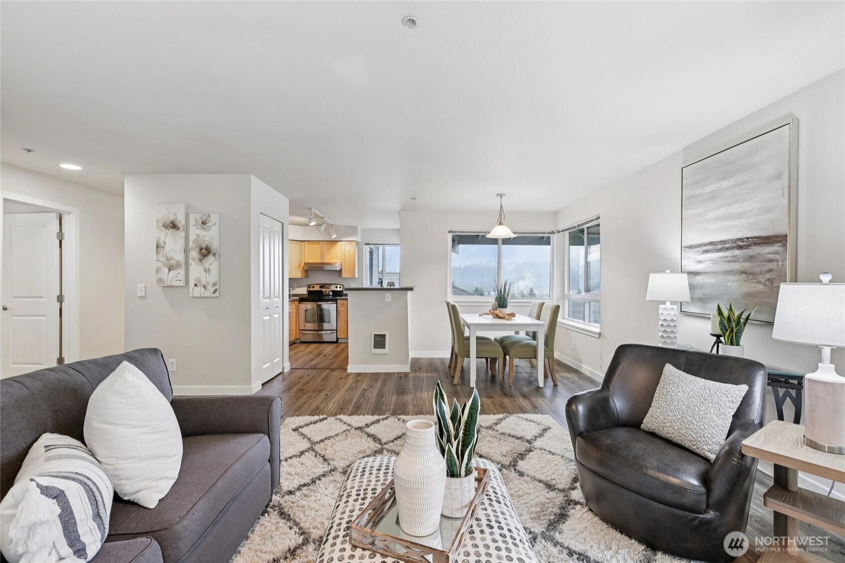 **$5000 SELLER CREDIT!!** Welcome to your new sanctuary! This lovely top-floor condo boasts breathtaking territorial views and a spacious front porch that invites you to relax & unwind while overlooking a lush greenspace. Nestled quietly at the back of the complex, this residence offers a serene escape from the hustle and bustle of everyday life. Discover a large great room, roomy dining area--perfect for entertaining. Updated kitchen features sleek SS appliances, granite, & views to the NW. Remodeled 2nd bath exudes modern elegance, making every day feel like a retreat. Down the hall, the expansive primary bedroom awaits, with ensuite bath. Parking spot + 1-car garage. Minutes from Woodinville, easy access to local wineries, fine dining, & shopping. Easy Commuting!