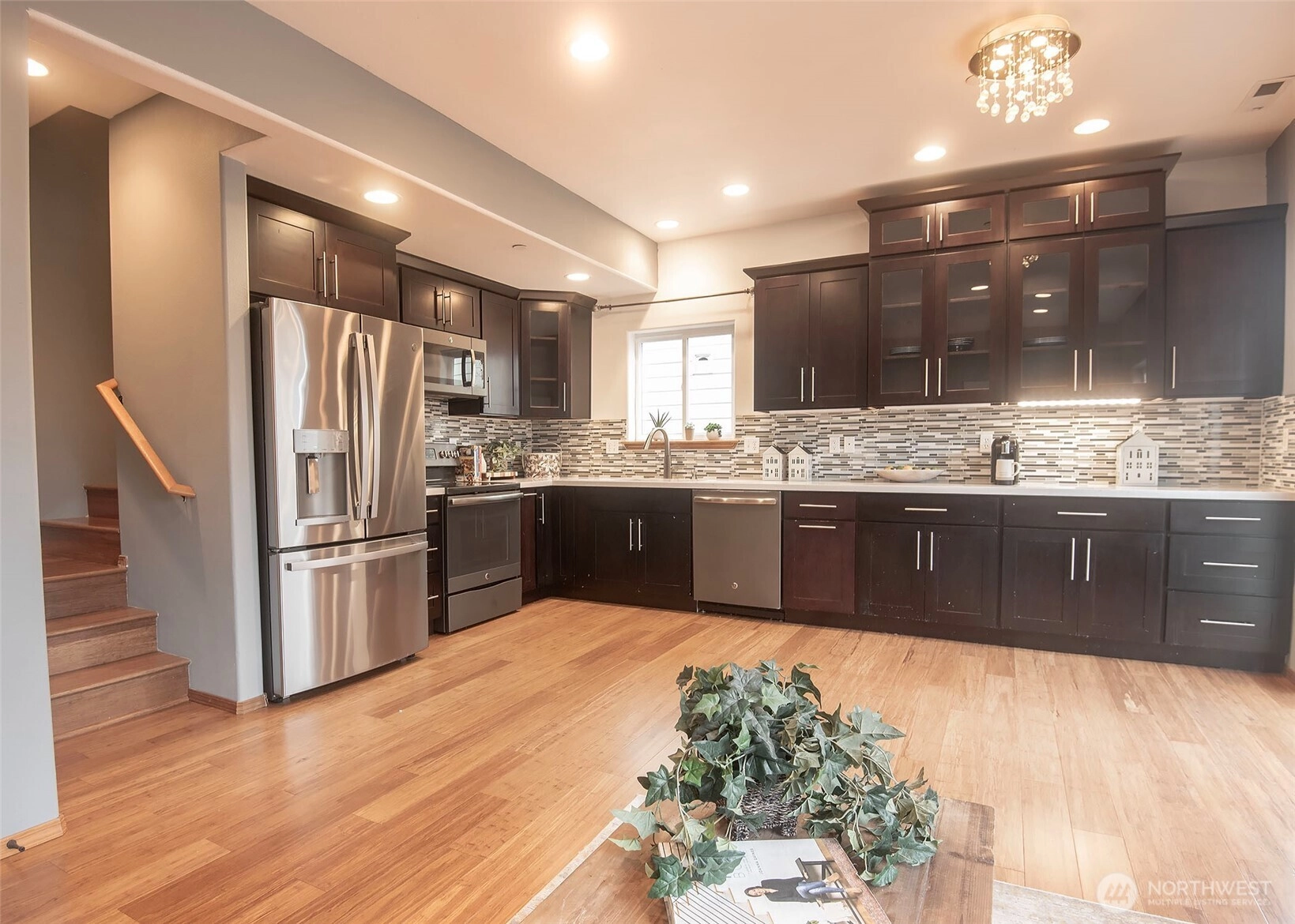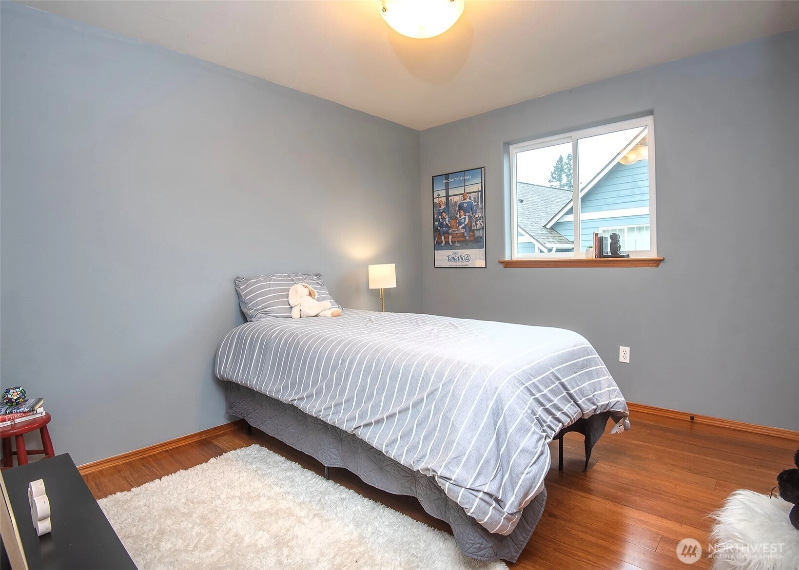 Welcome home to this tastefully remodeled three-bedroom residence featuring a spacious upstairs bonus room. The updated kitchen shines with new cabinetry, quartz countertops, and modern appliances. Fresh interior paint and newer bamboo flooring extend throughout the home, complemented by vinyl plank flooring in two bathrooms. All three bathrooms have been tastefully updated. Step outside to a fully fenced backyard with expanded yard space, a garden shed, and room to relax or entertain. Tucked away at the end of a cul-de-sac, the home also offers an extra parking space for added convenience. Enjoy the ease and comfort of living in the heart of Lake Stevens.