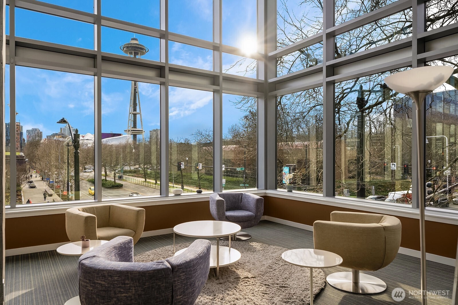 Imagine living in the hustle and bustle of the City, tucked away in your urban oasis. Built of steel and concrete, the Lumen was created to provide peaceful and luxurious living, community spaces, views of Downtown Seattle, South Lake Union & the Space Needle while bringing urban living with European style to Queen Anne. This exceptional top floor home features soaring ceilings, exposed concrete, designer light fixtures, full size w/d, expansive walk-in closet, air conditioning & private balcony. Enjoy a multitude of common area features including concierge, outdoor entertaining spaces with BBQ, media room, event space & game room with pool table. Located minutes from the Seattle Center, Climate Pledge Arena, Downtown & South Lake Union.
