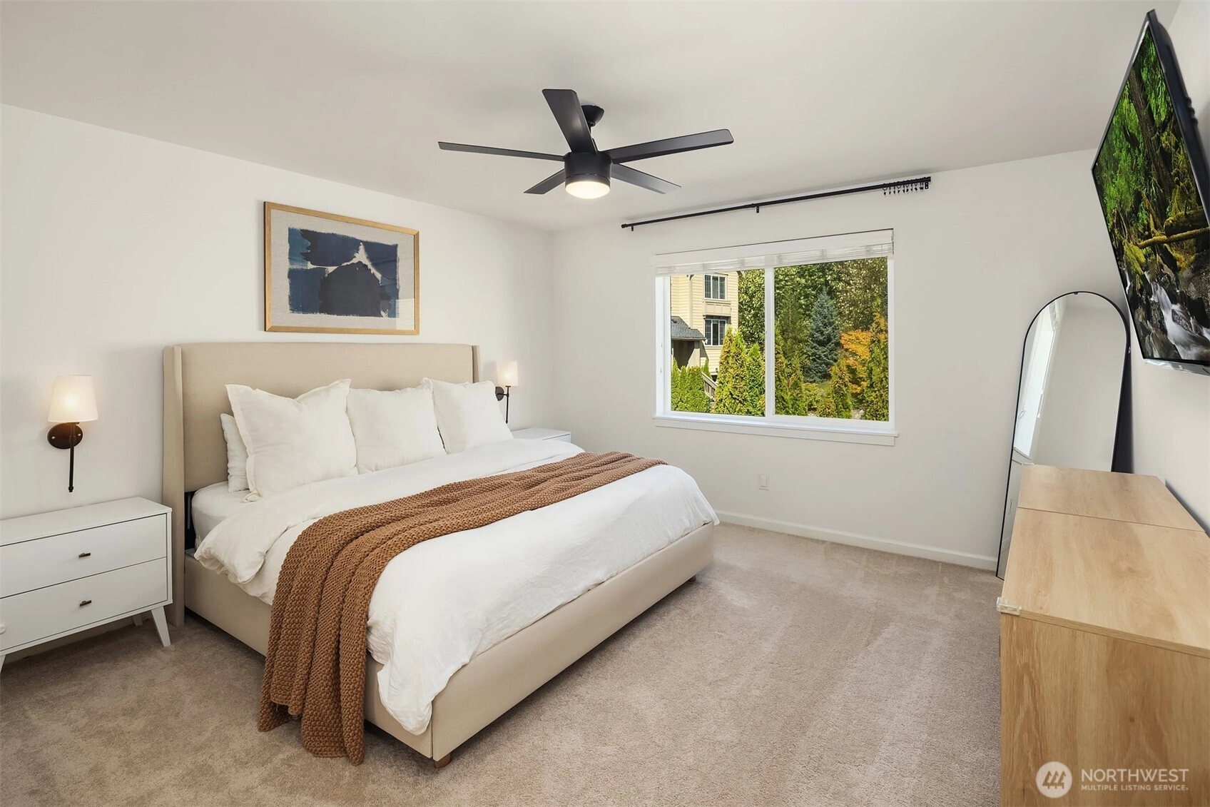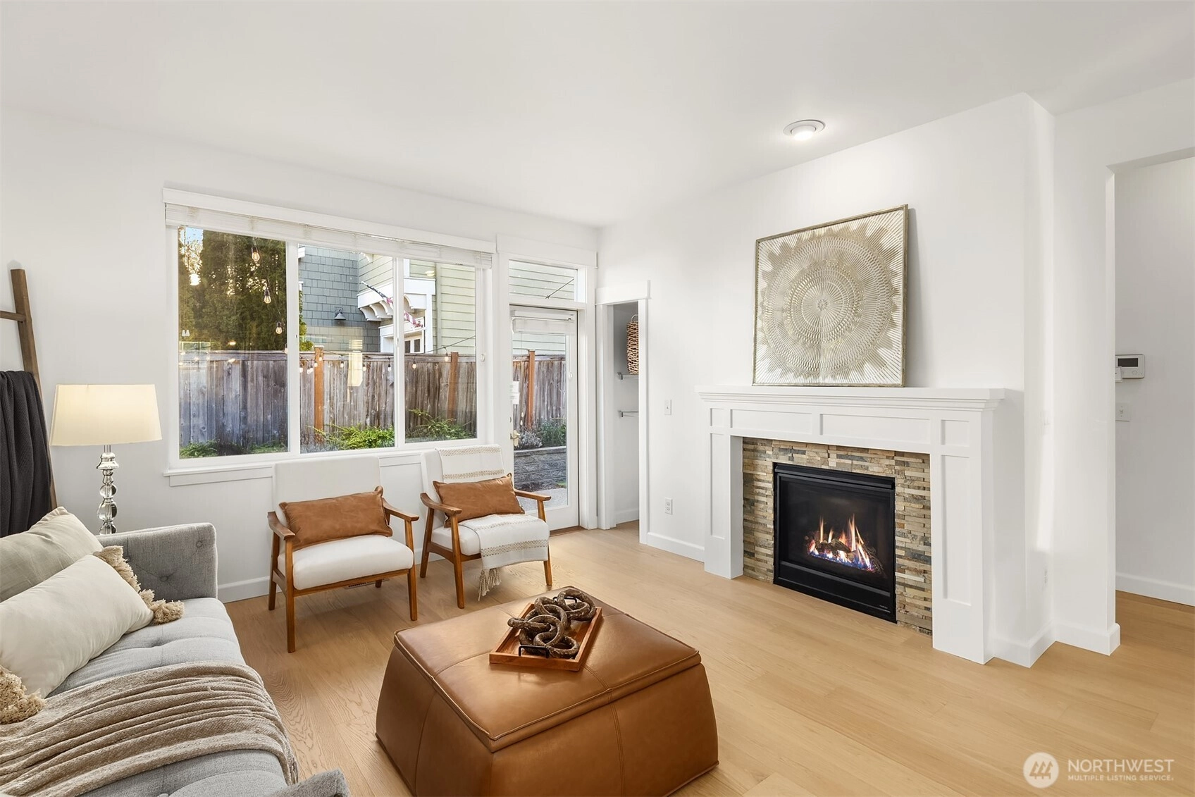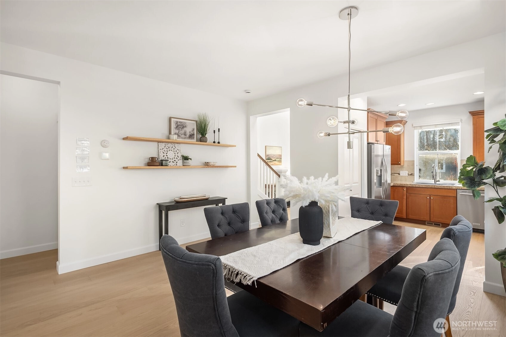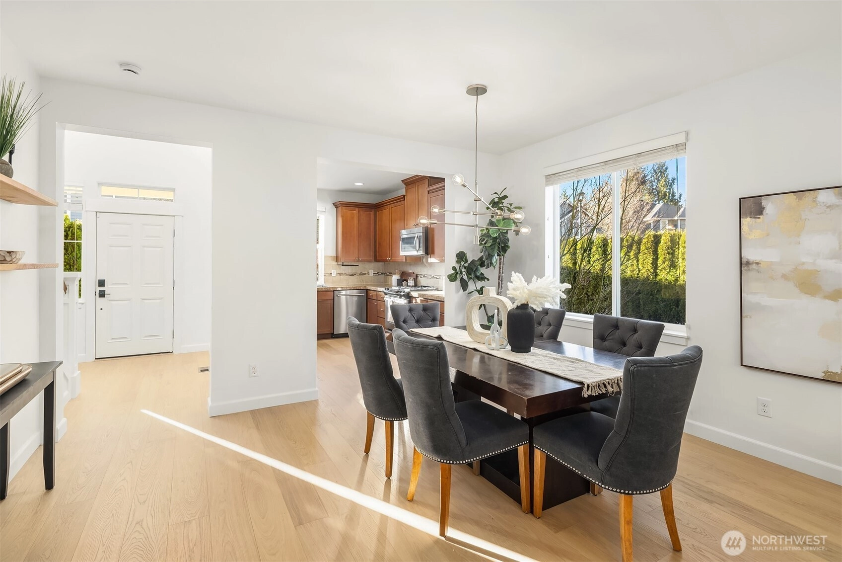 Step inside to brand new main level oak flooring and fresh interior paint, giving the home a bright, refreshed, and truly move-in-ready feel. Warm finishes and a cozy fireplace create an inviting atmosphere throughout this Snoqualmie Ridge retreat. The open kitchen features granite counters, stainless appliances, a gas cooktop, and rich cabinetry making it perfect for everyday living or entertaining. Upstairs, the primary suite offers a spa like 5-piece bath, along with two additional bedrooms, a full guest bath, and a versatile flex space. Outside enjoy a turf backyard ideal for relaxing or hosting. With A/C, nearby trails, parks, and all the amenities of the Ridge community, this home blends comfort, style, and ease.