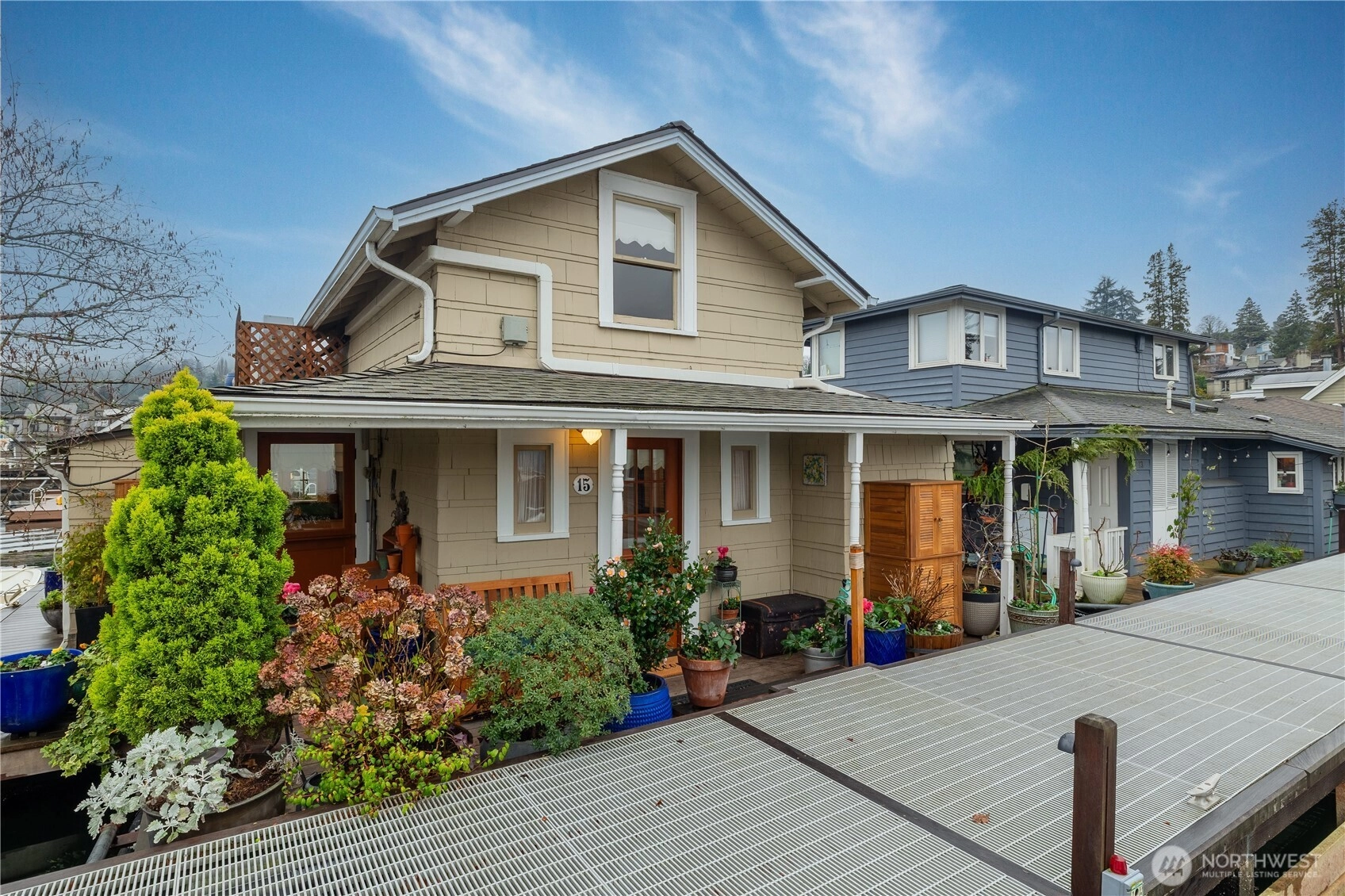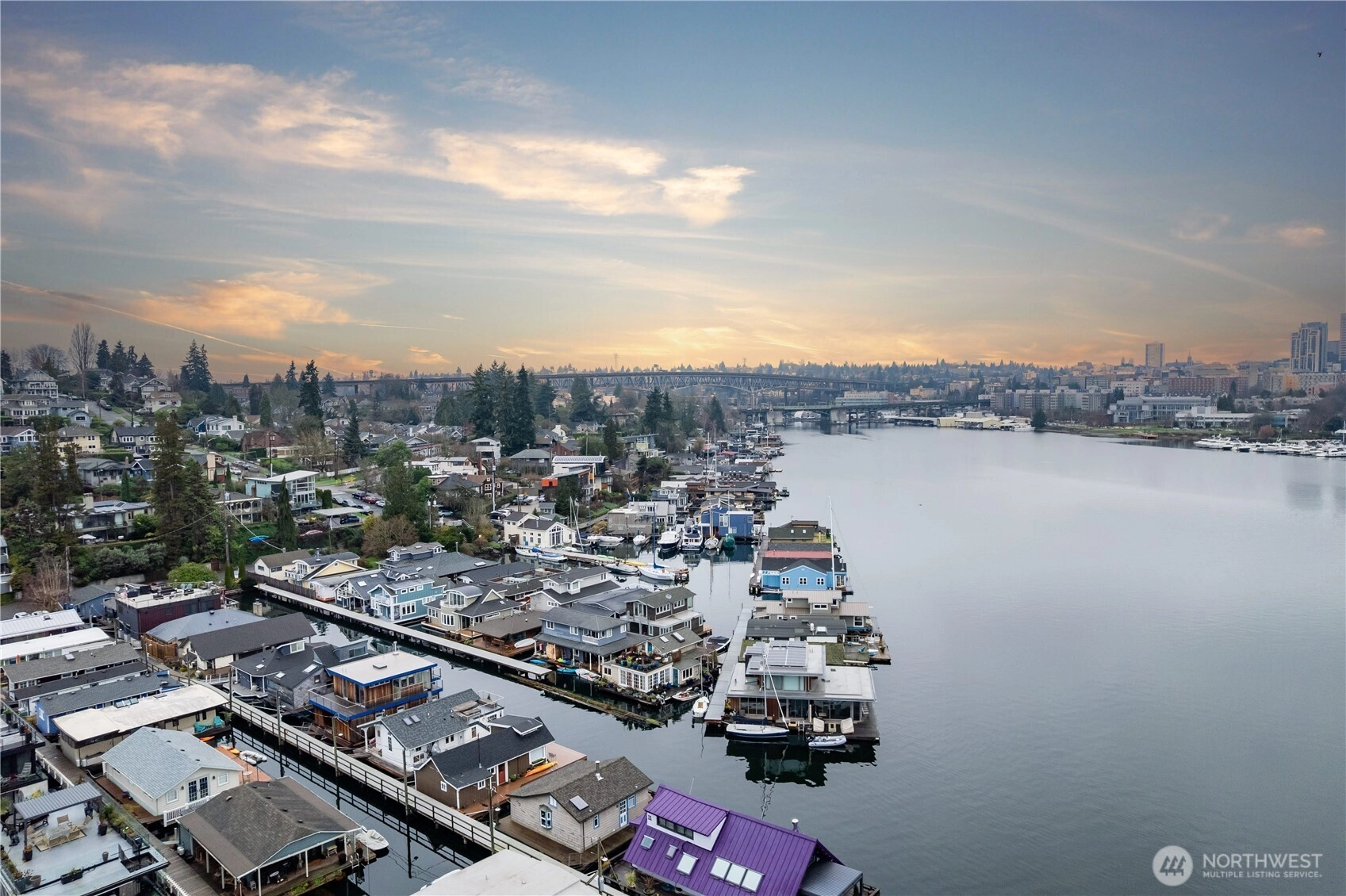 Towards the end of one of the nicer docks off the shores of Portage Bay, this serene waterfront retreat captures expansive south-facing light & breathtaking views while blending timeless character w/ thoughtful updates. Newly updated kitchen anchors main level & opens to inviting entertaining spaces that flow seamlessly to multiple decks. Large windows frame shimmering water, boats drifting by & ever-changing light throughout the day. The main floor features a spacious bedroom & full bath, while upstairs a cozy sitting area leads to a 2nd BR & rooftop deck w/ sweeping vistas toward the Cascade Mountains. Outside enjoy a private garden, room for kayaks, & ample storage on shore in exceptional Portage Bay sanctuary in the heart of the city.
