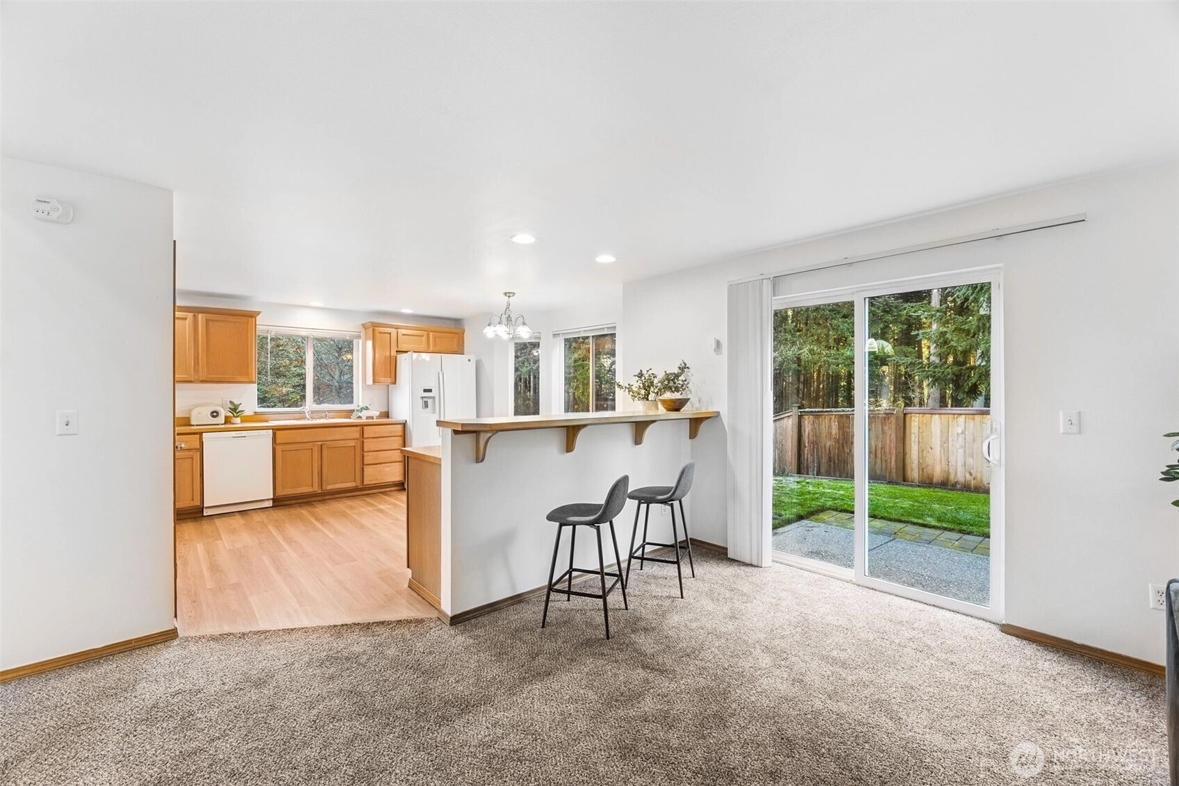 Resting on a large corner lot. An exceptional open & airy home. Thoughtfully designed home offers the perfect blend of comfort & flexibility. Spacious entry w/ formal living & dining room. Soaring ceilings, tons of natural light, skylight & large windows. The open floor plan features a family room w/ gas fireplace & slider to large fully fenced yard. Spacious kitchen w/ plenty of counter space, all appliances, breakfast bar & casual eating nook w/ bay window. Current updates, new carpet, pad, laminate vinyl flooring, freshly painted inside & out plus beautiful landscaping. 4 spacious bedrooms upstairs, primary w/ soaking tub, walk-in shower & walk in closet. Laundry room/mud rm off garage. Excellent location & Tahoma Schools! Move in ready!