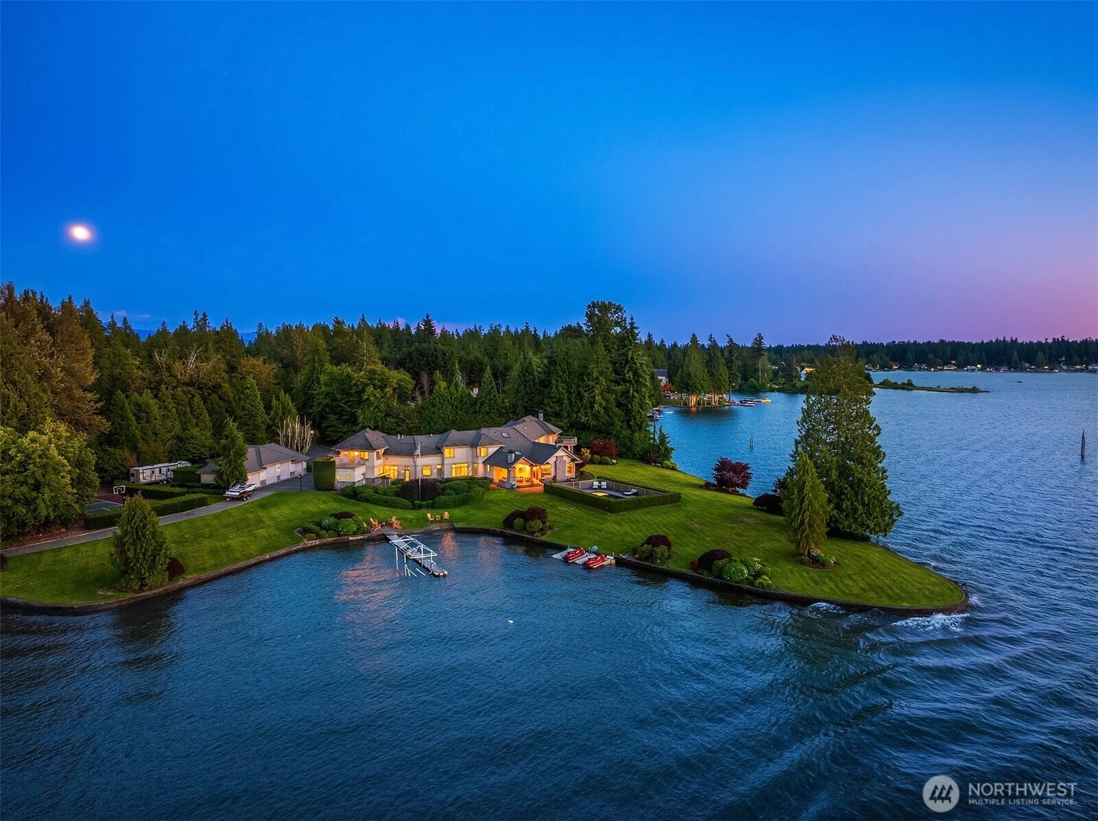 Experience Luxury Waterfront Lifestyle at the private community of Snag Island. Breathtaking estate ravishing in pure opulence. Magnolia lined gated entry lead to Lg circular porte cochère w/extensive parking & 7+ car garage. Hand-picked architectural details from the finest materials of the century, this shy 11,000 SqFt legacy residence opens to grand spiral staircase & Juliet balcony. An entertainer’s dream; perfect mix of sophisticated & casual spaces w/panoramic lake views from every room. 5.25 acres of rare north-eastern facing 1370' Lake Tapps peninsula. Lavish grounds w/spectacular sunsets feature sports court, in-ground pool & hot tub. At the water’s edge: covered lift, boat launch & beach.