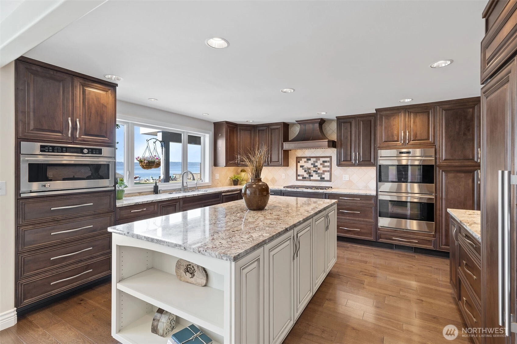 Discover the unparalleled charm of waterfront living with this exceptional residence in highly coveted Normandy Park. The meticulously renovated property offers 88 ft of low-bank shoreline along Normandy Park's most desired Street. Warm, heated tile floors welcome you home! The gourmet kitchen is a culinary enthusiast's dream, featuring top-of-the-line appliances & custom cabinetry—all designed within a spacious open-concept layout, perfect for entertaining. The primary suite is your personal oasis, featuring a luxurious spa bathroom w/private deck. Breathtaking water & Mtn views from nearly every room. Two Primary Suites. The spacious deck & pool area are ideal for sipping morning coffee or unwinding while watching spectacular sunsets.