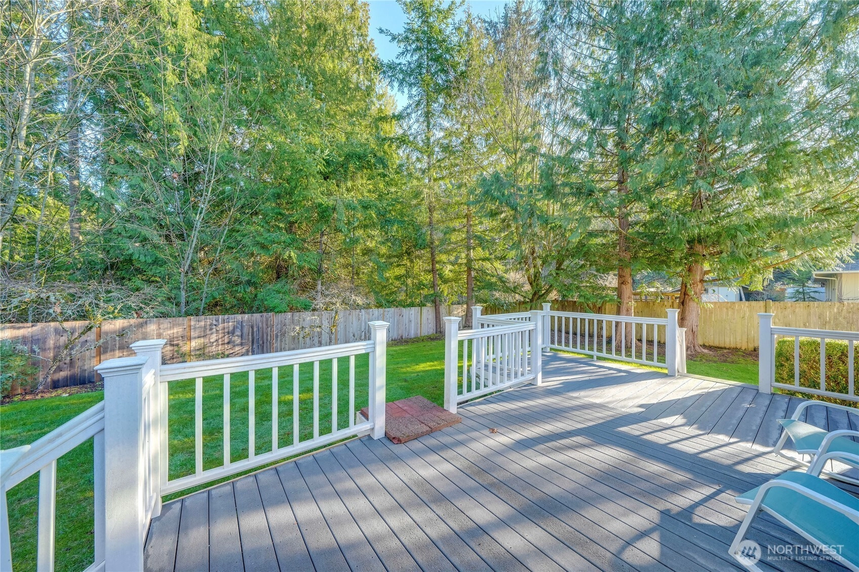 Absolutely charming single-story home on a flat, fully fenced lot just shy of 1/3 acre! Enjoy peace of mind with a new roof, new flooring, updated bathrooms, and fresh interior paint. Inside features three generously sized bedrooms, including a primary with a private 3/4 bath, a large family room, spacious dining area, and a kitchen with a cozy nook. You’ll love the oversized laundry room and abundant storage. Step outside to a composite deck overlooking a huge backyard that backs to green space—perfect for relaxing, entertaining, or tossing a ball. This one checks all the boxes—schedule your showing today!