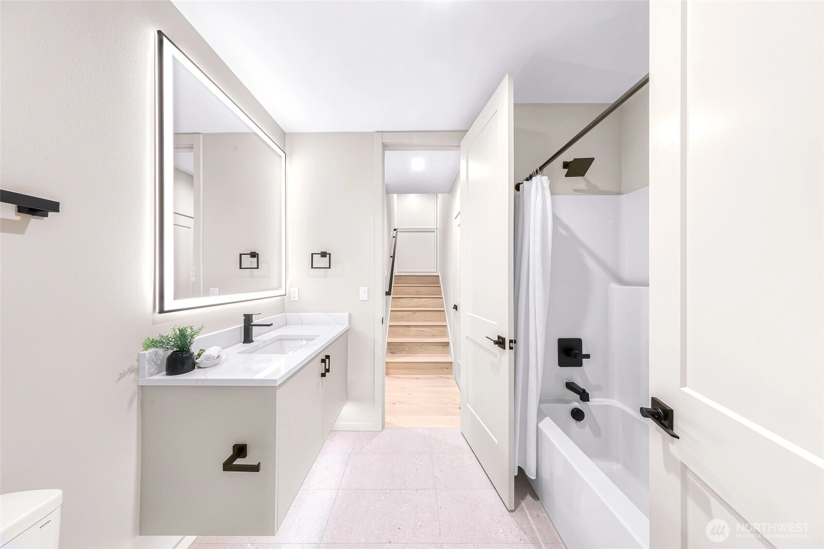 Slusher Luxury Homes is building this beautiful contemporary 6 bedroom, 4 bath home on a large 1/4 acre lot. This home boasts 3,894 SF of living space. The wide open main floor has a cook's kitchen w/ an ample amount of cabinet space, a 7'+ island kitchen complete with Thermador commercial apps, quartz c/tops & pantry. Main floor guest guest suite, a mud room & a huge 24x14 deck. 46" linear fireplace. Upstairs includes a spacious primary suite with a 2 person-8' shower! 3 additional bedrooms & large 240 sq ft flex space, perfect for a game or media room. Separate living area on lower floor, Custom bar area with walnut and super matte black cabinets. Lots of engineered H/W flooring. Lot is fully landscaped & fenced. Pre-wired for EV