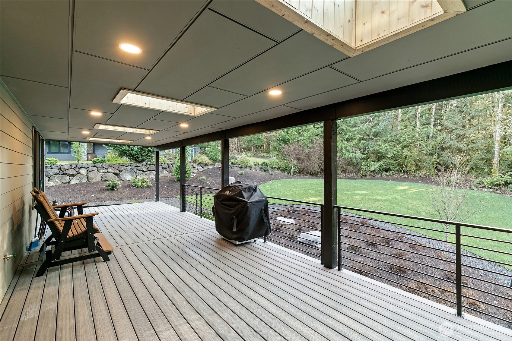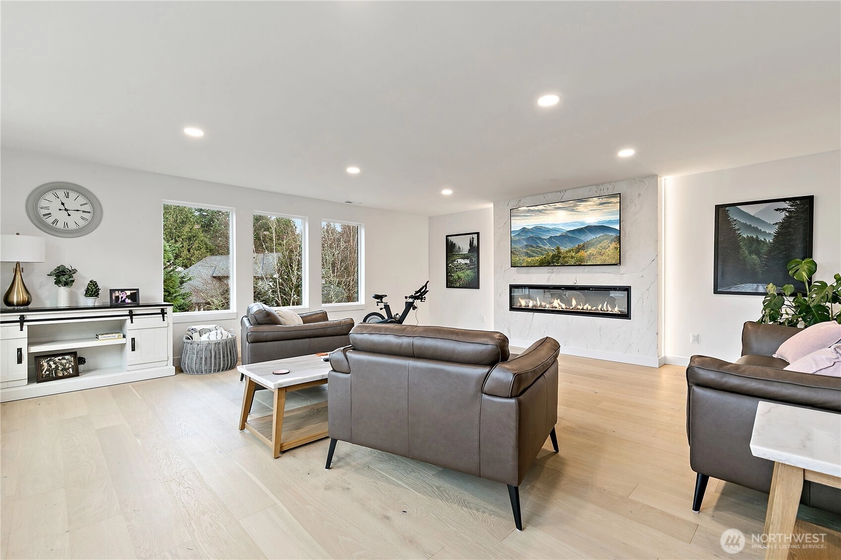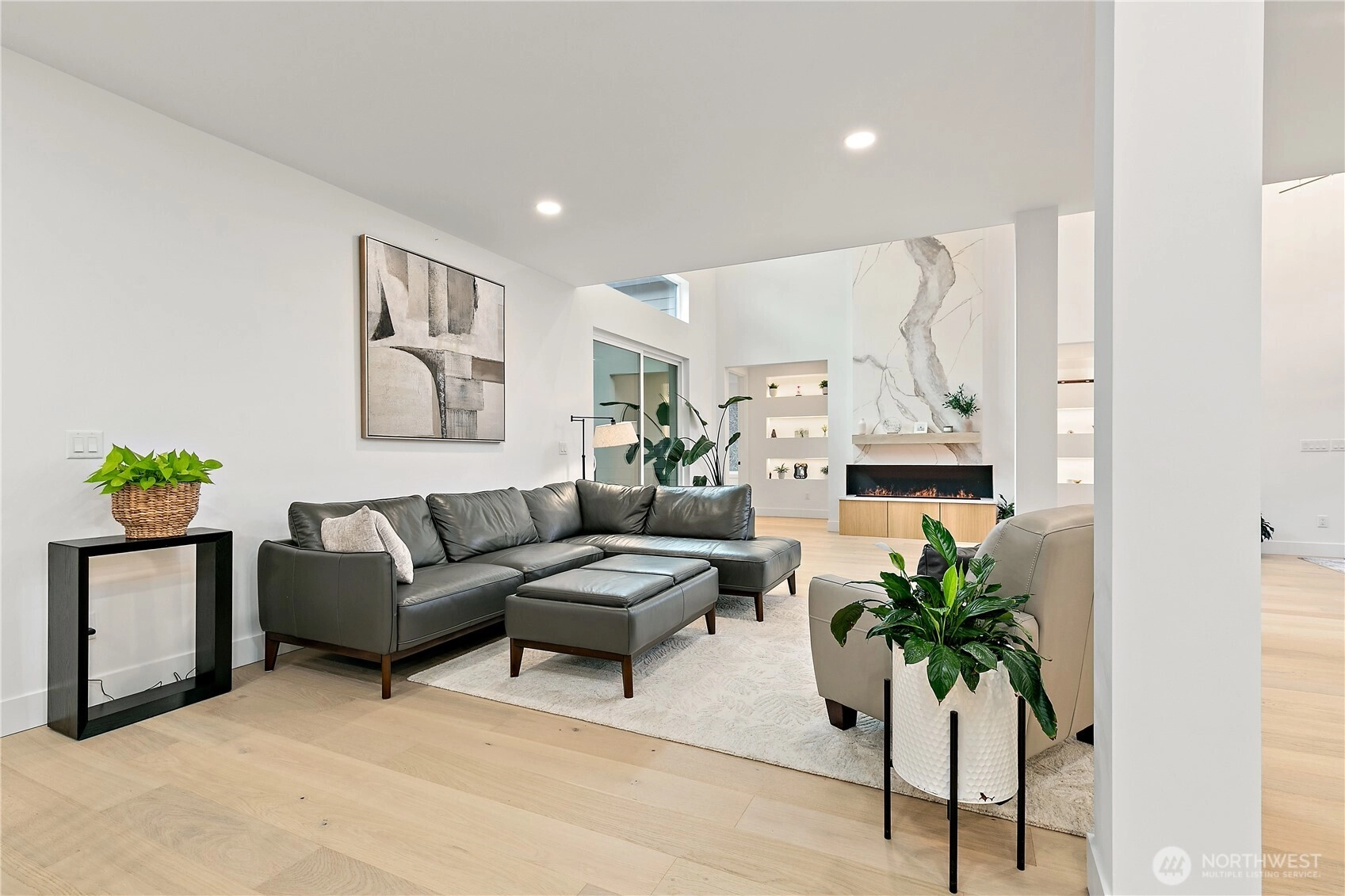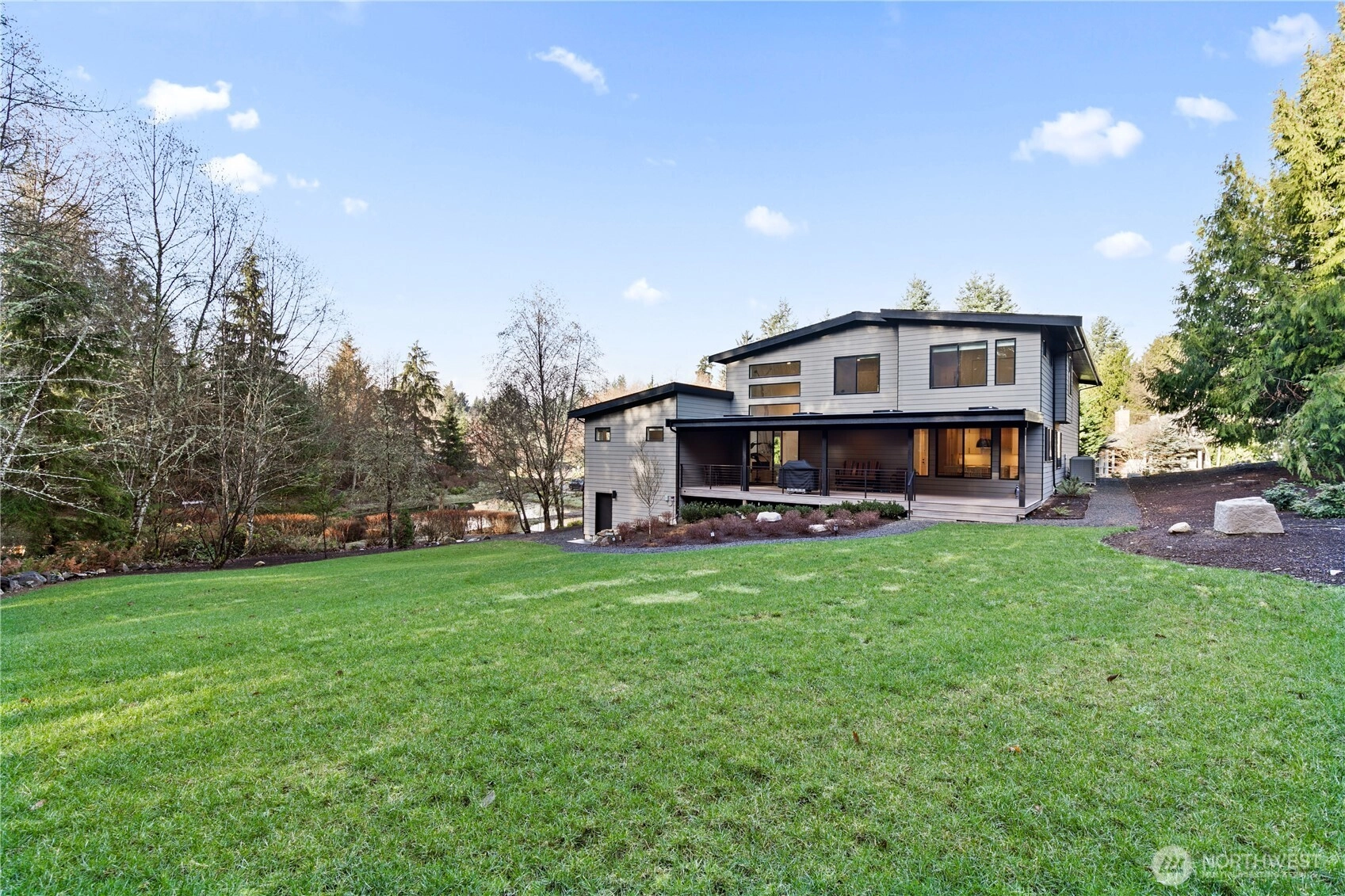 Welcome to this contemporary custom residence, delivering the sophistication and style of new construction with premium upgrades. Thoughtfully designed, the home offers four bedrooms plus a den, with the primary suite and den on the main level. A floor-to-ceiling fireplace anchors the entry, while open-concept living spaces extend to a covered deck overlooking a greenbelt. The gourmet kitchen features custom cabinetry, refined surfaces, and top-tier appliances, ideal for entertaining and living. A bonus room adds versatility, while the finished basement offers space for a gym or media retreat. Complete with custom window coverings, a sprinkler system, and an epoxy-finished garage, this move-in-ready home offers a lifestyle better than new!