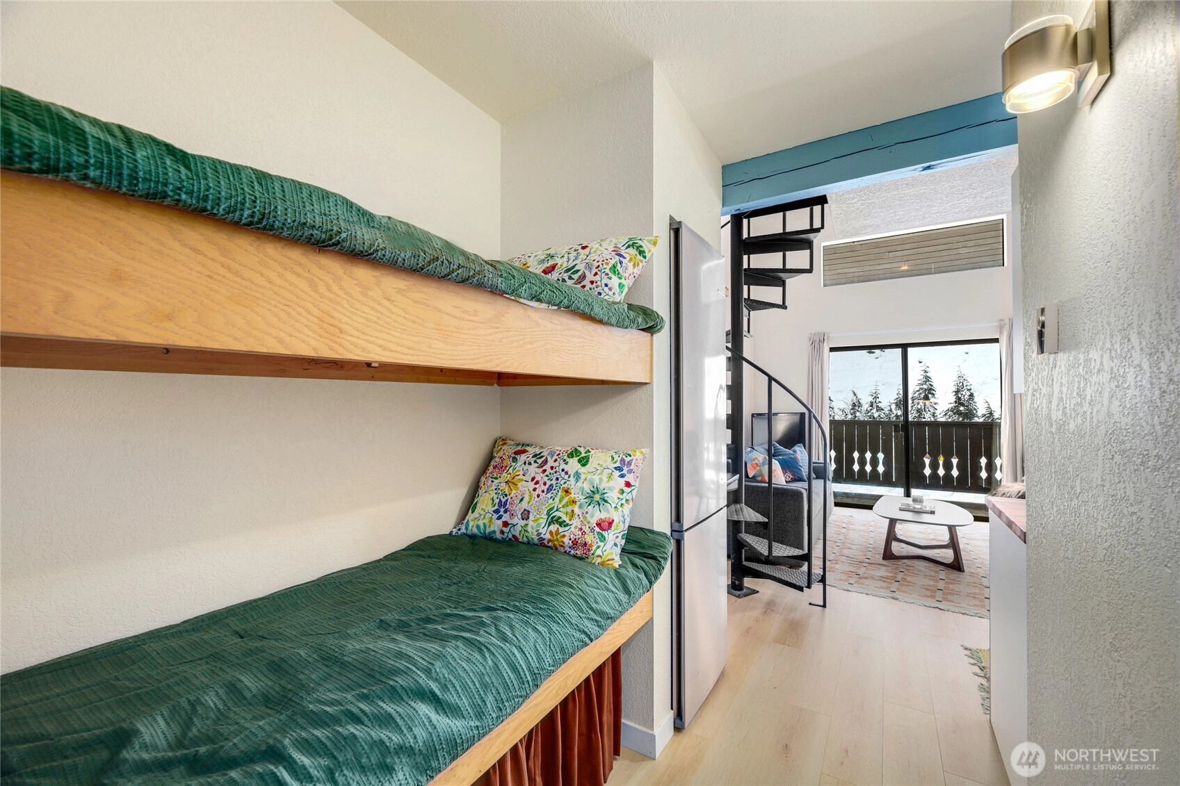 Ski right back to your condo!! Steps from the ski lifts at Alpental this coveted studio loft is the layout you have been waiting for. West facing gets all the natural light, second floor provides mtn views, warm floors and high ceilings with loft.Tastefully updated, new flooring, kitchen, appliances, bath, and paint. Bunks in entry provide extra sleeping, storage or office space. Private loft creates a primary bedroom space with room to work, stretch, exercise or just relax after a long day on the slopes. Private deck with views of the mountains. Condo community has hot pool, sauna, parking in secure garage, garden area, fire pit, cascade mountain views and located right on the head waters of the South Fork of the Snoqualmie River.