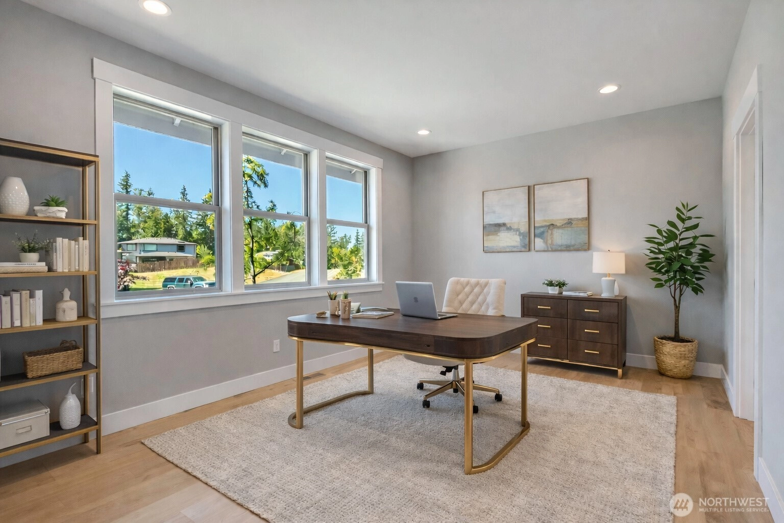 New Custom Home at private luxury community.Enjoy mountain views and spacious 1/2 acre property.Open concept gourmet kitchen features 8-feet island, accent dining cabinetry, stone backsplash and premium appliances.Bright great room with floor-to-ceiling gas fireplace, enlarged windows for natural light.Main floor office with closet and bathroom-perfect as 5th bedroom.Luxurious primary suite boasts built-in cabinets, spa-like bath with oversized shower, freestanding tub, makeup vanity and huge walk-in closet. Hardwood floors throughout, laundry with cabinetry, loft upstairs. Covered deck, rich neat landscaping, private backyard.Huge property with potential.