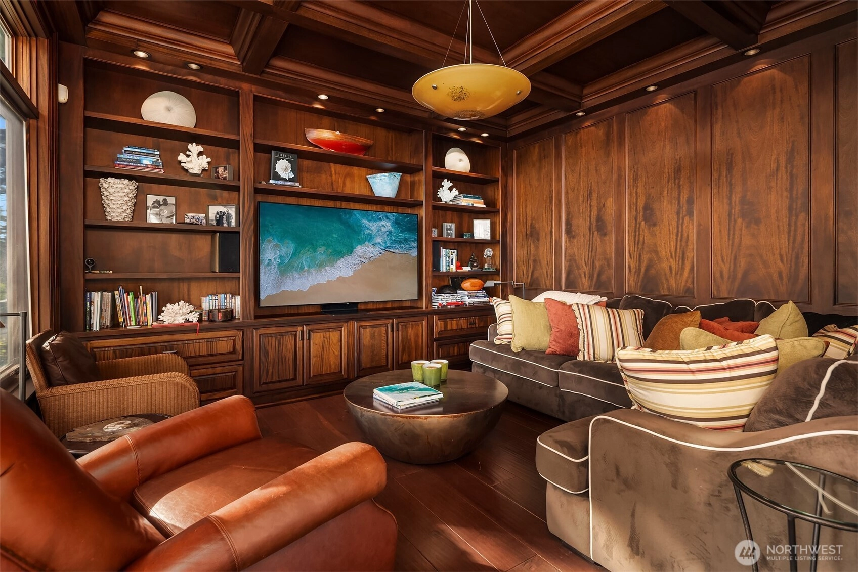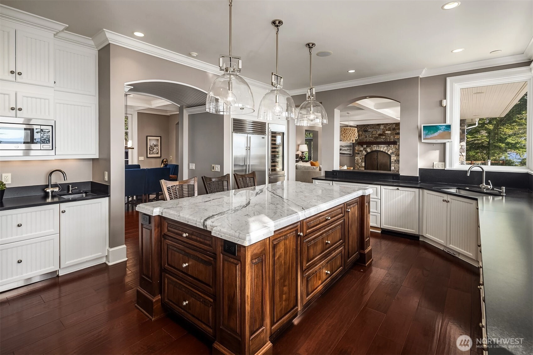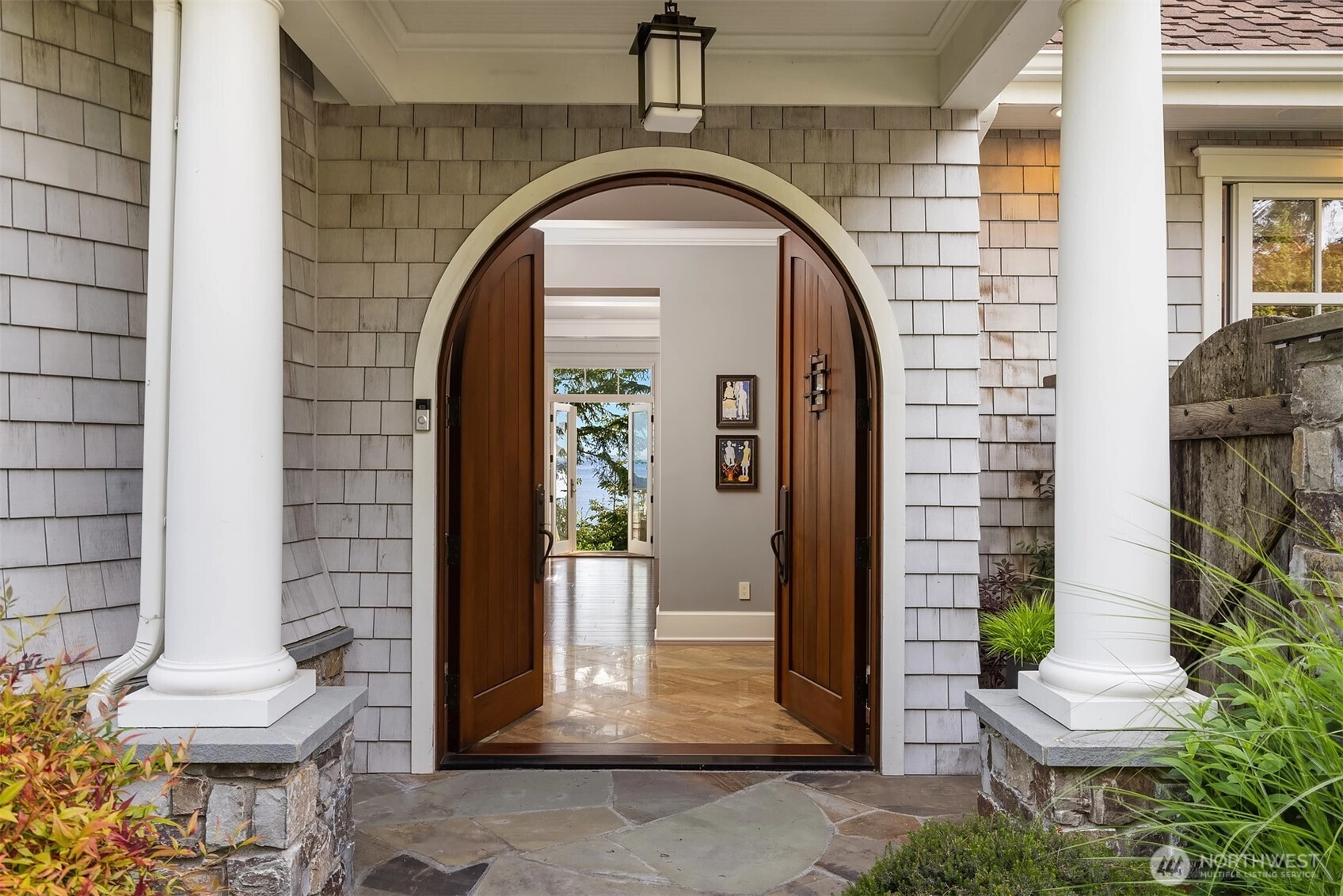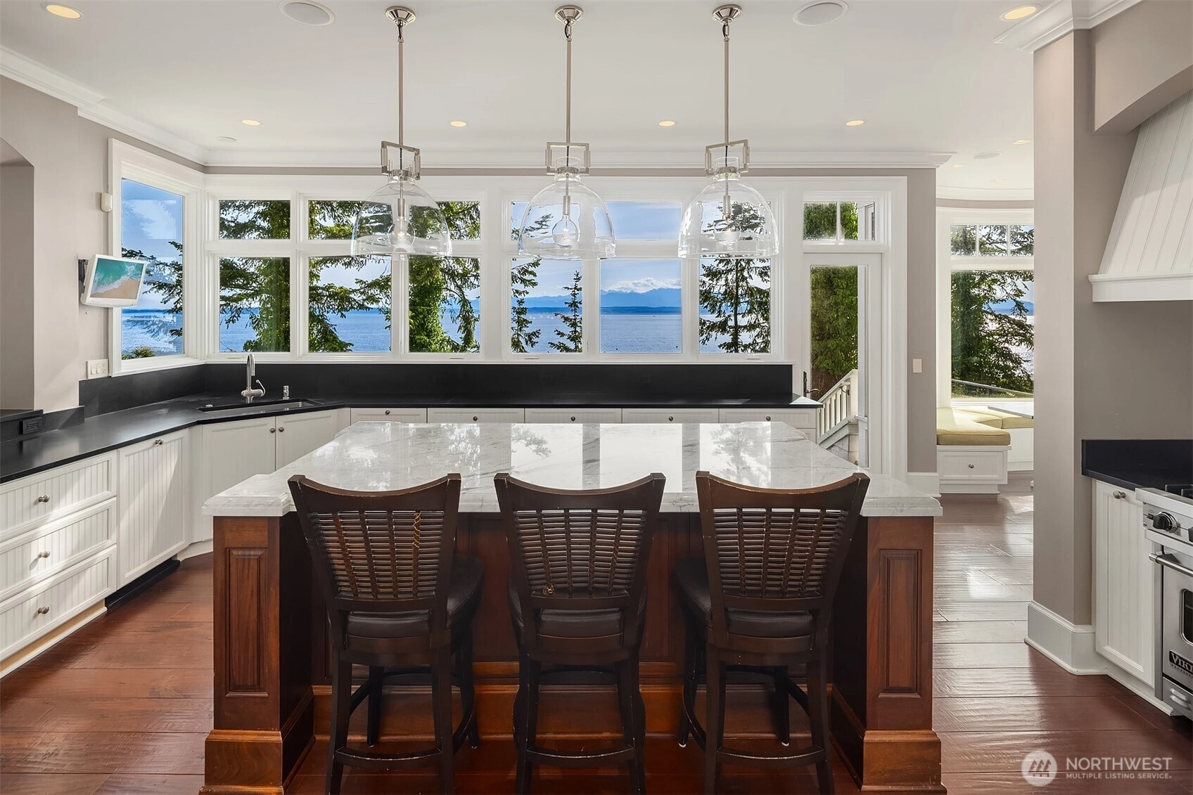 Quintessential Coastal Living on Mutiny Bay. Enjoy sweeping western views & the ultimate in privacy from this beachside retreat. Incredible craftsmanship over 6,100 sf of gracious living. A floor plan designed to entertain & host friends. Expansive great room, kitchen & family room with awe-inspiring views of water & the Olympic mtns. Dining room for 10+, covered outdoor living. Relax fireside as the sun sets. Hot tub, firepit & the coveted wide, sandy beach for endless play & chasing the sun. Four bedroom view suites, including luxurious primary w/vaulted ceilings, fireplace & deck. Upper level with spacious exercise room, spa, deck & loft. Media room & more. Nothing missing at this incredible estate where every day is a vacation.