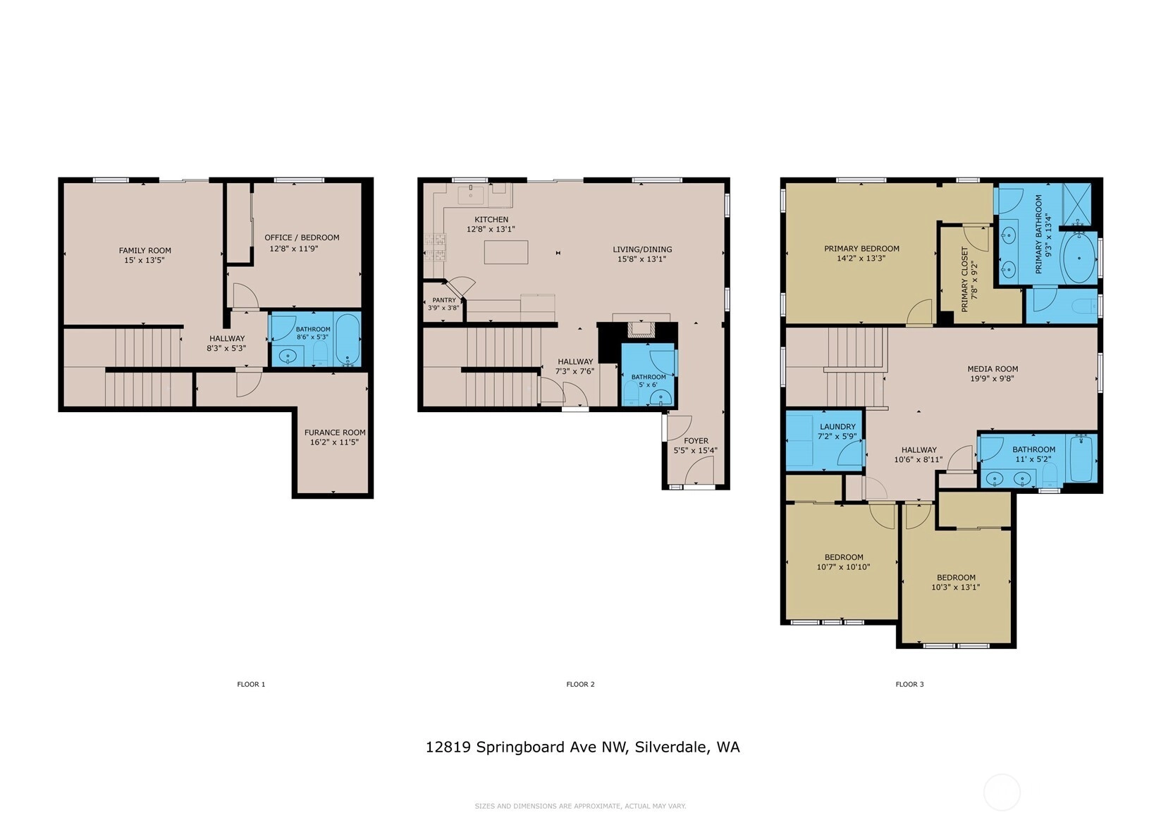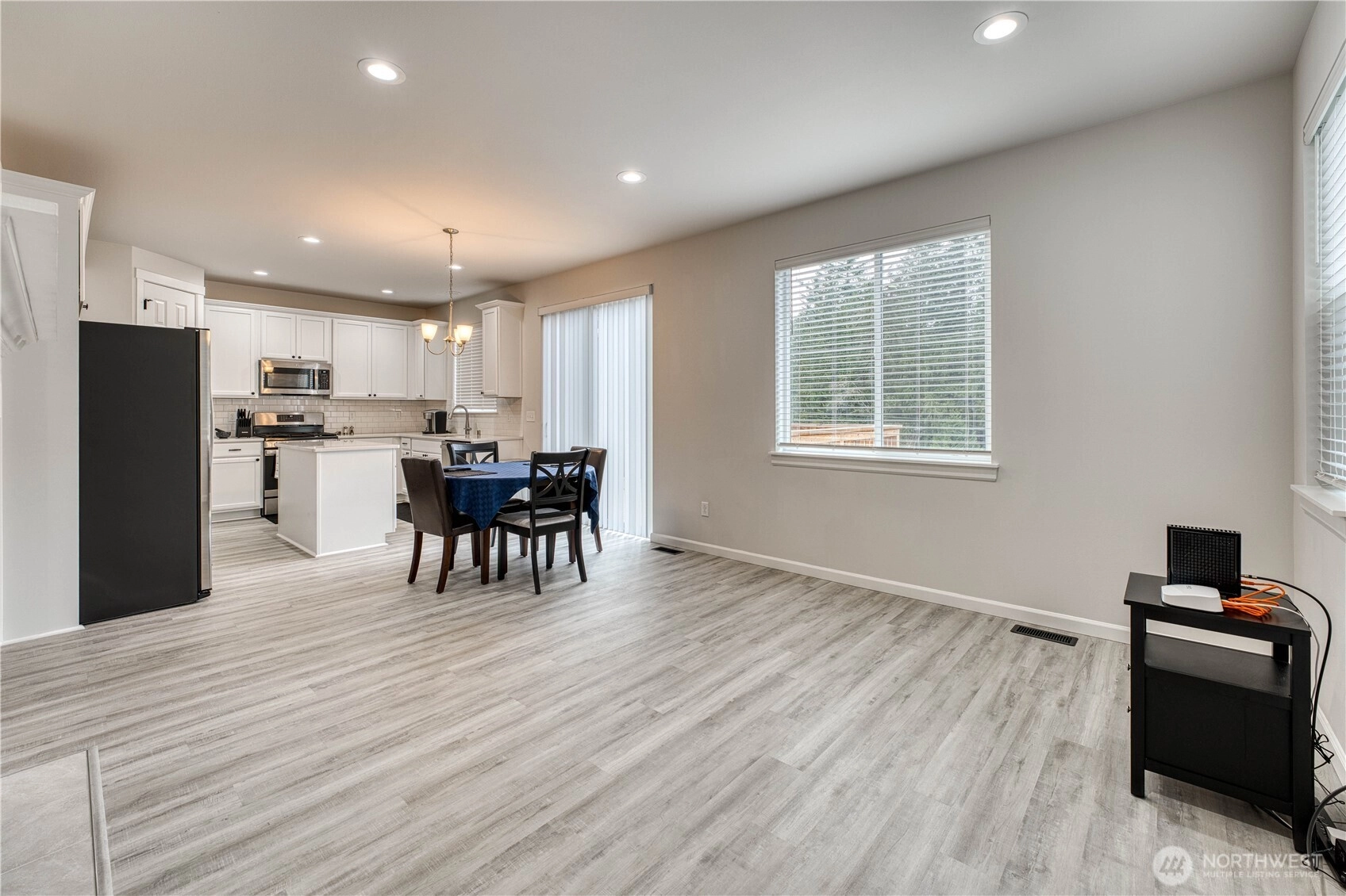 Built by Richmond American in 2023, this like-new home offers over 2400 sq. ft. of elegant yet highly functional living space! Main floor boasts Luxury Vinyl Planking throughout, 1/2 bath, Great Room w/tile-surround gas fireplace, eat-in Island Kitchen w/Quartz Counters, Tile Backsplash, SS Appliances, Pantry, Wet Bar/Mud Room, and Slider to an expansive Rear Deck. The Upper Level begins w/large open loft area, Two Secondary Bedrooms, a full shared Bath w/dual sink vanity, Laundry Room, Primary Suite w/5-piece En Suite including walk-in shower & large Soaking Tub. The Lower Level consists of large Family Room, another Secondary Bedroom, Full Bath with Tiled Floor, Utility Storage Room, and Slider leading to covered patio. Welcome Home!