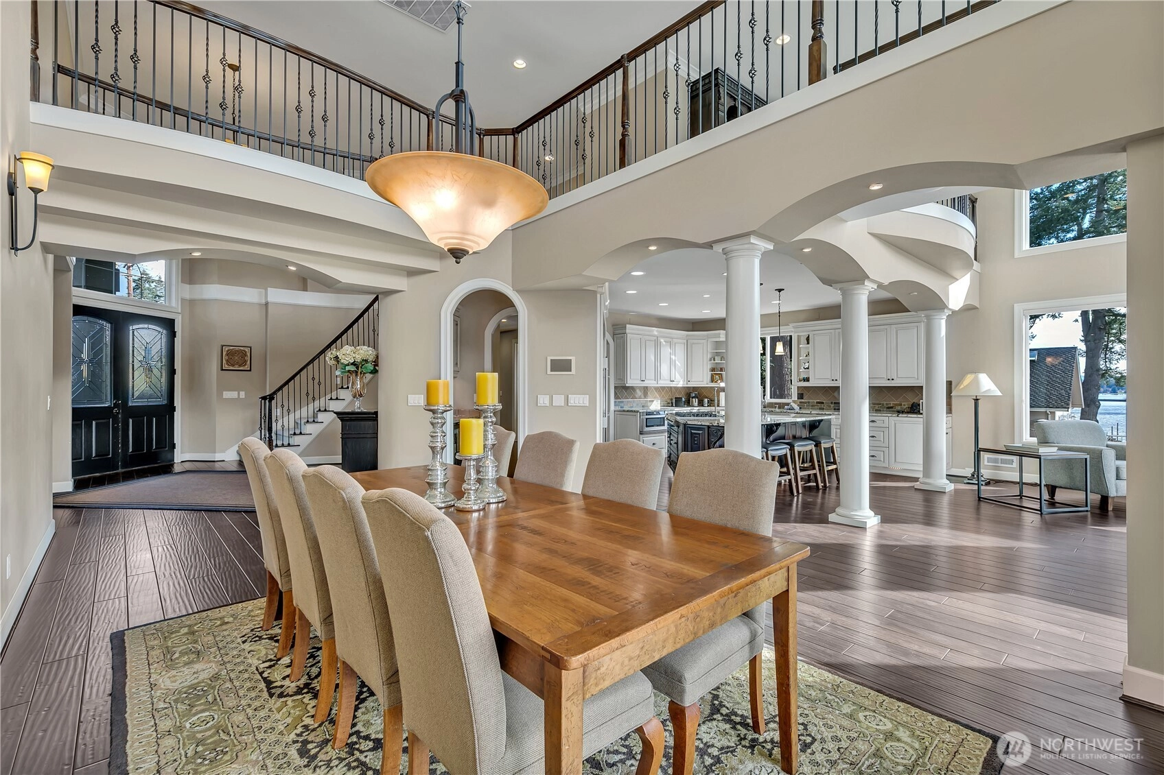 Stunning Lake Tapps Luxury Waterfront Retreat! Welcome to a breathtaking waterfront estate offering 77 feet of prime Lake Tapps shoreline, a private dock, & a boat lift—all w no HOA! This 3-bedroom, 5-bathroom home showcases vaulted ceilings & gourmet kitchen, perfect for entertaining. Indulge in luxury living w tiered home theater featuring six recliners, a full bar, & a wine cellar. The spacious recreation room is ready for all your favorite table games, while the office/den and bonus room provide flexibility for work & play. Enjoy all-day sunshine w western exposure & unwind w breathtaking water views. This is more than a home—it’s a lifestyle! Don’t miss the opportunity to own a one-of-a-kind waterfront sanctuary.