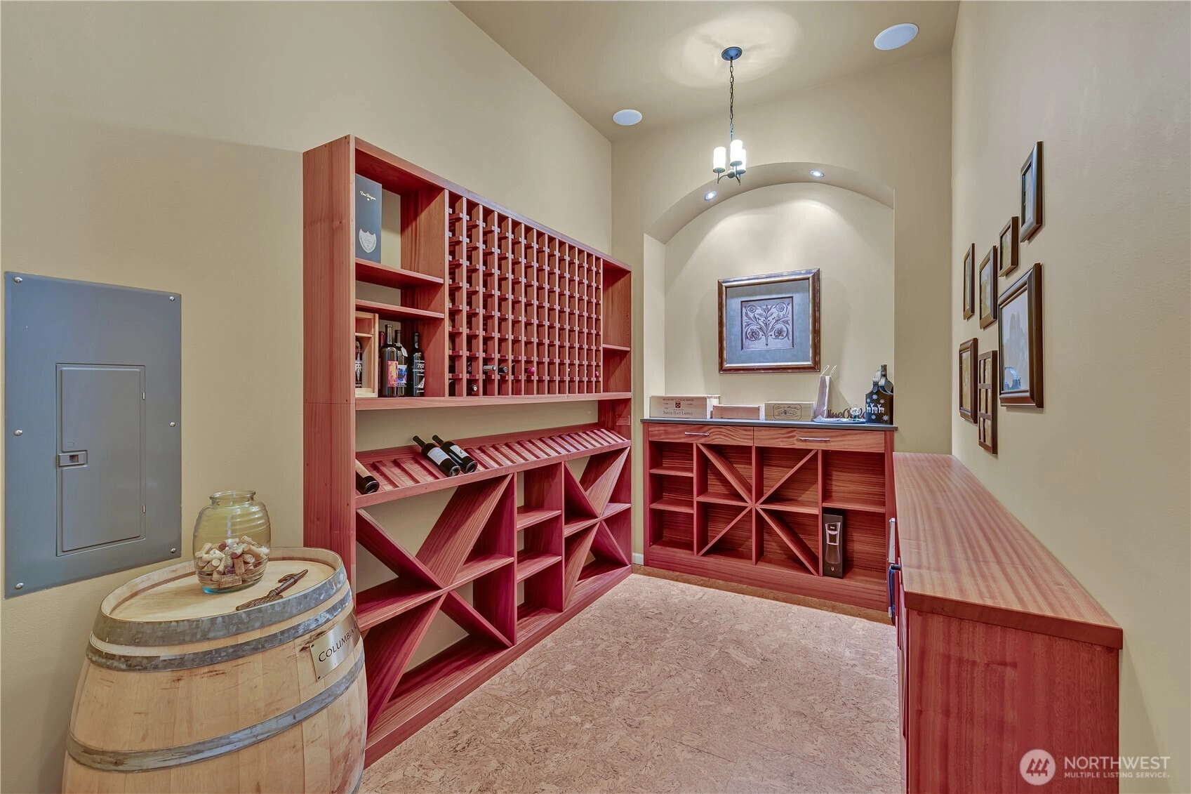Second Primary Bedroom Bath Off Primary Built-In Vacuum Ceiling Fan(s) Double Pane/Storm Window Dining Room Fireplace Fireplace (Primary Bedroom) French Doors High Tech Cabling Jetted Tub Security System Sprinkler System Vaulted Ceiling(s) Walk-In Closet(s) Walk-In Pantry Water Heater Wet Bar Wine Cellar Wired for Generator