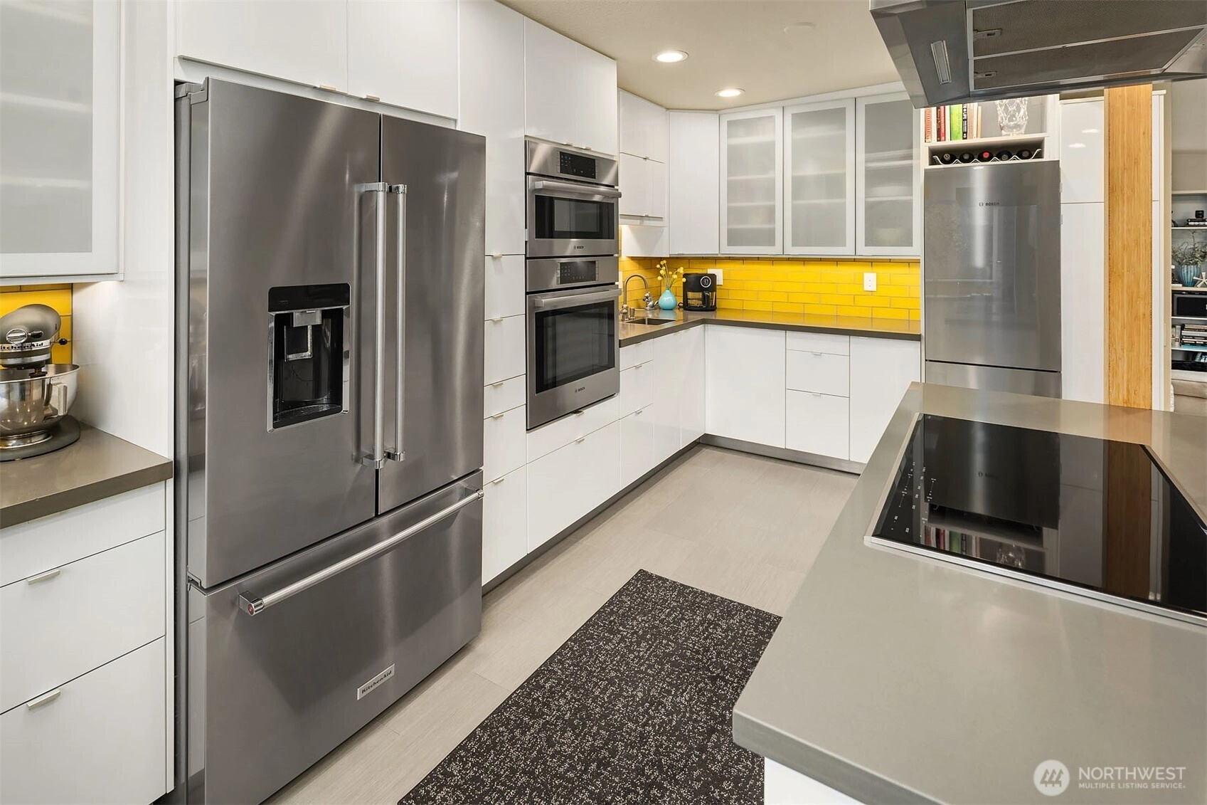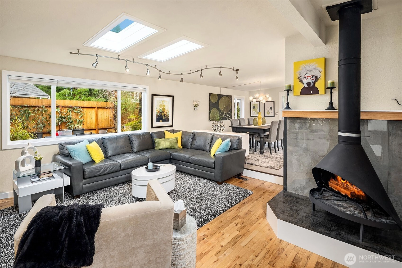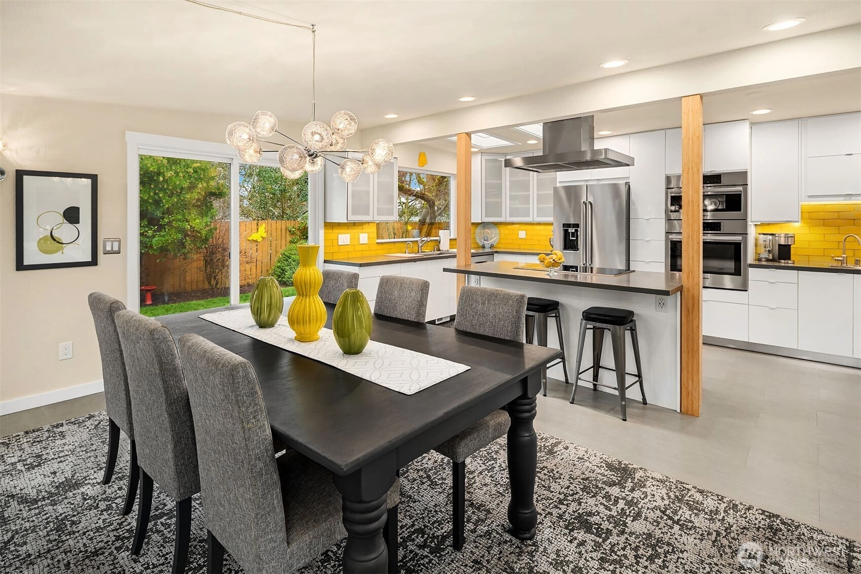 Comprehensively remodeled and centrally located, this East Bellevue rambler blends contemporary style with thoughtful, functional design. Clean lines and modern finishes create a home that both performs beautifully and delights the senses. The gourmet chef’s kitchen showcases premium Wolf and Bosch appliances, a generous quartz center island, and a dramatic yellow glass tile backsplash. Recent upgrades include three remodeled bathrooms, new double-pane windows, a gas furnace, air conditioning, updated electrical and plumbing, and fresh landscaping featuring garden rock walls, brick patio, and meandering pathways. The +/- 200 sq ft detached flex studio provides an ideal space for a home office, gym/workout space, or an exceptional playhouse.