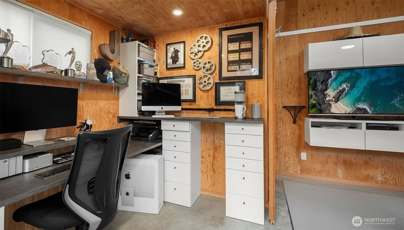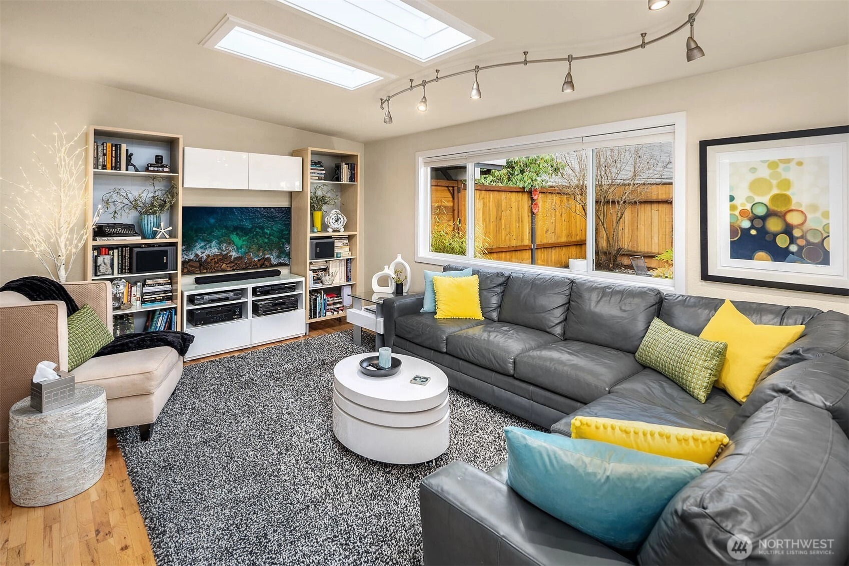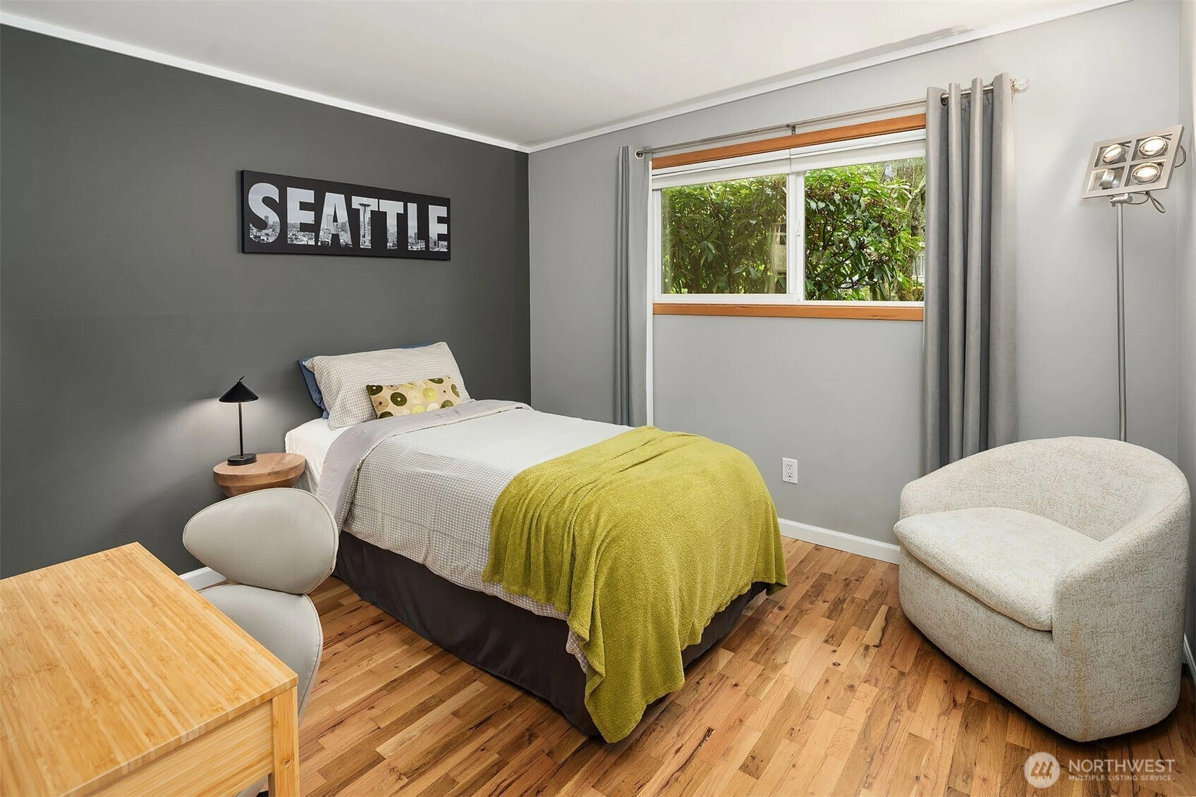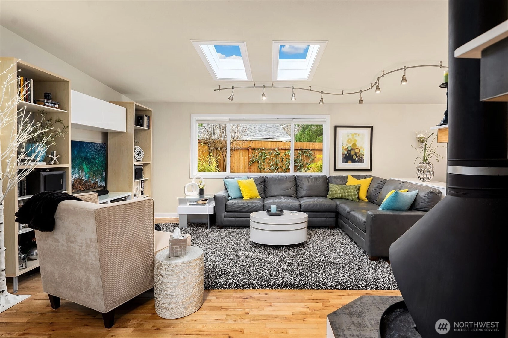 Comprehensively remodeled and centrally located, this East Bellevue rambler blends contemporary style with thoughtful, functional design. Clean lines and modern finishes create a home that both performs beautifully and delights the senses. The gourmet chef’s kitchen showcases premium Wolf and Bosch appliances, a generous quartz center island, and a dramatic yellow glass tile backsplash. Recent upgrades include three remodeled bathrooms, new double-pane windows, a gas furnace, air conditioning, updated electrical and plumbing, and fresh landscaping featuring garden rock walls, brick patio, and meandering pathways. The +/- 200 sq ft detached flex studio provides an ideal space for a home office, gym/workout space, or an exceptional playhouse.