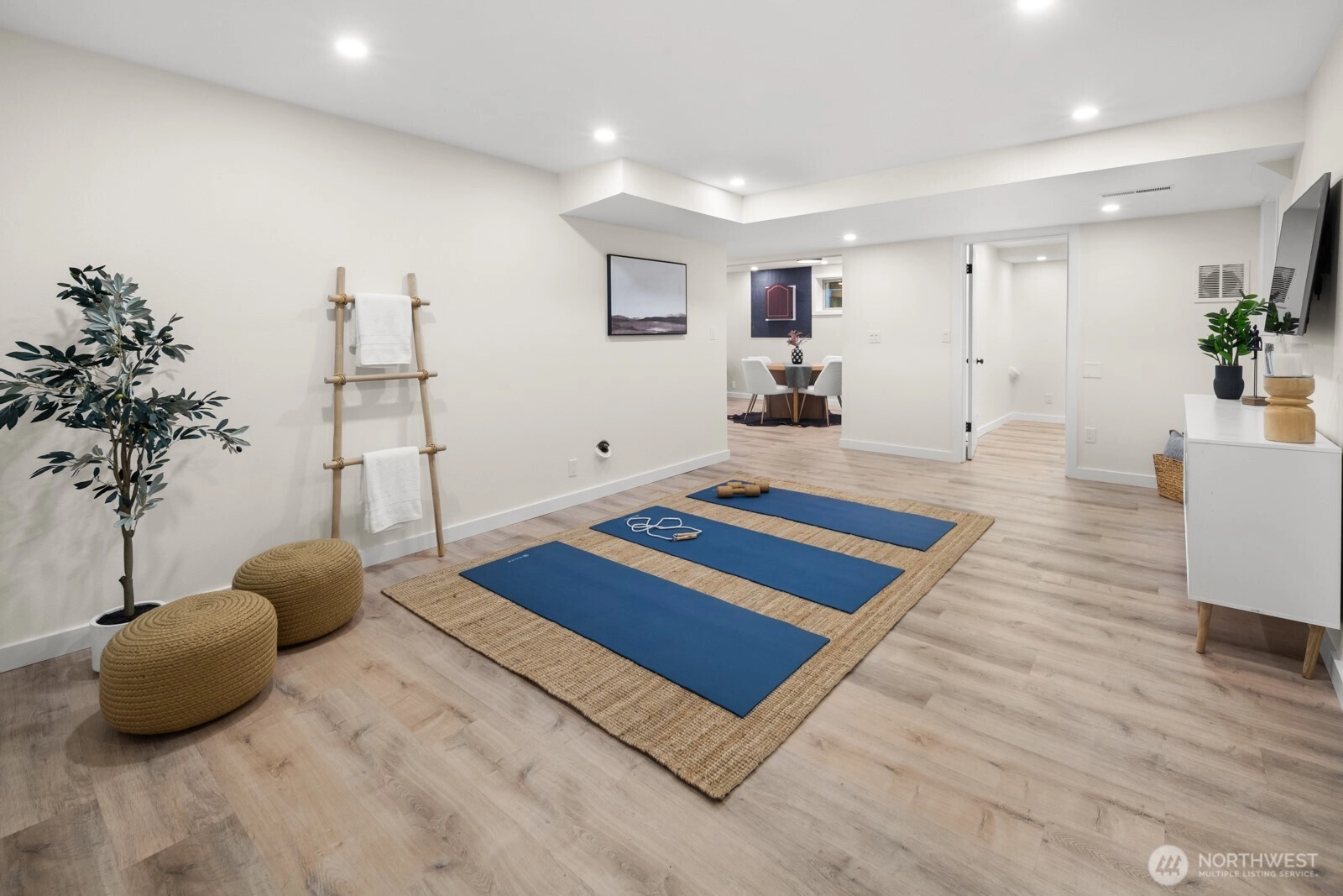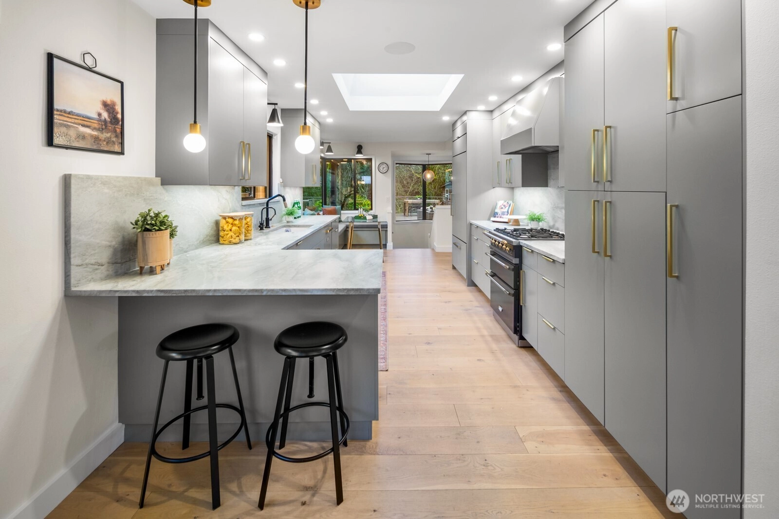 Palm Springs meets Blue Ridge in this stunning MCM remodel! Discover a spacious and inviting home featuring dream living + entertaining spaces, extraordinary design, peek-a-boo views. Create meals in a magazine-quality kitchen with Lacanche cooking, Sub Zero, Quartzite counters, comfy breakfast nook. Four beds grace the main level, including spa-inspired primary suite. Downstairs find a home gym, rec room, wet bar, private guest suite. Enjoy the large windows, wide-plank oak hardwoods, 3 fireplaces, built-in audio, huge laundry room, storage. Step outside to private patios, fenced yard, detached play house overlooking greenbelt. Blue Ridge features private neighborhood amenities: pool, parks, beach, tennis, clubhouse, more. This is the one!