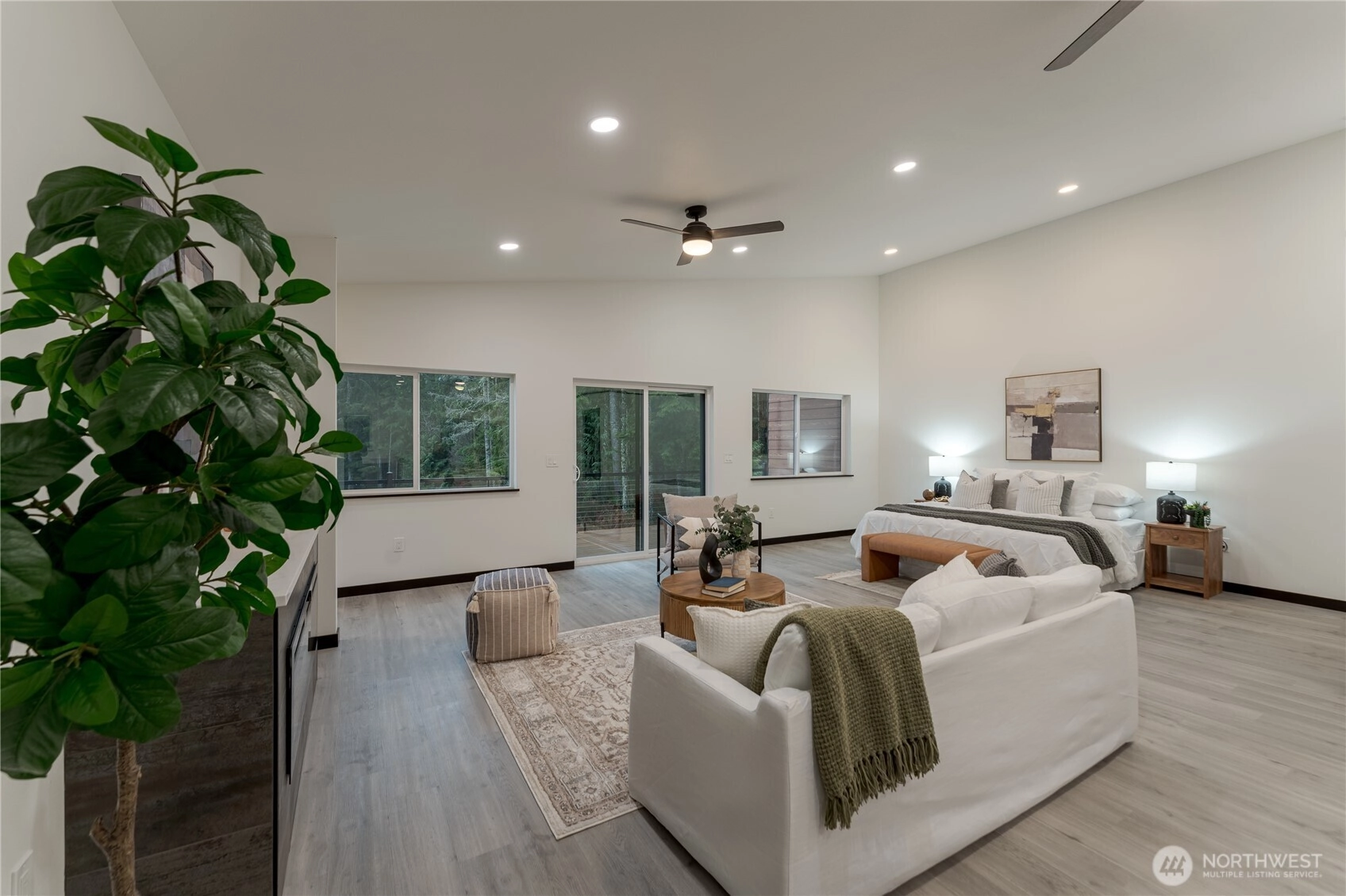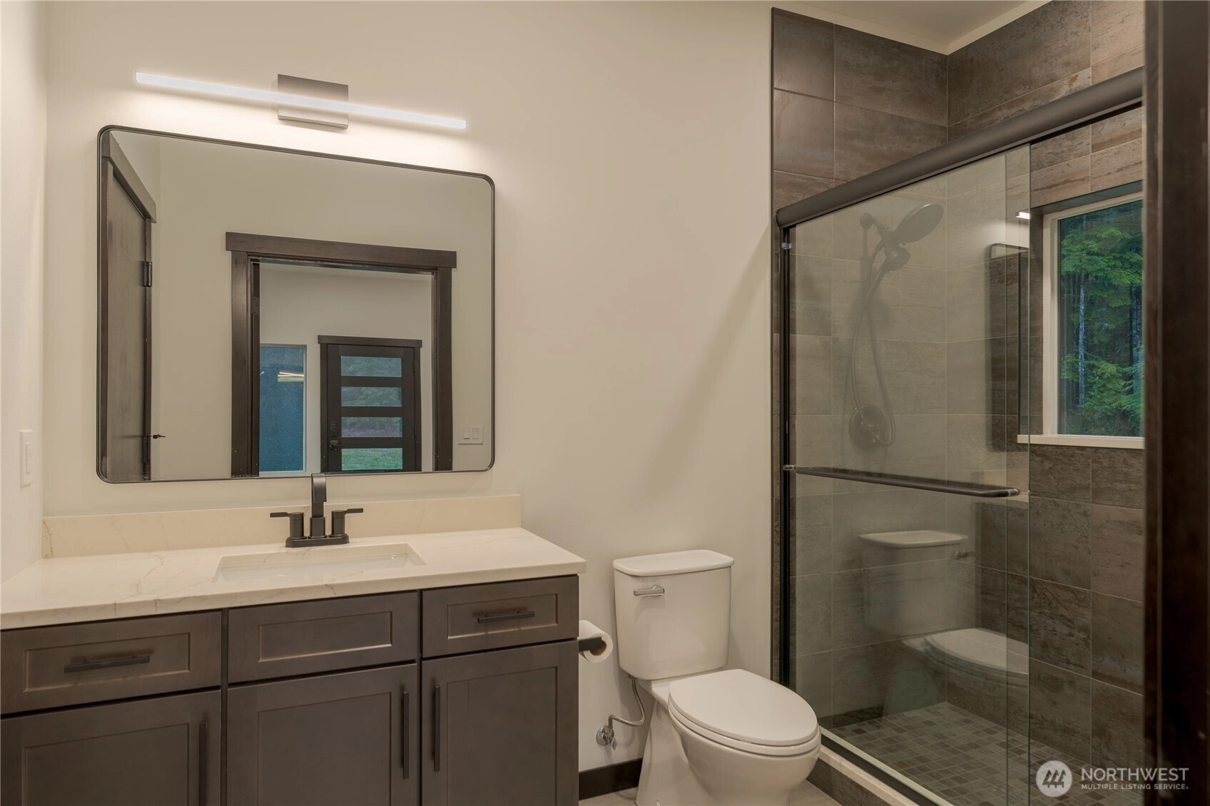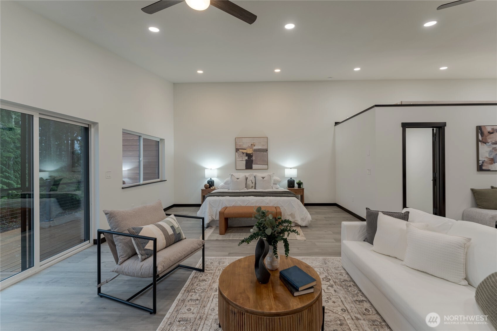 Behind a private gated entry, this new construction modern barndominium sits on 8 acres of exceptionally usable land with panoramic views of Mt. Pilchuck. Peaceful and removed from traffic, the property offers open sightlines, forested surroundings, established walking trails, and a naturally well-draining setting highlighted by a small stream with waterfall. The newly built structure anchors a larger estate vision and features a substantial high-bay garage with a refined open-concept studio above, quartz finishes, abundant natural light, and is wired for radiant heated flooring. All permits are complete and Certificate of Occupancy has been obtained. Permits are also in place for an additional, larger 3-bedroom residence, and existing well, power, and septic capacity support two full residences—offering uncommon flexibility and future compound potential. Additional features include heat-pump mini-splits, electric fireplace, solar panels, Starlink internet, hot tub hookups on the front deck, and 2023 electric riding lawn mower included. Limited to no cell service near the property. Entrance is approximately 0.9 miles east of where Google Maps directs—look for the listing sign or use GPS coordinates: 48°06'00.4"N, 121°49'09.4"W.