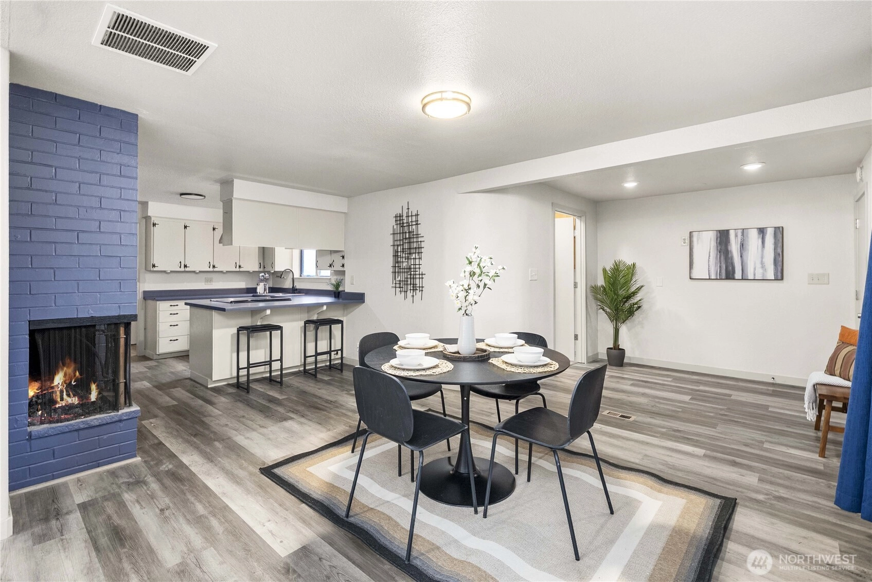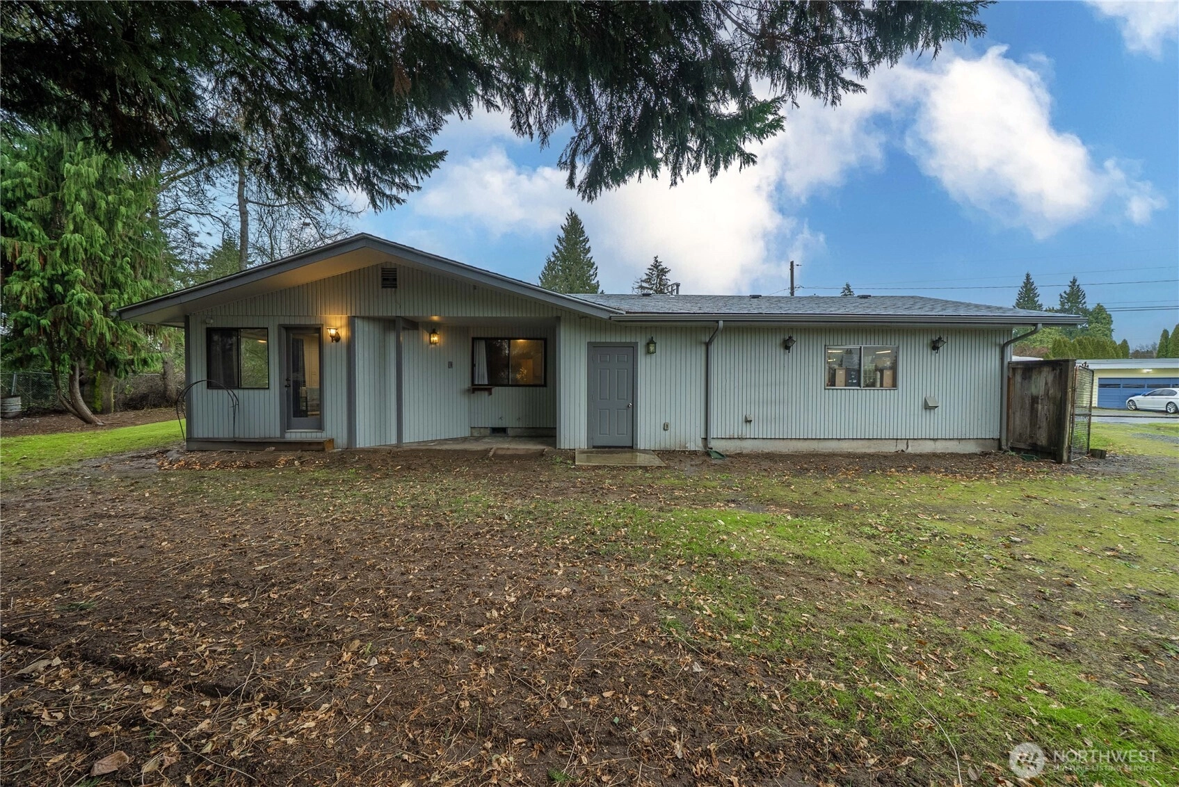 Charming one-level home in the heart of desirable downtown Sumner! This 1,640-sf residence offers 3 bedrooms and 1.75 baths with a thoughtful, spacious layout. Enjoy cozy evenings with a wood fireplace insert in the living room plus a second wood fireplace in the dining/kitchen area. Hardwood floors highlight the bedrooms, and a large laundry room adds everyday convenience. The garage has been converted into a 435 sf for hobbies or storage and can easily be converted back to parking. French doors open to a generous backyard on a .20 ac/8785-sf lot featuring a welcoming front courtyard and wide-open space around the home. New roof installed October 2025. Close to Downtown Sumner, parks, & commuter train. This is Sumner living at its best!