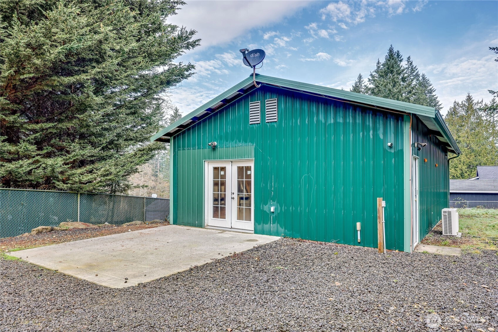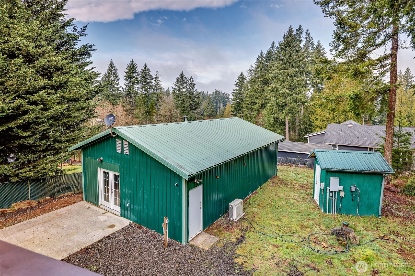 Fully fenced and gated .81-acre private lot offering exceptional privacy while remaining just minutes to downtown Silverdale, St. Michael Medical Center, local military bases, and the Puget Sound Naval Shipyard. The main home features nearly 1,800 sq ft of durable steel construction, providing strength, efficiency, and low maintenance. All appliances and TVs are included, making this a truly move-in-ready opportunity. A detached 24x36 shop is currently in progress for detached finished living space—ideal for a workshop, hobby space, or potential ADU. Building materials and tools will convey, allowing the next owner to continue the project with ease. A rare opportunity combining privacy, convenience, and future potential.