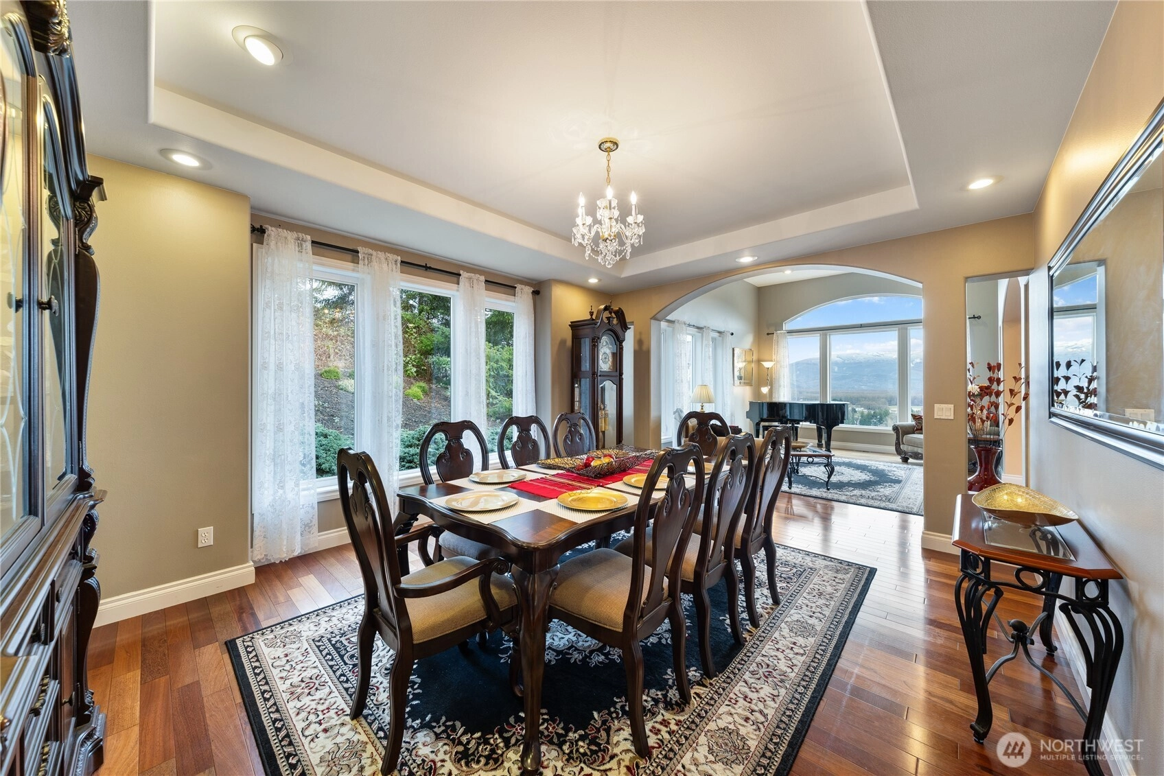 Wake up to sweeping mountain, river, and valley views from almost every room, perfectly positioned to capture east-facing sunrises, moonrises, and golden hour at dusk. Brazilian cedar hardwood floors paired with soaring 9–18 ft ceilings, a grand staircase, and a stunning new chandelier that sets the tone on entry. Recent updates include new lighting throughout, fresh carpet upstairs, new paint, central air, a new furnace, microwave, washer, and updated hardware. The well-designed kitchen and dining areas flow easily for entertaining. With 4 spacious bedrooms, a large primary bath with breathtaking views, a separate downstairs rec room, low-maint landscaping, and a quiet, loved neighborhood, this home is made for comfort and connection.