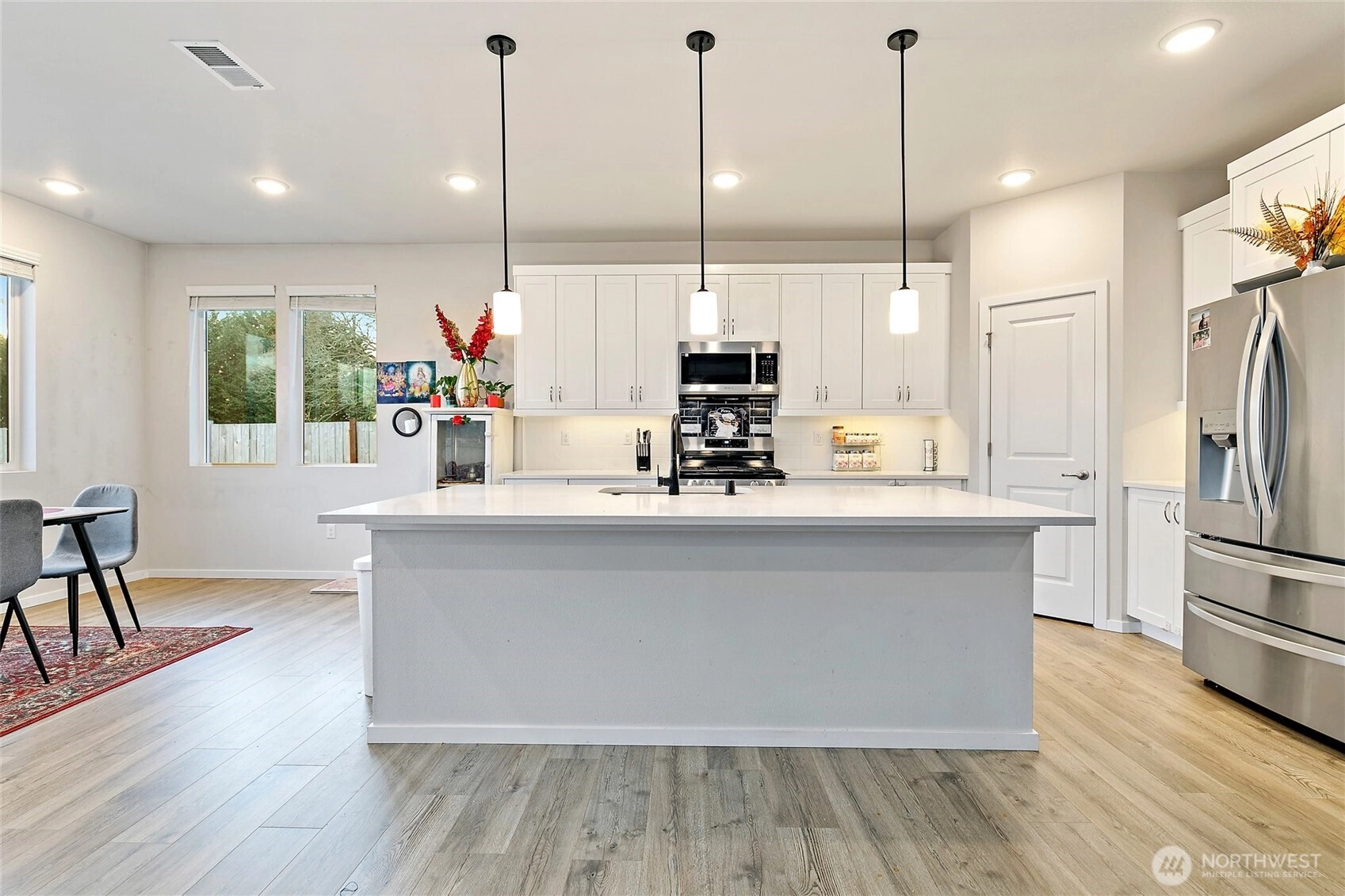 Better-than-new 5-bedroom home located in the beautiful Prairie Oaks community. This thoughtfully designed floor plan offers a main-floor bedroom w/¾ bath—ideal for guests, home office, or multigenerational living. Upstairs are 4 additional well-sized bedrooms, including an expansive primary suite featuring a 5-piece ensuite & WI closet. The open-concept main living area highlights a beautifully appointed kitchen w/island, ample cabinetry, & seamless flow to the dining area & oversized great room - perfect for everyday living & entertaining. An upstairs bonus space provides flexible use as a den, media room, or open office. Enjoy a private, fully fenced backyard designed for relaxation. A spacious garage offers good storage & convenience.