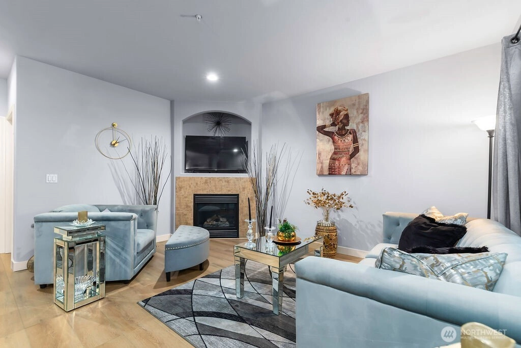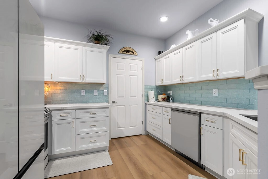 Turn-Key Lakewood Townhome! 2-bed, 2-bath, Single Level & Fully Updated! Gorgeous single-level living awaits in this fully renovated Lakewood townhome. Enjoy a bright, open floor plan highlighted by a modern kitchen with sea-glass tile and premium cabinetry. This home features durable, updated flooring throughout and a spacious primary bedroom with a large walk-in closet and private dual-vanity bath. Rare oversized garage provides incredible storage or workspace potential. Perfectly located near shopping, parks, dining, and transit, this move-in-ready home offers the ideal blend of style and accessibility.