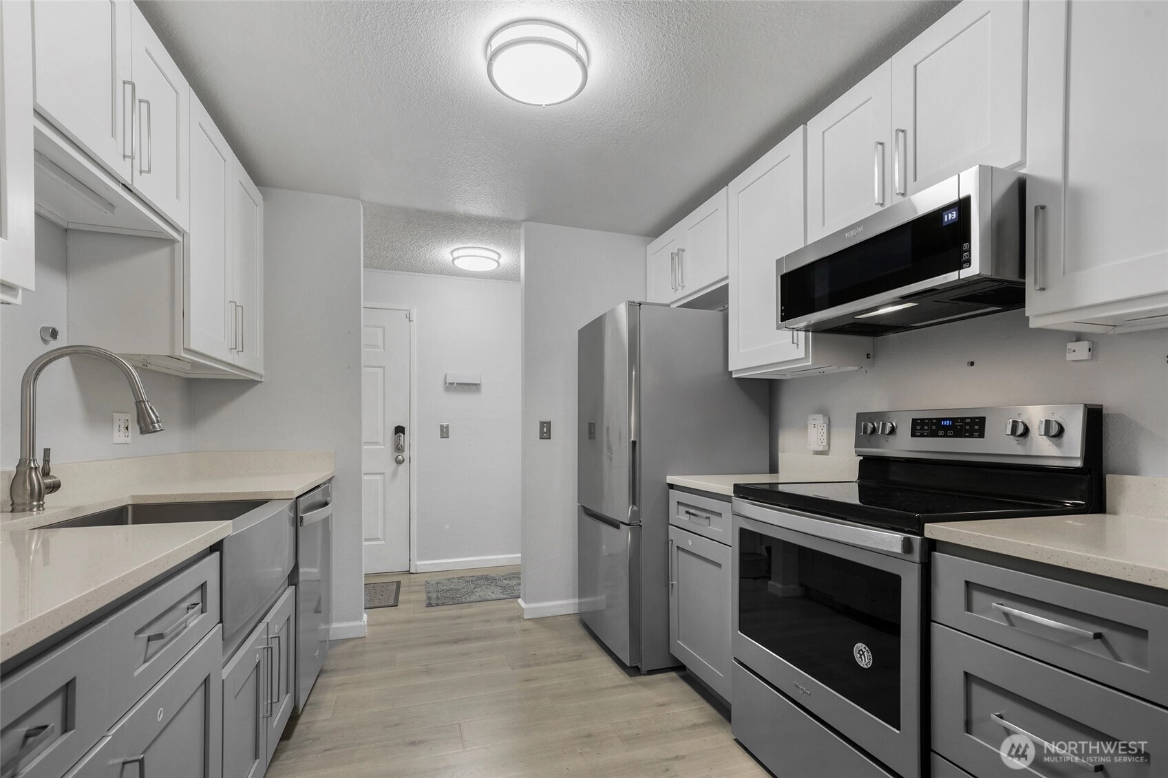 Gorgeously updated, turnkey condo in the sought-after Tall Firs community. Enjoy effortless one-level living with no stairs in this spacious, well-designed floorplan. The beautifully remodeled kitchen features updated cabinetry, quartz countertops, stainless steel appliances, farmhouse sink, and modern finishes. The primary bedroom offers generous space, a walk-in closet, and a private ¾ bath. Step outside to a peaceful patio overlooking lush green space, perfect for relaxing or entertaining. Community amenities include pool, clubhouse, hot tub, tennis and basketball courts. Prime location close to shopping, dining, schools, parks, transit, and easy freeway access--plus no rental cap!