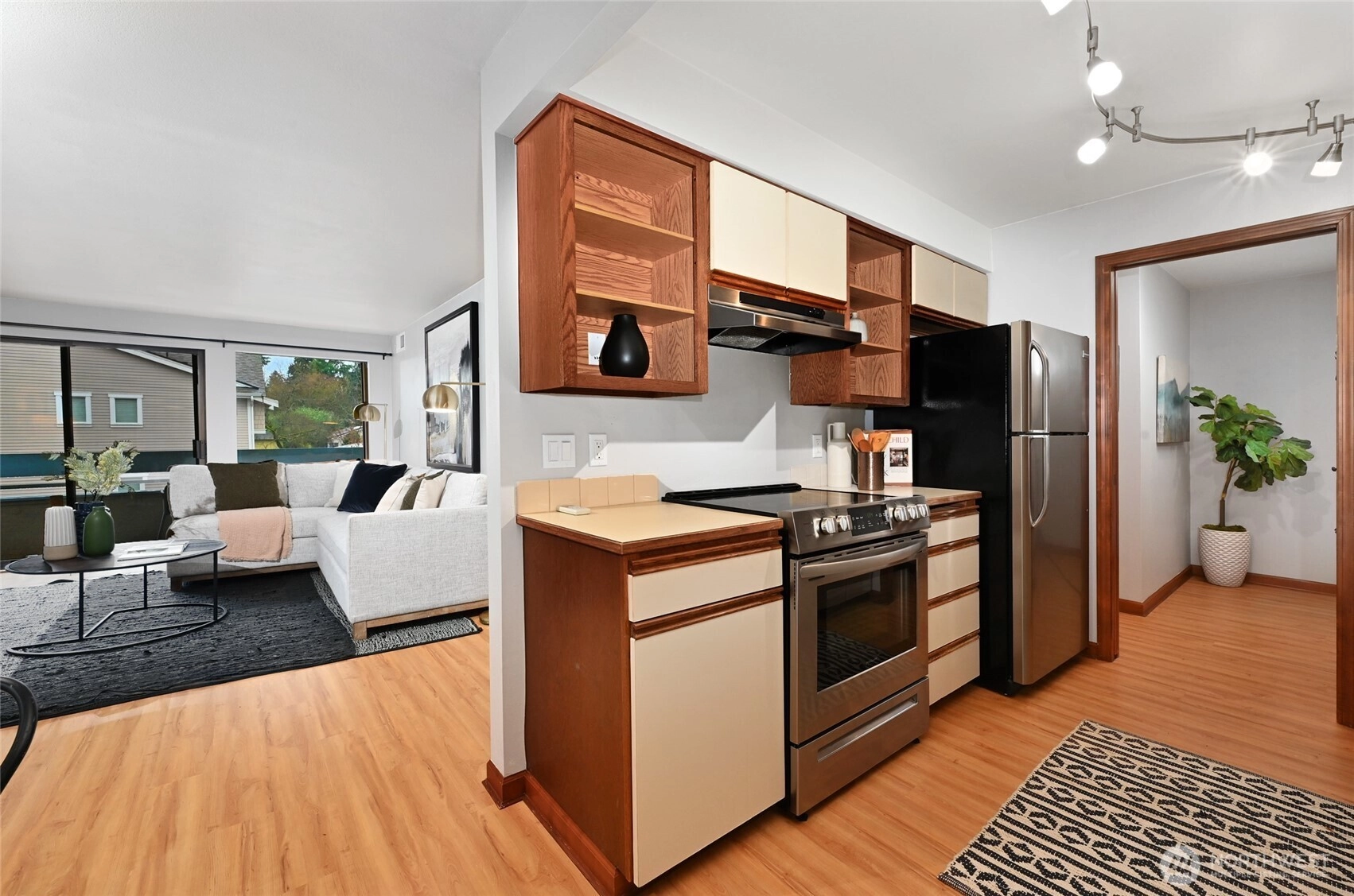Welcome to this bright and private corner residence—an inviting blend of serenity, style, and community. This 1-bed, 1-bath home feels like a true retreat, just steps from everyday conveniences in a walkable, commuter-friendly location. Thoughtful features include an energy-efficient mini-split with A/C, built-in shelving, and a private storage room just outside the unit—ideal for hobbies, gear, or extra organization. Enjoy easy one-level living with elevator access from the parking spot. The dining room’s striking atrium window fills the space with natural light, creating a warm backdrop for entertaining or creative pursuits. All set in a well-managed building with low turnover, reflecting true pride of ownership.