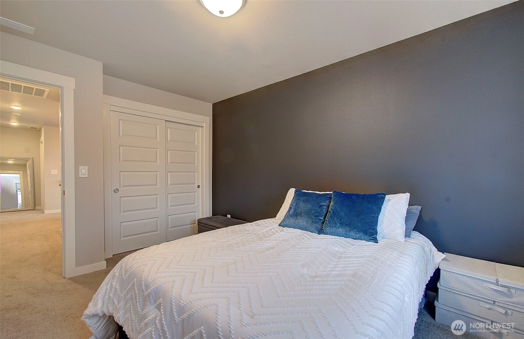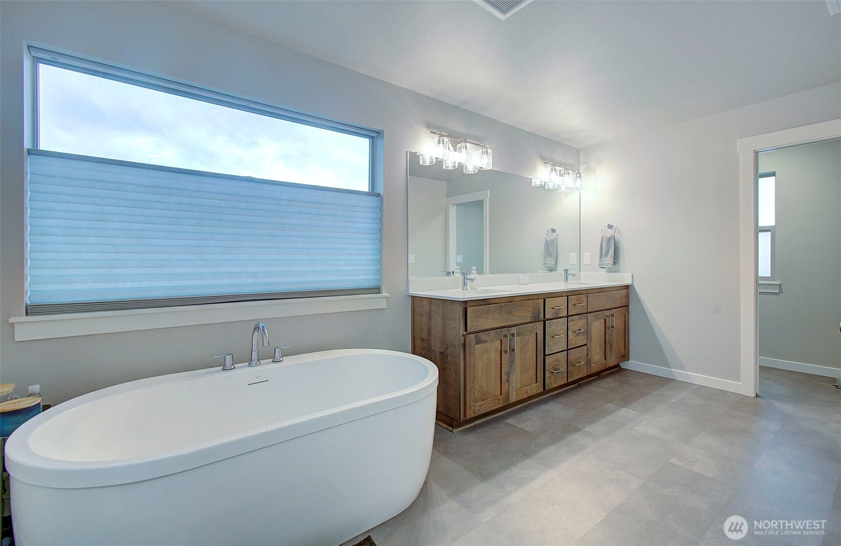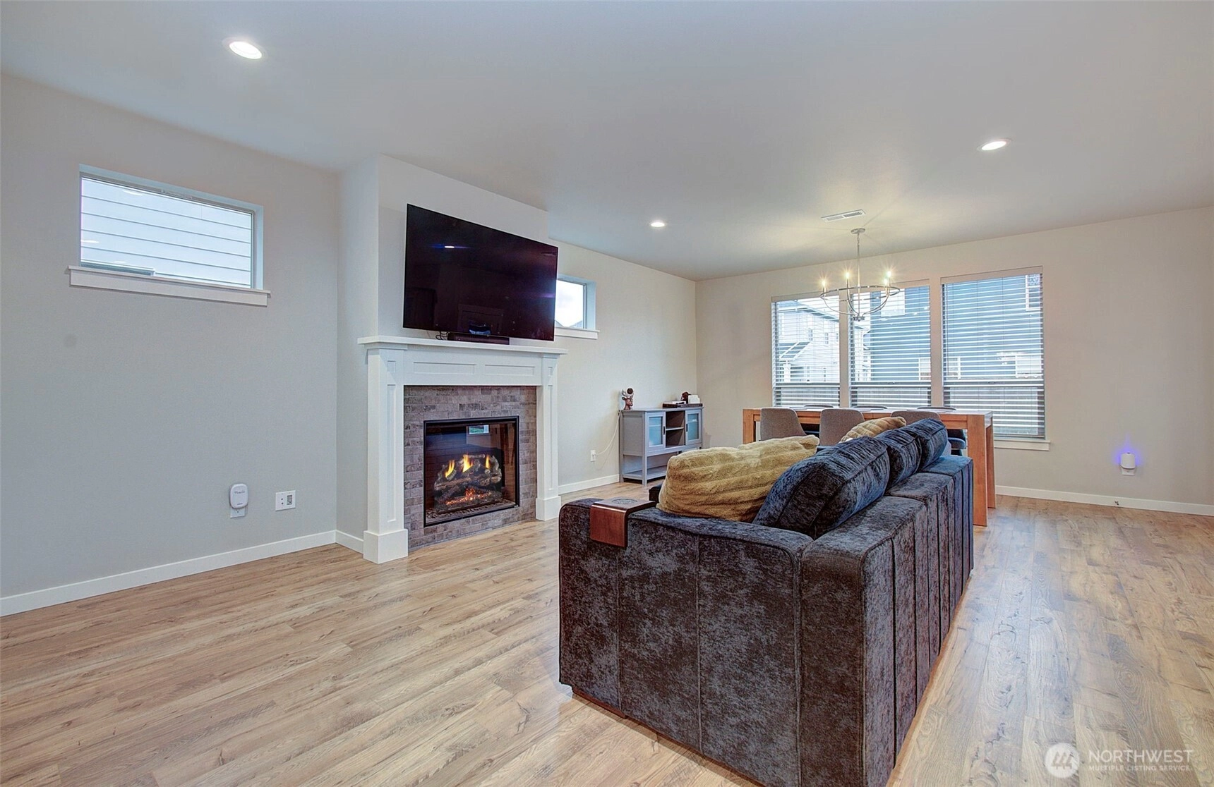 2024 build on large double corner lot near greenspace and open field. 2,295 sf with 4 bedrooms & main-floor den with French doors and 2 full baths. Quartz island kitchen with pantry, soft-close cabinets, stainless appliances and refrigerator included. Great room opens to a 13x11 covered patio and oversized fenced yard with sprinklers and above-ground pool negotiable. Primary suite features custom walk-in closet, soaking tub and walk-in shower. Washer and dryer included. Heat pump with AC, smart thermostat, luxury vinyl plank floors and finished 2-car garage. Enjoy modern finishes and plenty of smart storage. Nearly .30ac, min to shopping and schools in quiet Brush Prairie. Structural builder warranty believed transferable (buyer to verify).