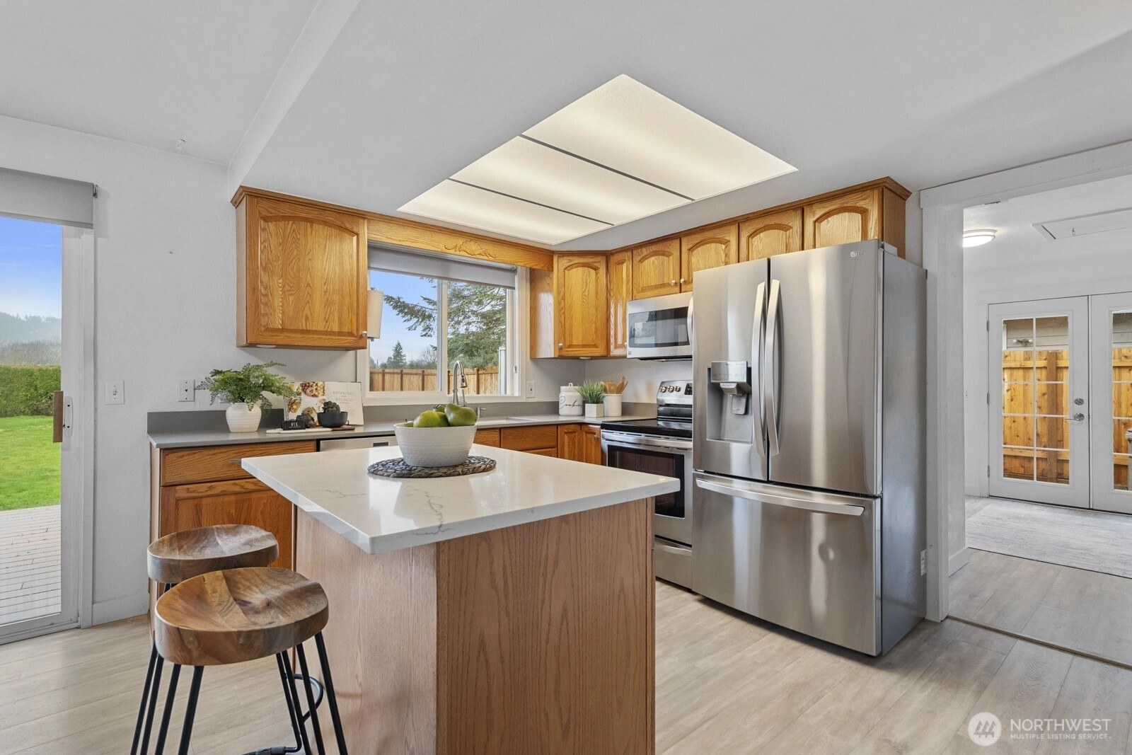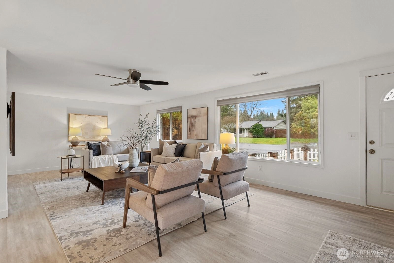 Delightful, move-in ready Fall City gem! One level living at its best. Thoughtful updates meet stylish design. Perfectly sited on a quiet, centrally located dead-end street. Stroll to schools, parks, riverfront, trails, shops, dining, and more! This home is meticulously cared for and ready for its new owner. Updated chef's kitchen with quartz counters, stainless appliances. Newer LVP throughout for low maintenance. Heat pump with AC for year-round comfort. Enjoy the sunny, level, fully-fenced yard. Relax, recharge, entertain on the large deck. Ample space for gardening, animals, and play. Storage shed. RV parking. Enjoy small-town living with easy access to I-90, Bellevue, Redmond, & Issaquah. Prized schools. Pre-inspected. This is the one!